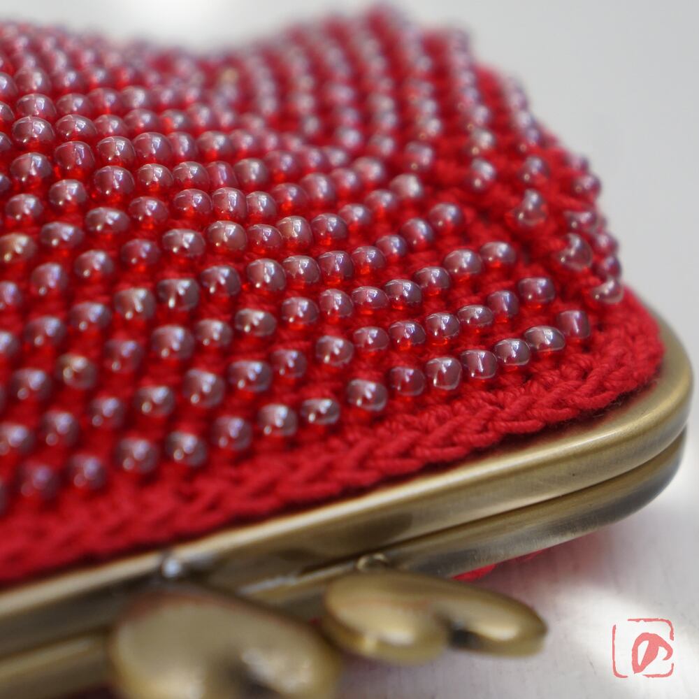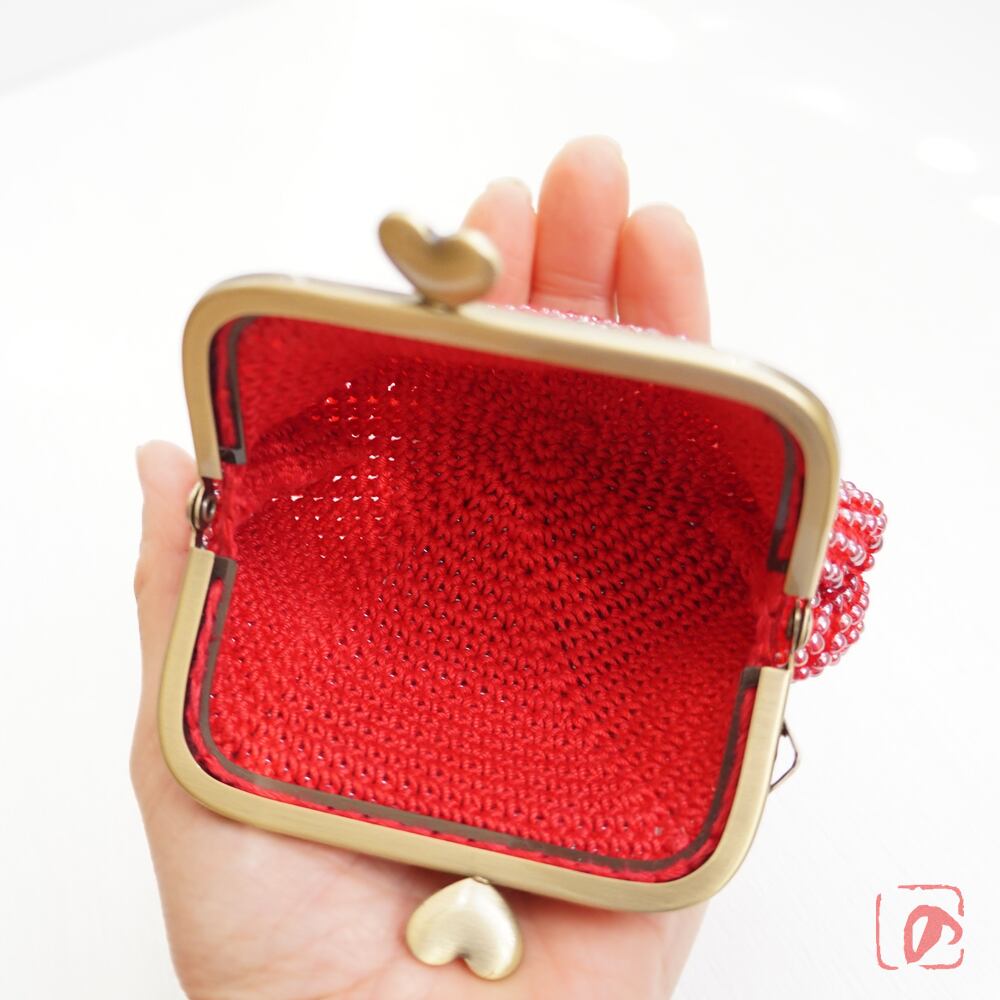 ばあば作♡♡総ガラスビーズのスクエアがま口(Je t'aime・1823)
