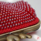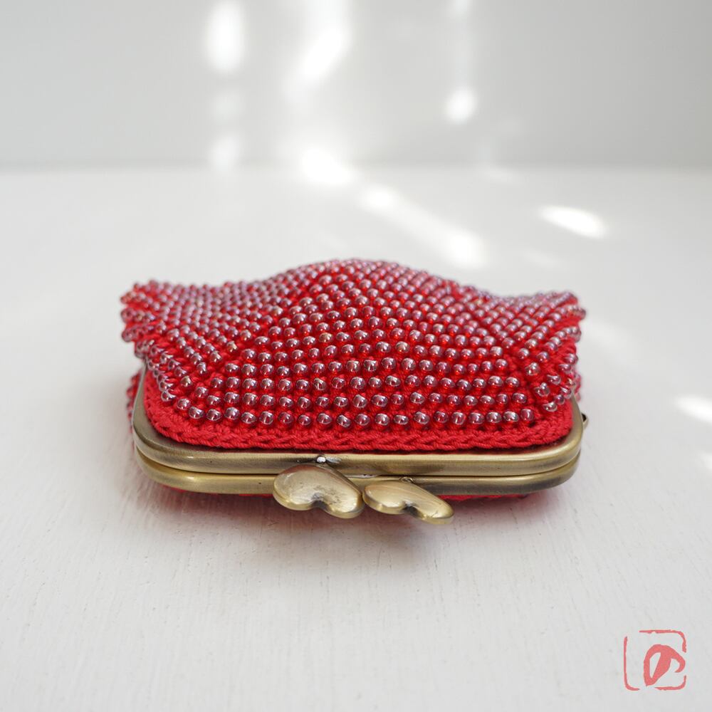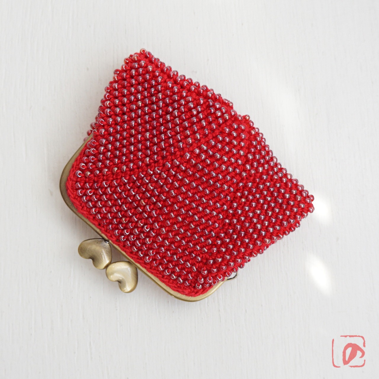 赤い糸×赤のビーズ♡ハートの口金を組み合わせてかわいらしく仕上げました。