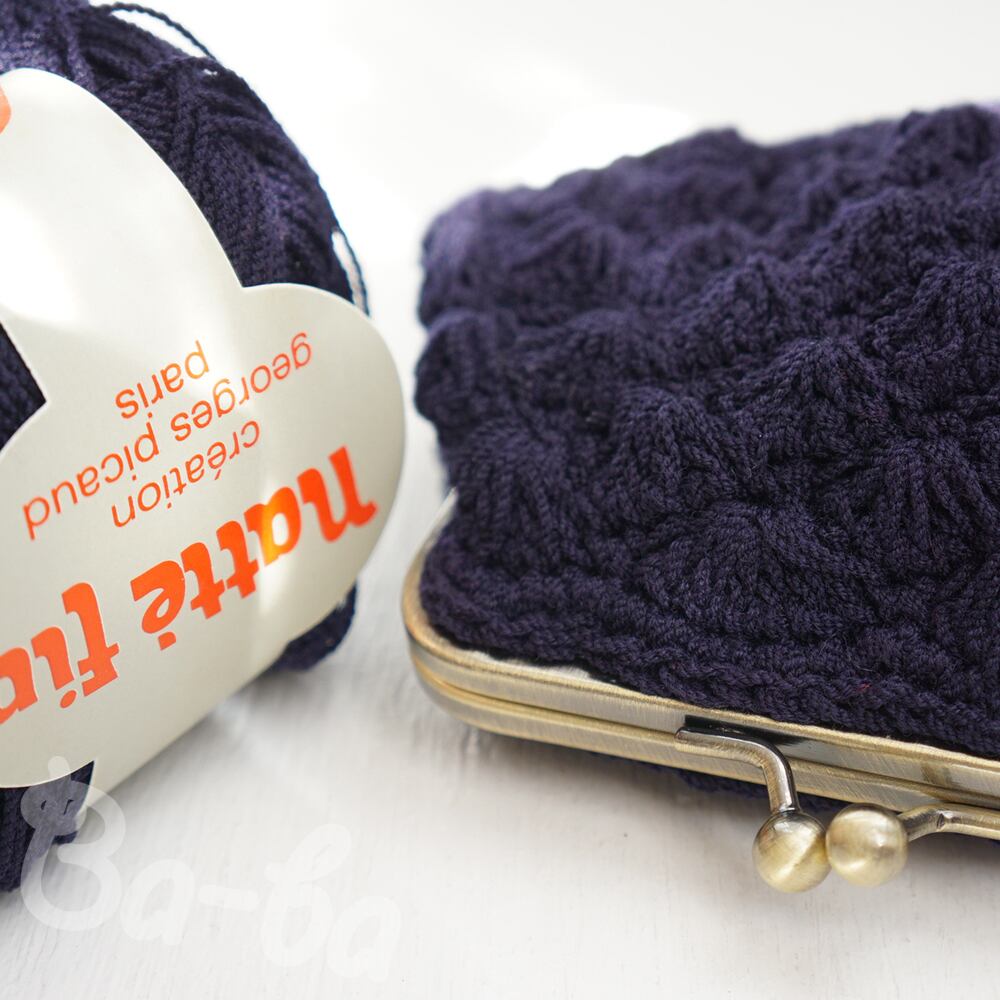 ばあば作♪松編みの大きめがまぐちポーチ(minuit pin・C1655)