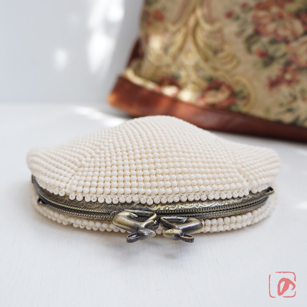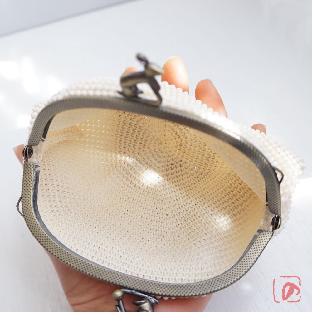 ばあば作☆シードビーズのさらに大きめがま口(lapin blanc・1876)