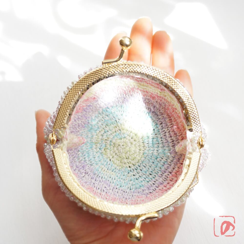 段染糸に3mmのガラスビーズを全面に編み込みました。