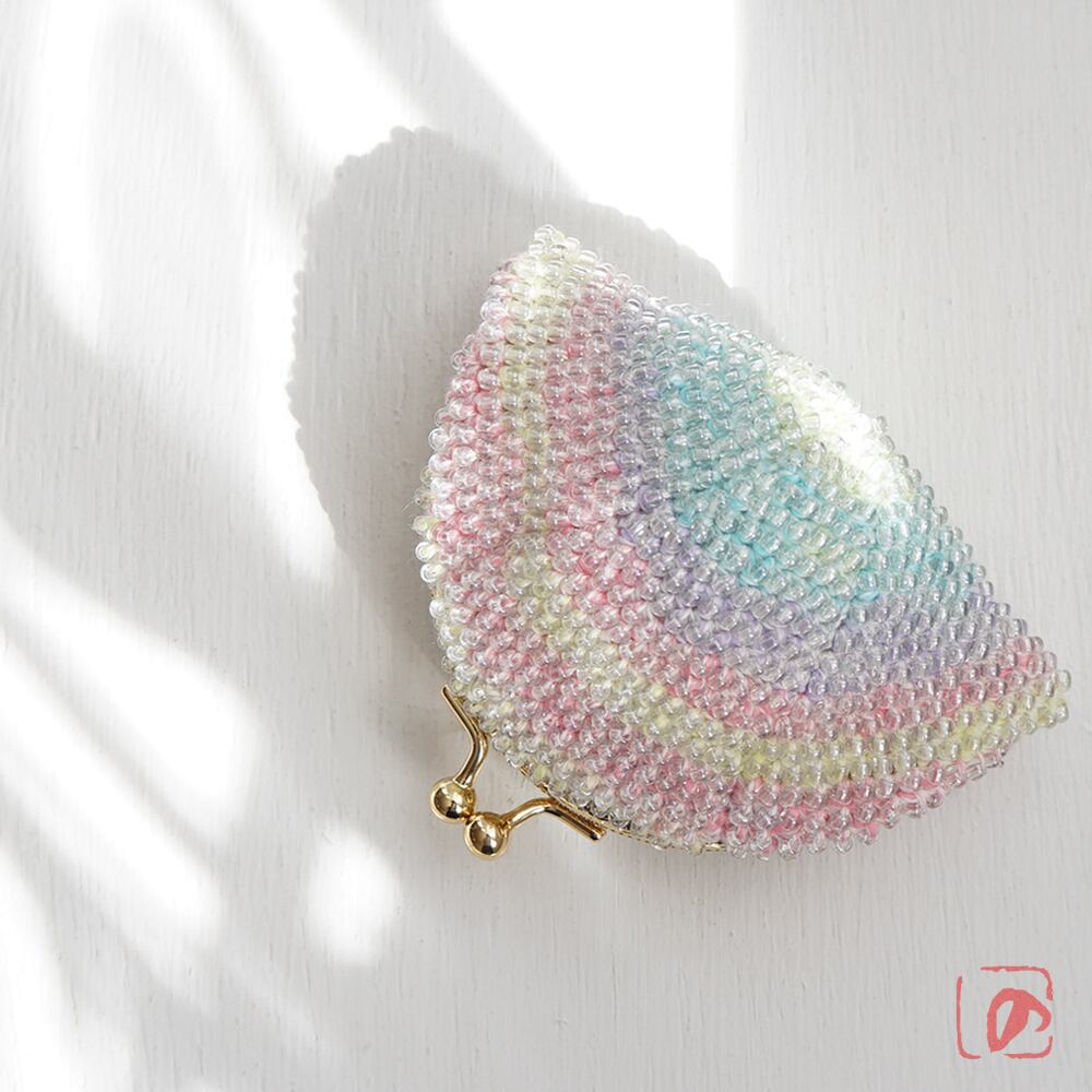ばあば作♡♡総ガラスビーズのがま口(rainbow・1871)