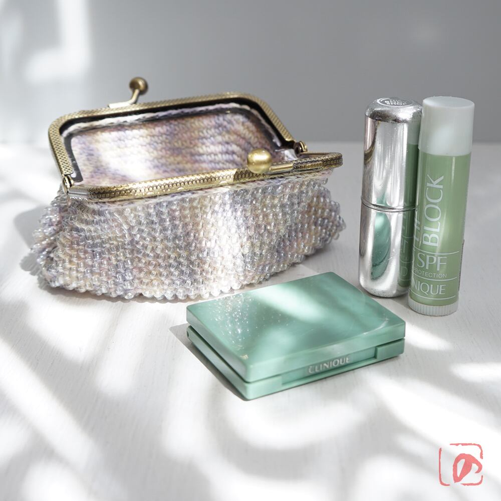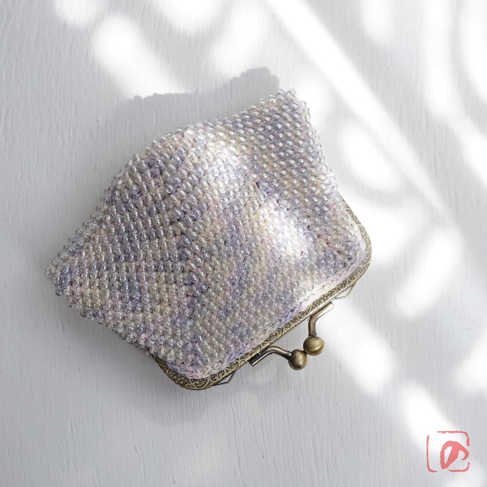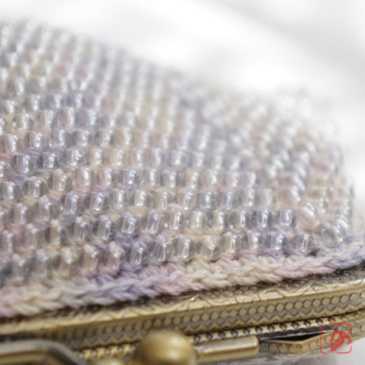段染糸に3mmのガラスビーズを全面に編み込みました。