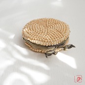 ナチュラルウッドビーズをまぁるい編み地全面に編み込みました。
