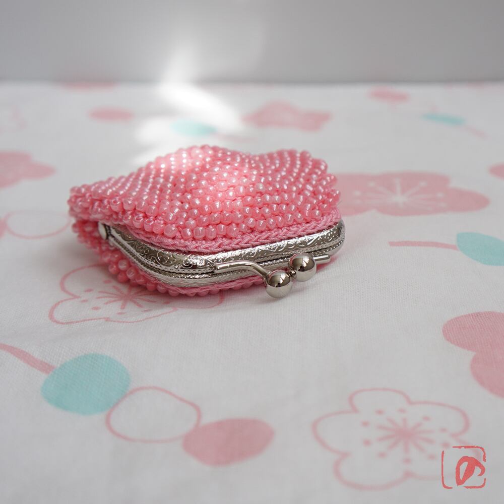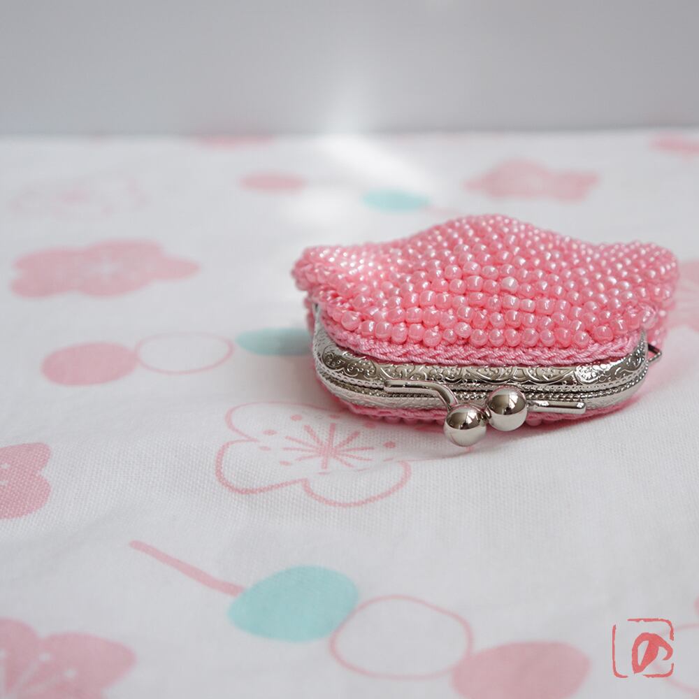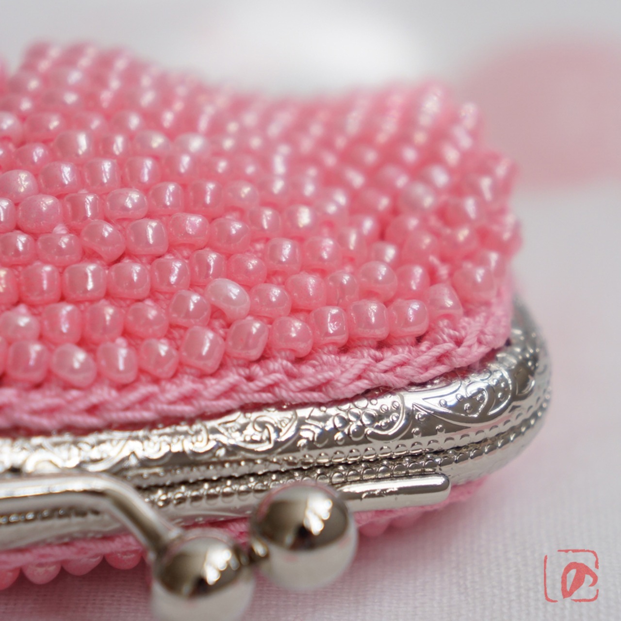 3mmのガラスビーズをひとつぶづつ編み込んだがま口です。