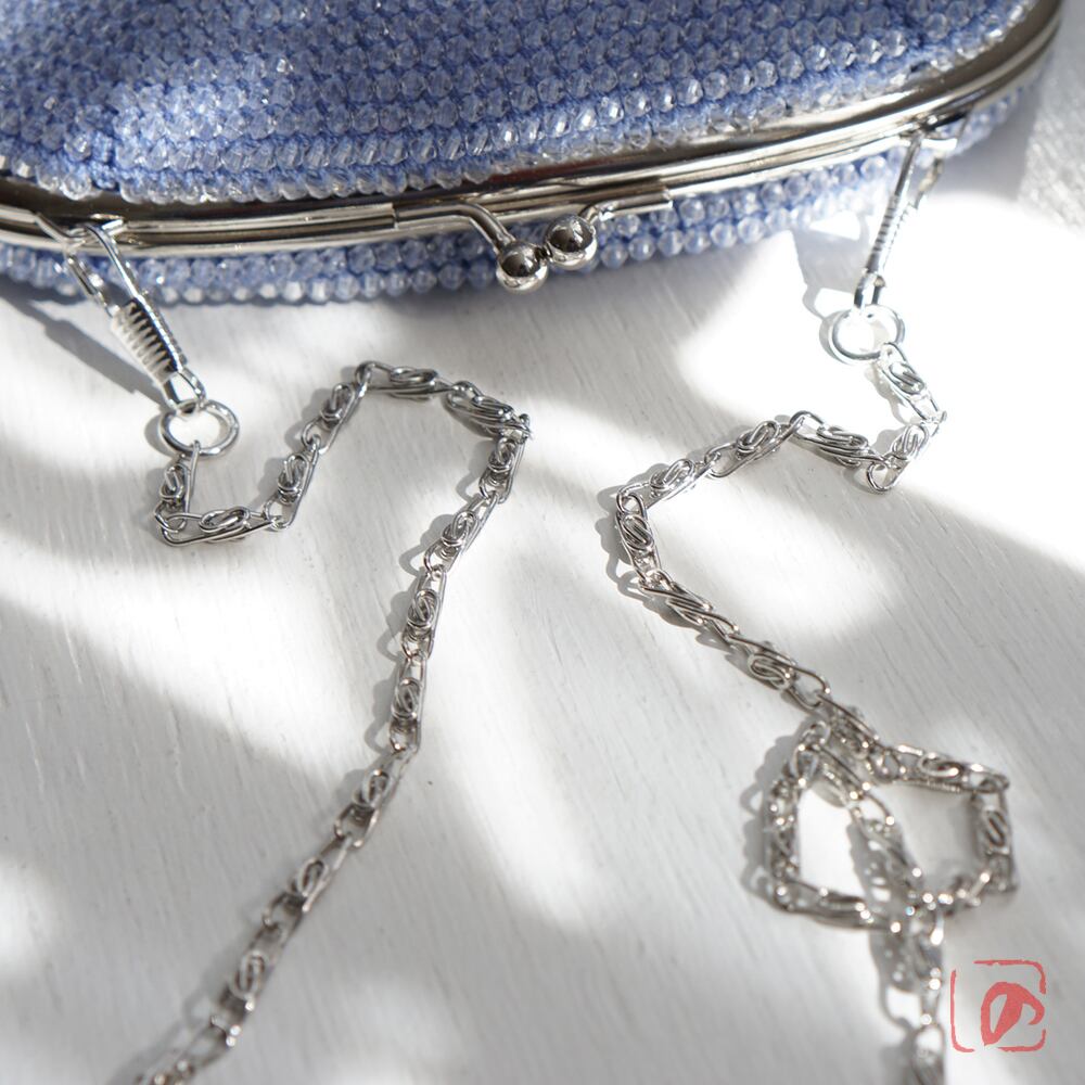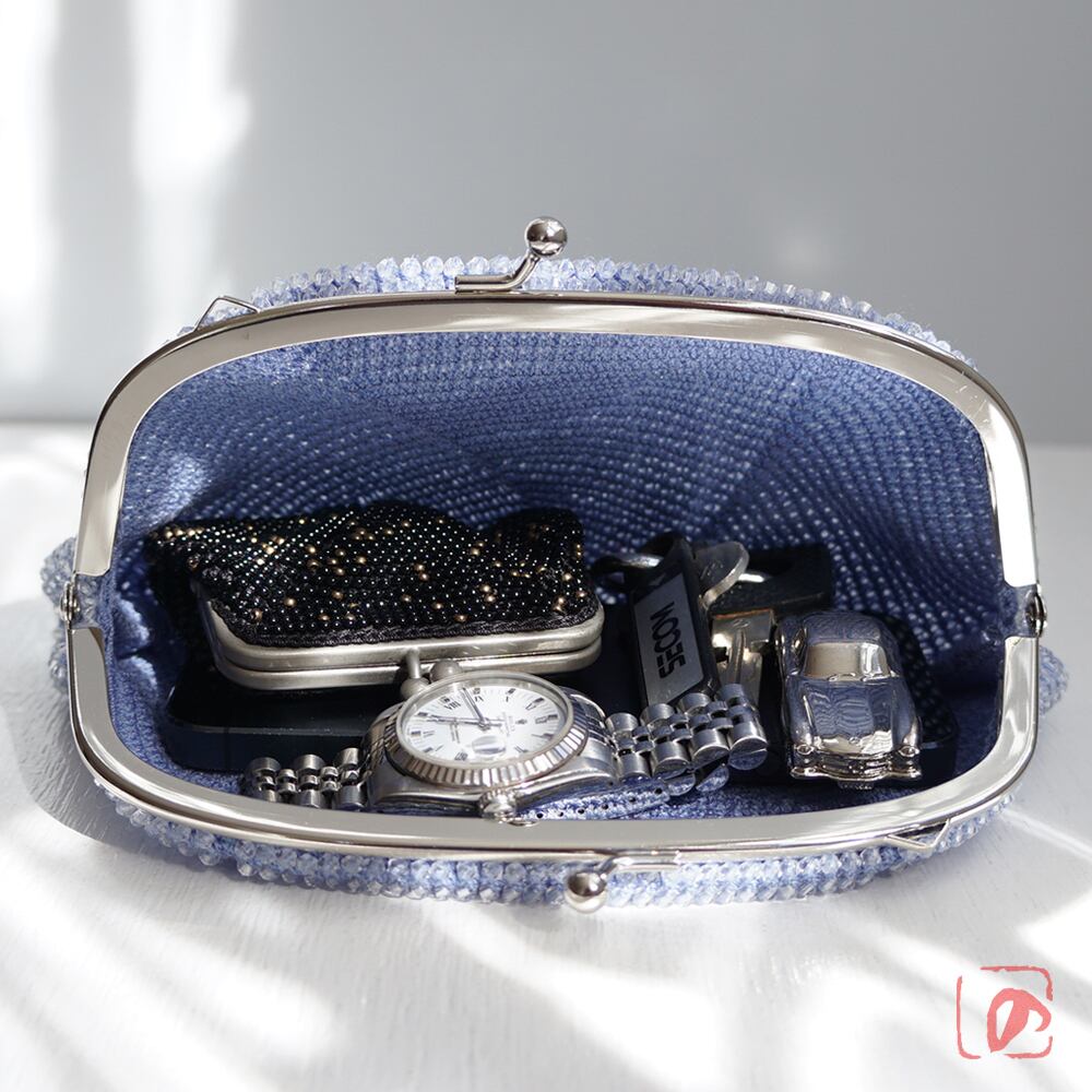 幅15cmくし型の口金を使用、ポーチとして、またオプションのチェーン等でアレンジしてもご使用いただけます。