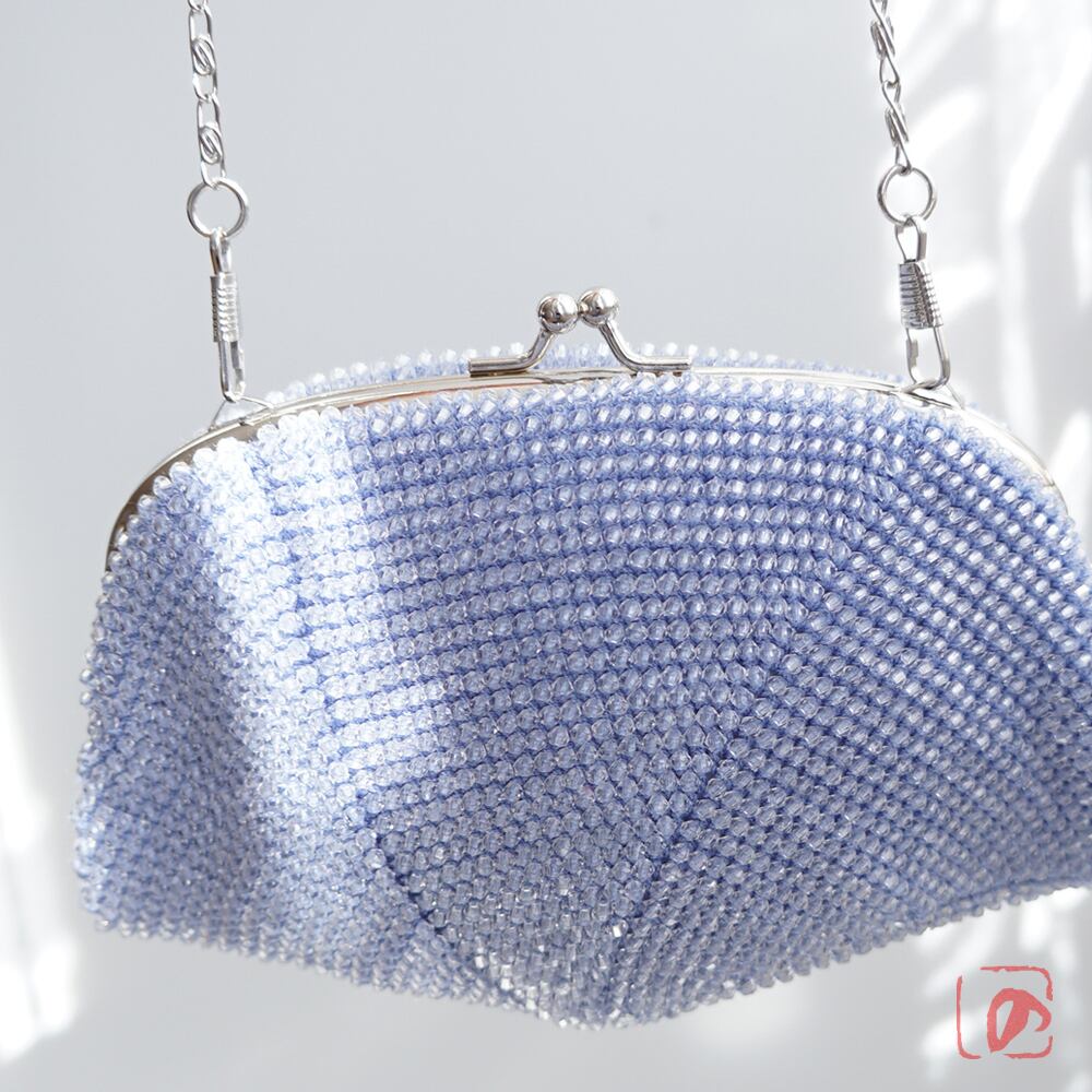 ばあば作☆キラキラ☆アクリルビーズのちっちゃなバッグ(lavande pétillante・1878)