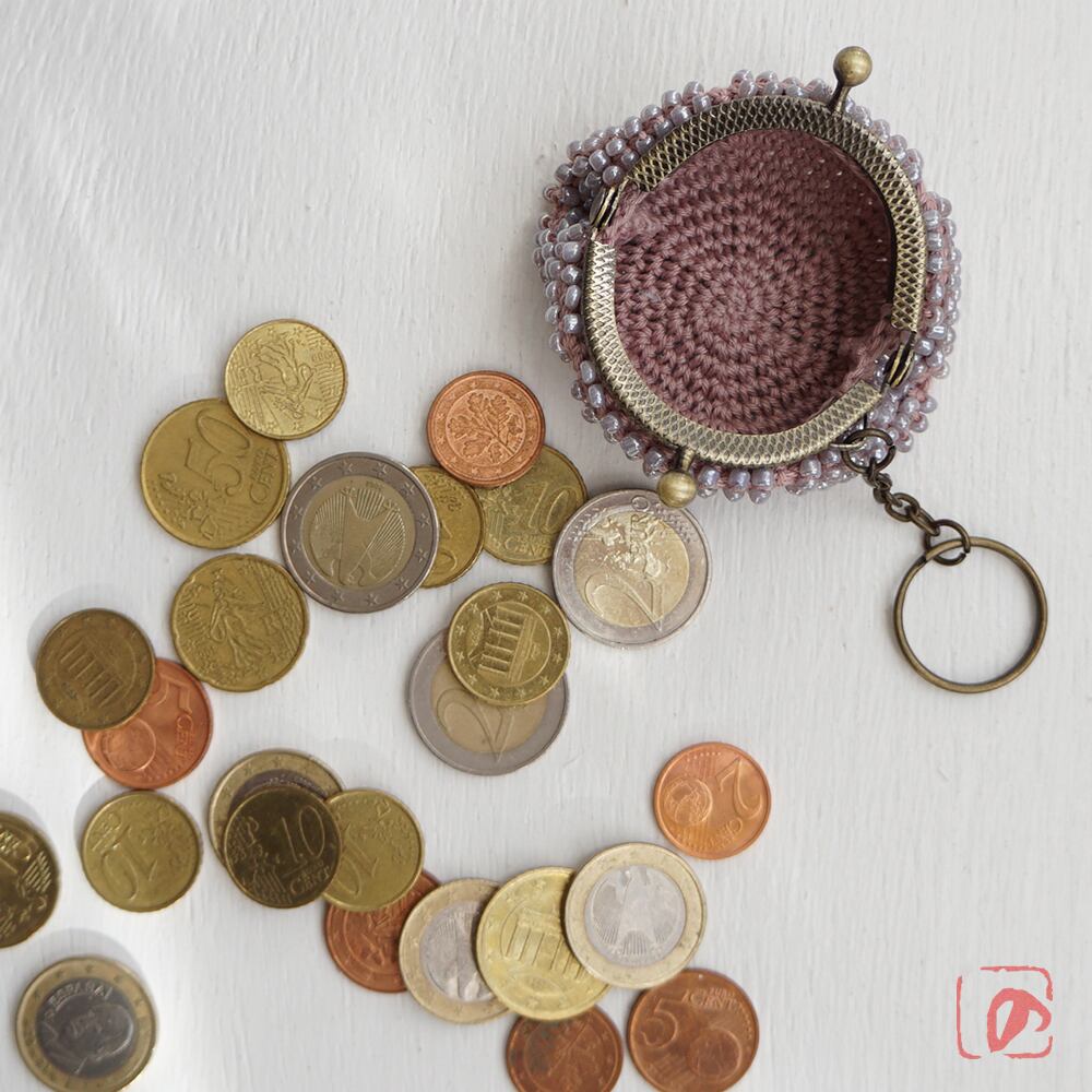 3mmのガラスビーズをひとつぶづつ編み込んだがま口です。