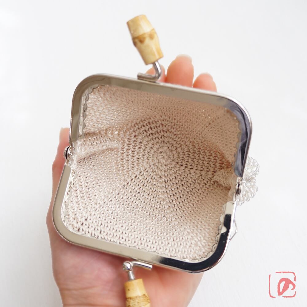 ばあば作☆☆総ガラスビーズのスクエアがま口(bámboo・1895)