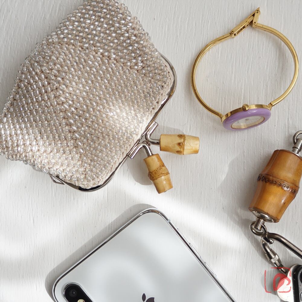 お気に入りのビーズを使ったSHOP2155オリジナルの口金を使用しました。