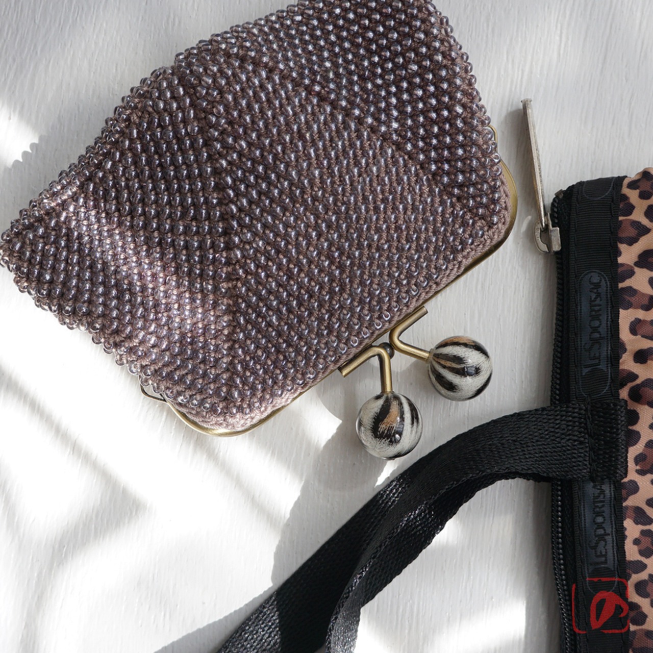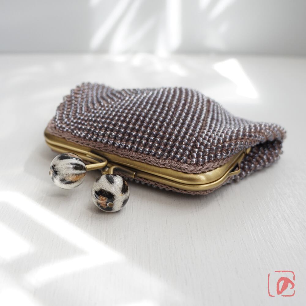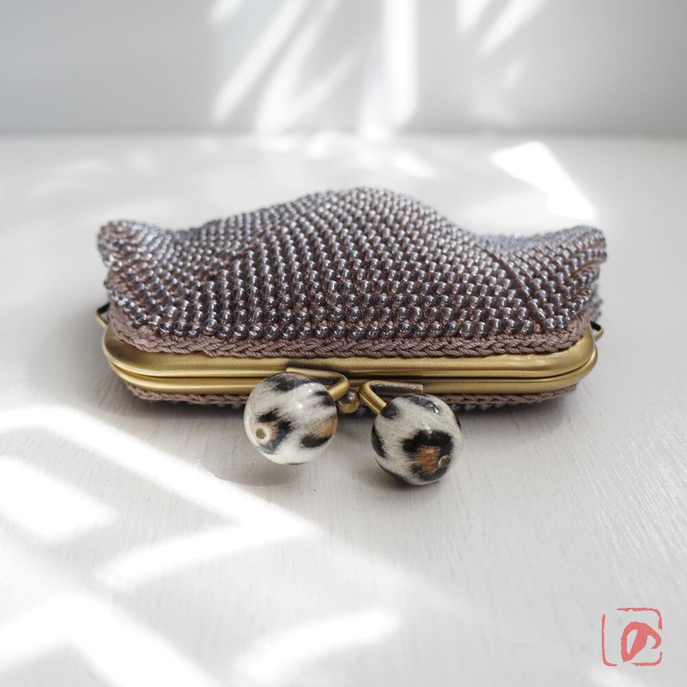 ばあば作、大きめ・総ガラスビーズのスクエアがま口(cannelle Leo・1894)