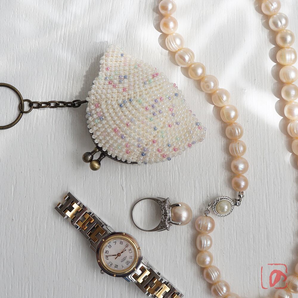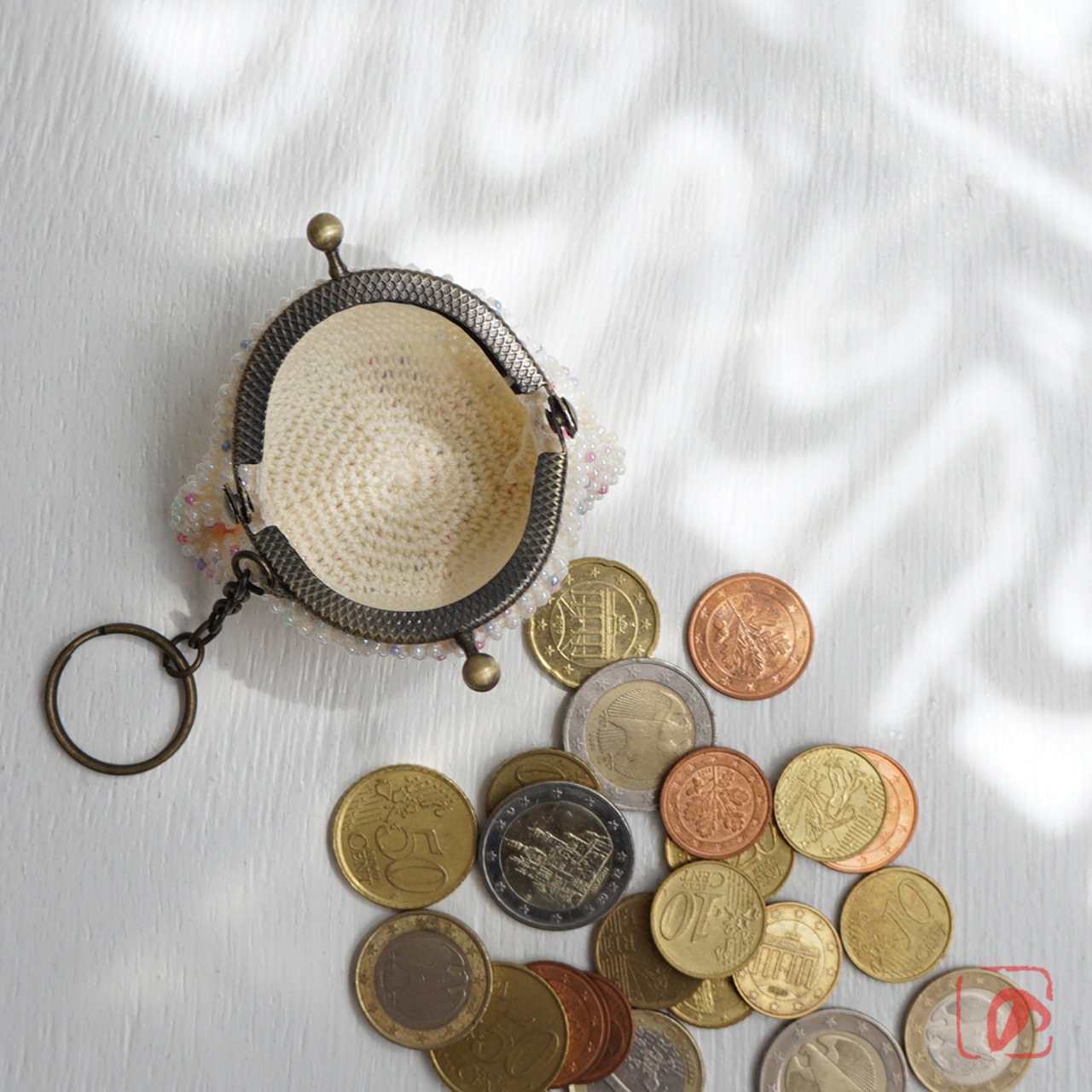 2mmのシードビーズをひとつぶづつ全面に編み込んだ、上質ながま口です。
