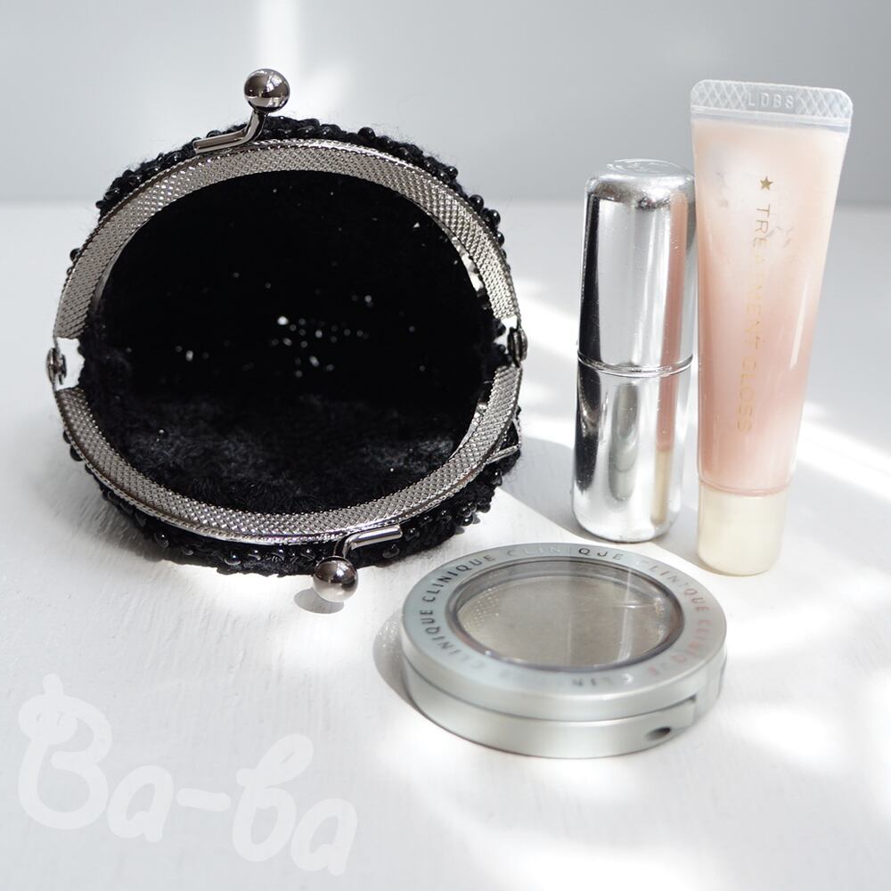 編みがま口の軽量さと、ビーズの輝きを両方取り入れた作品です。