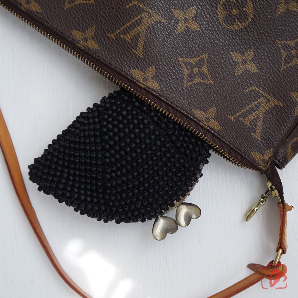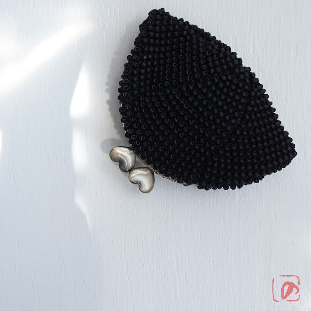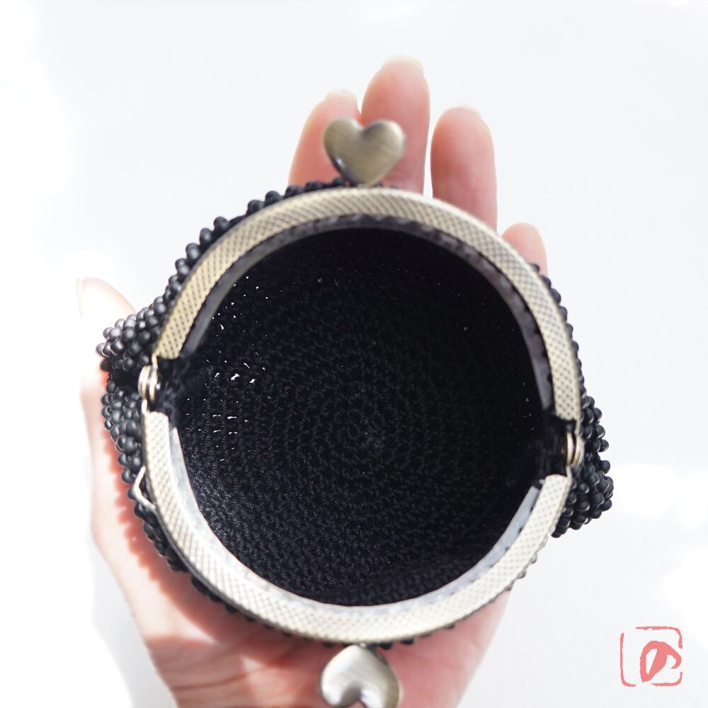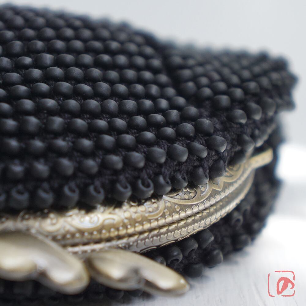 3mmのマットなブラックビーズをを全面に編み込んだがま口です。
