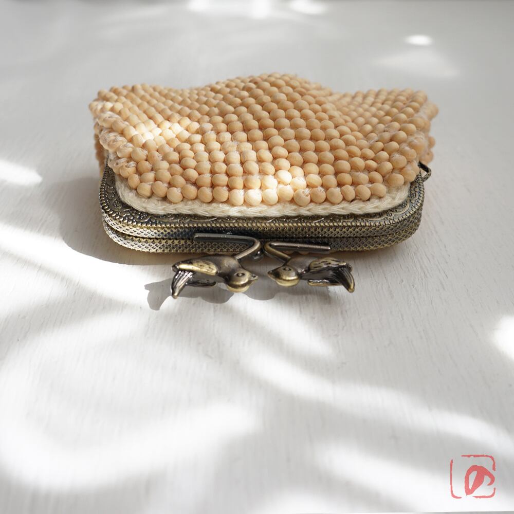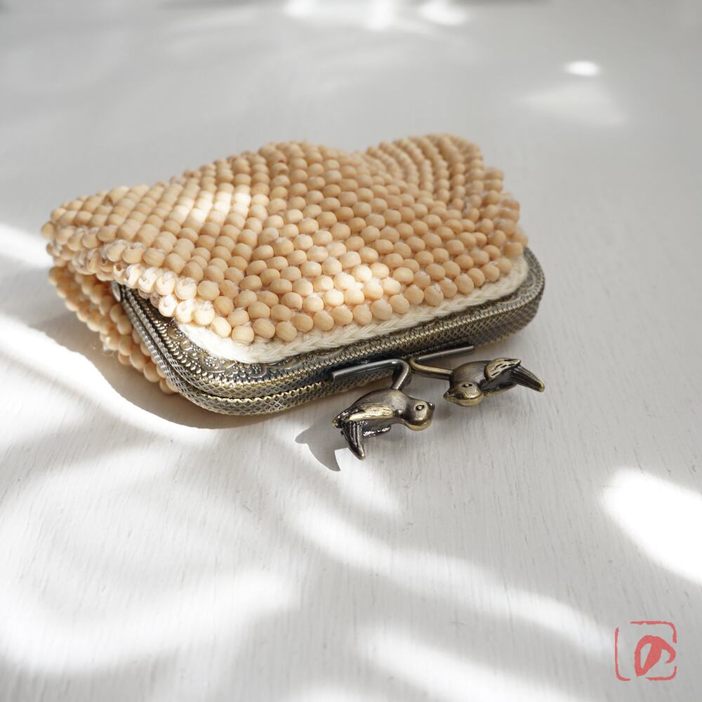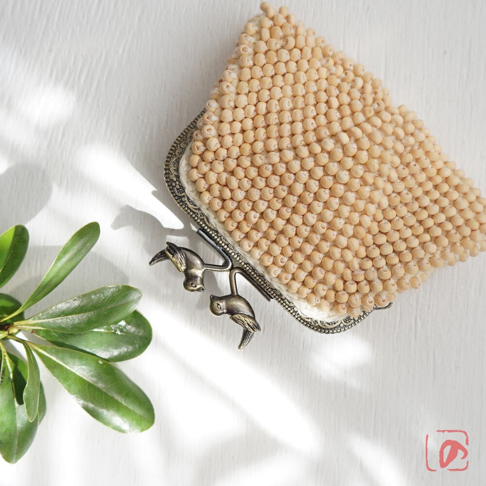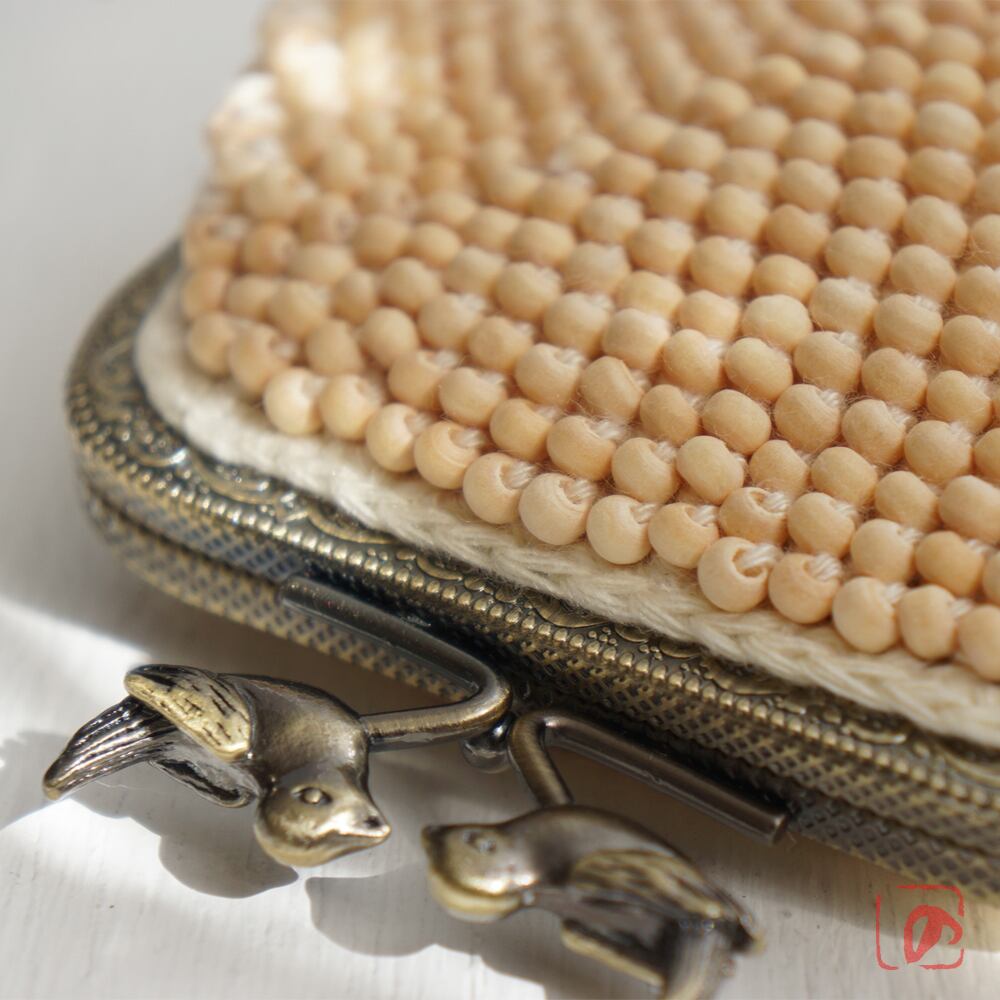 ナチュラルウッドビーズを全面に編み込んだがま口です。