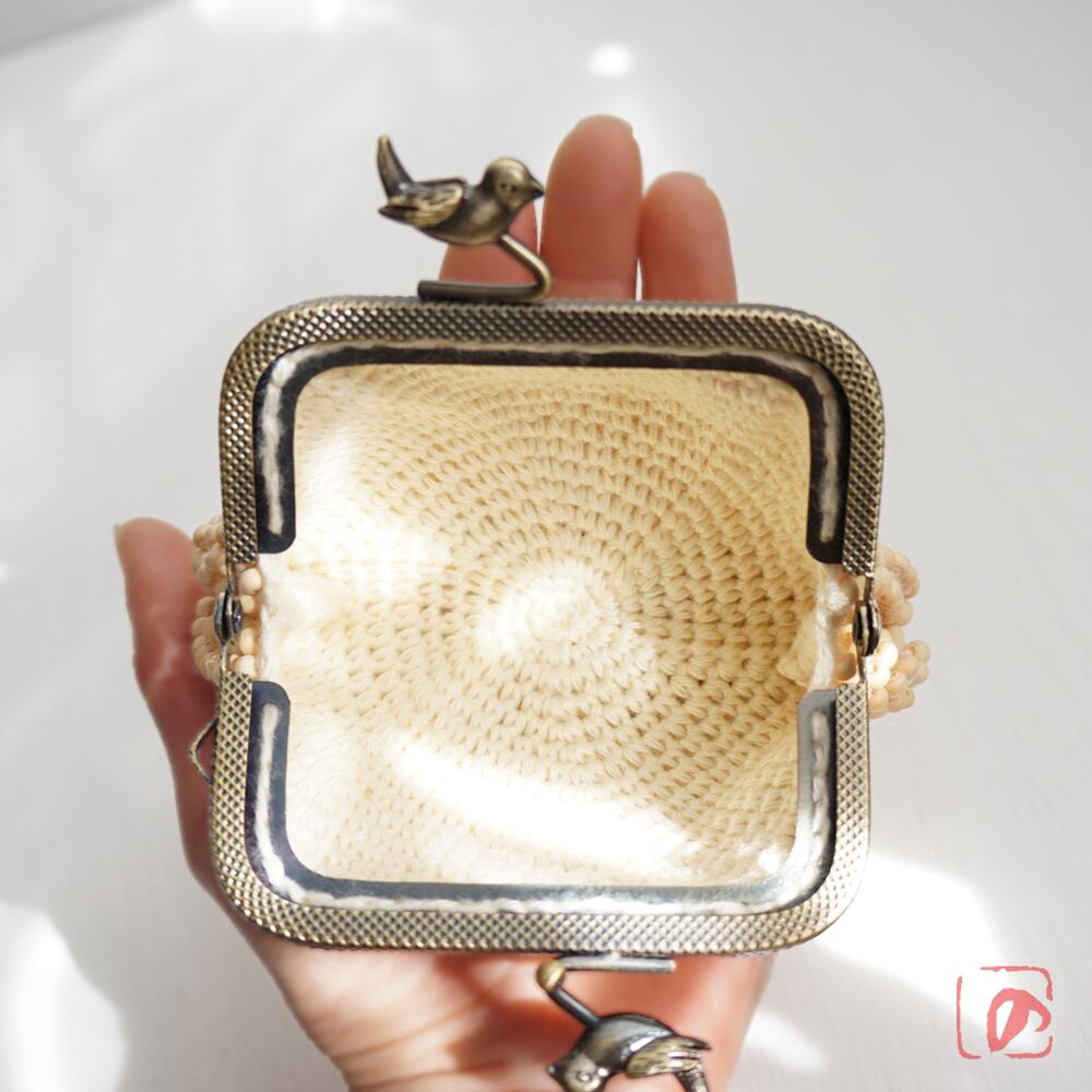ばあば作、ウッドビーズのスクエアがま口(metsälintu・1888)