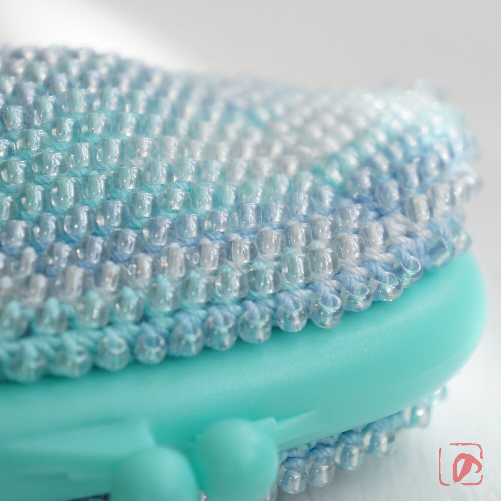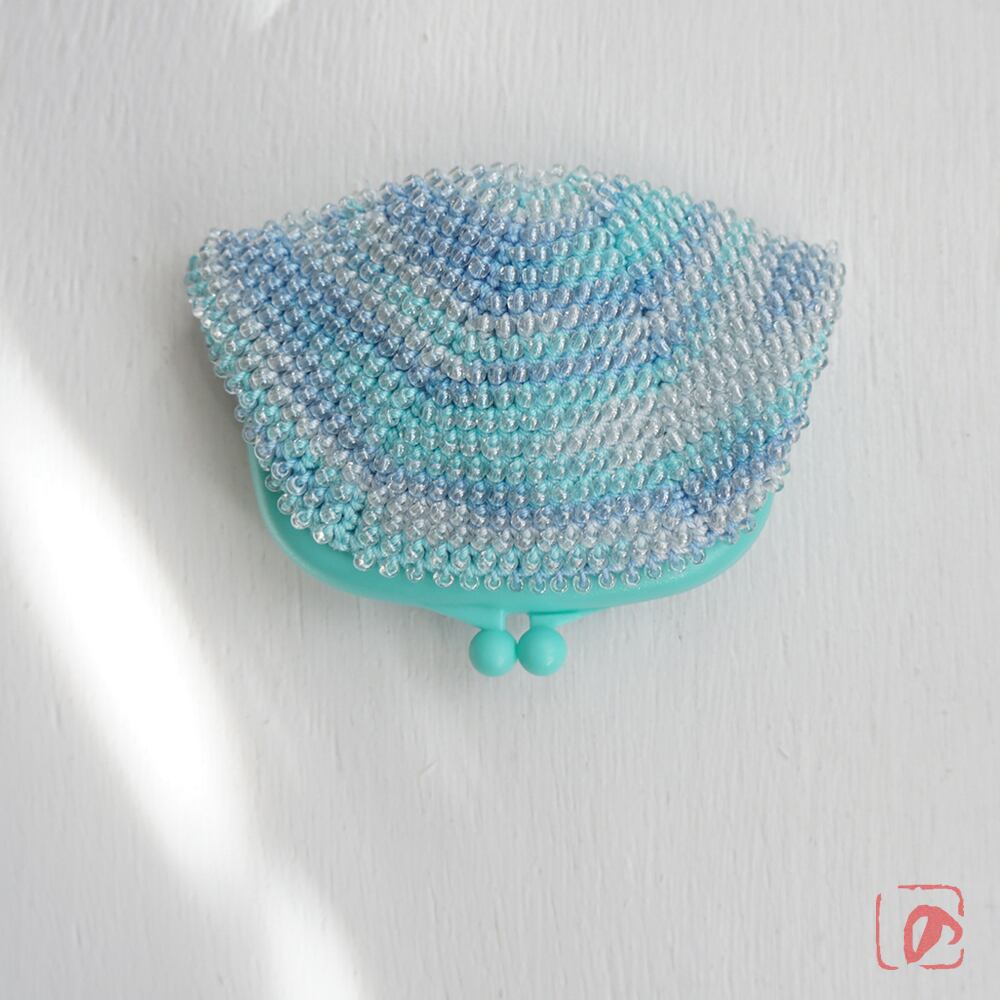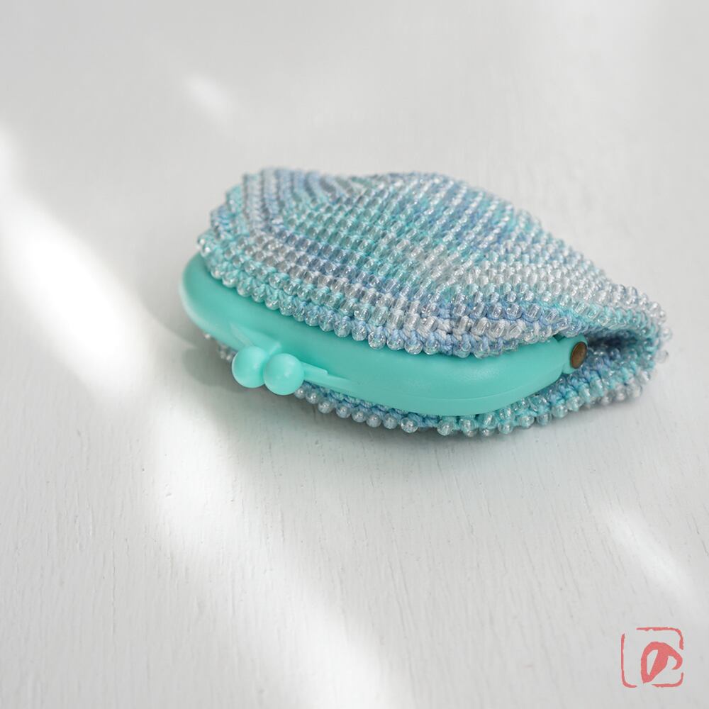 3mmガラスビーズをひとつぶづつ全面に編み込んだがま口です。