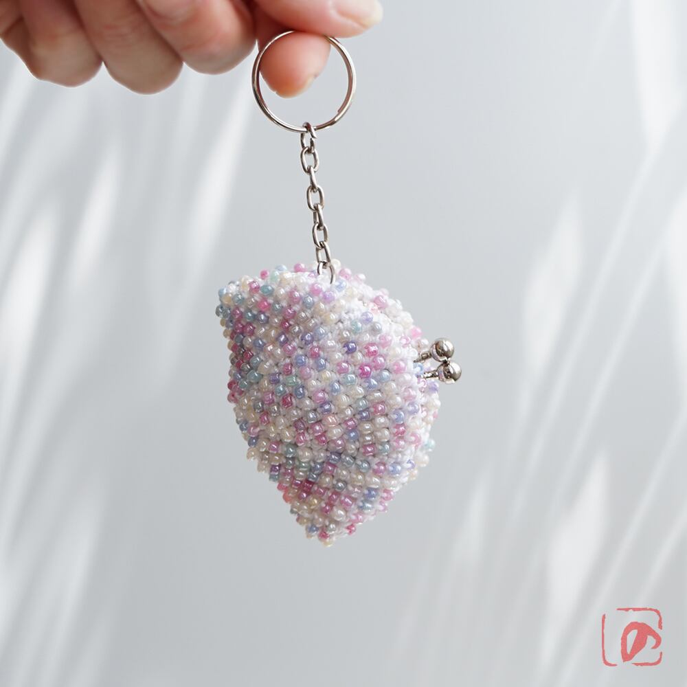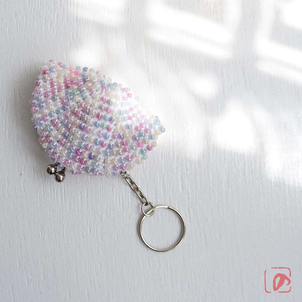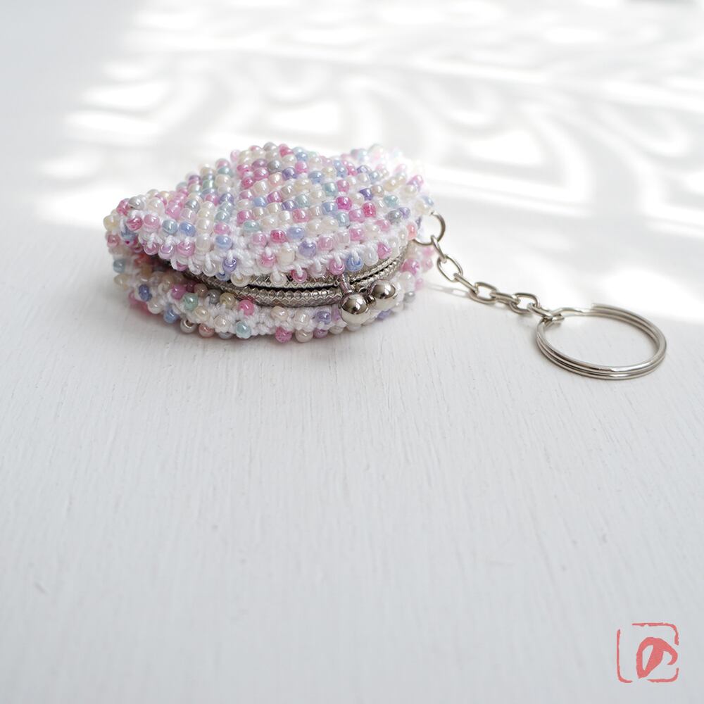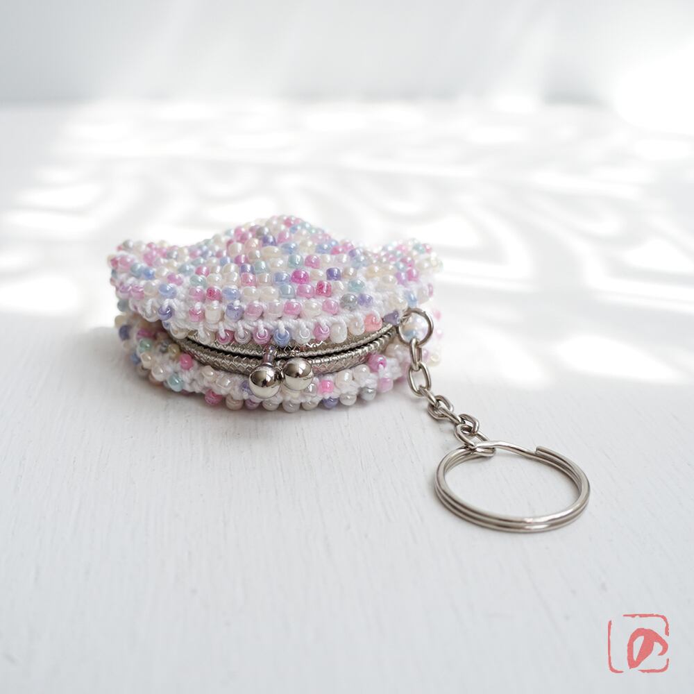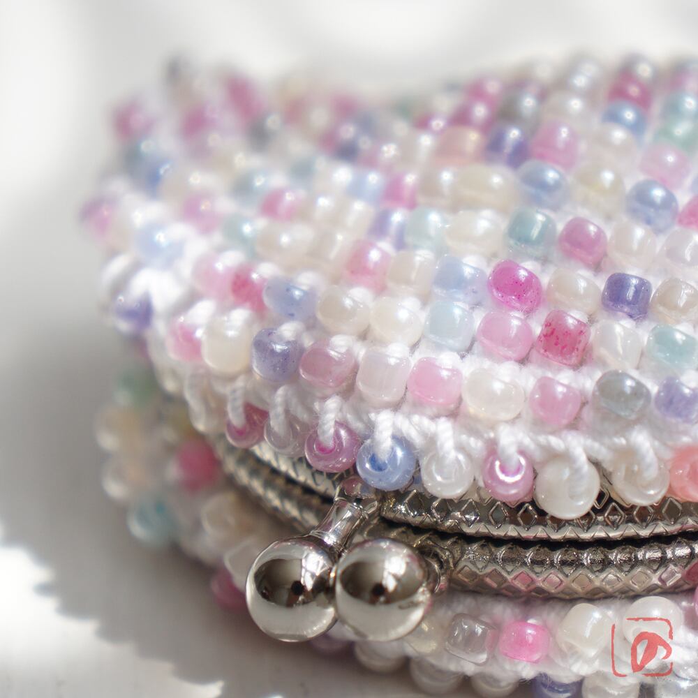 3mmのガラスビーズをひとつぶづつ編み込んだがま口です。
