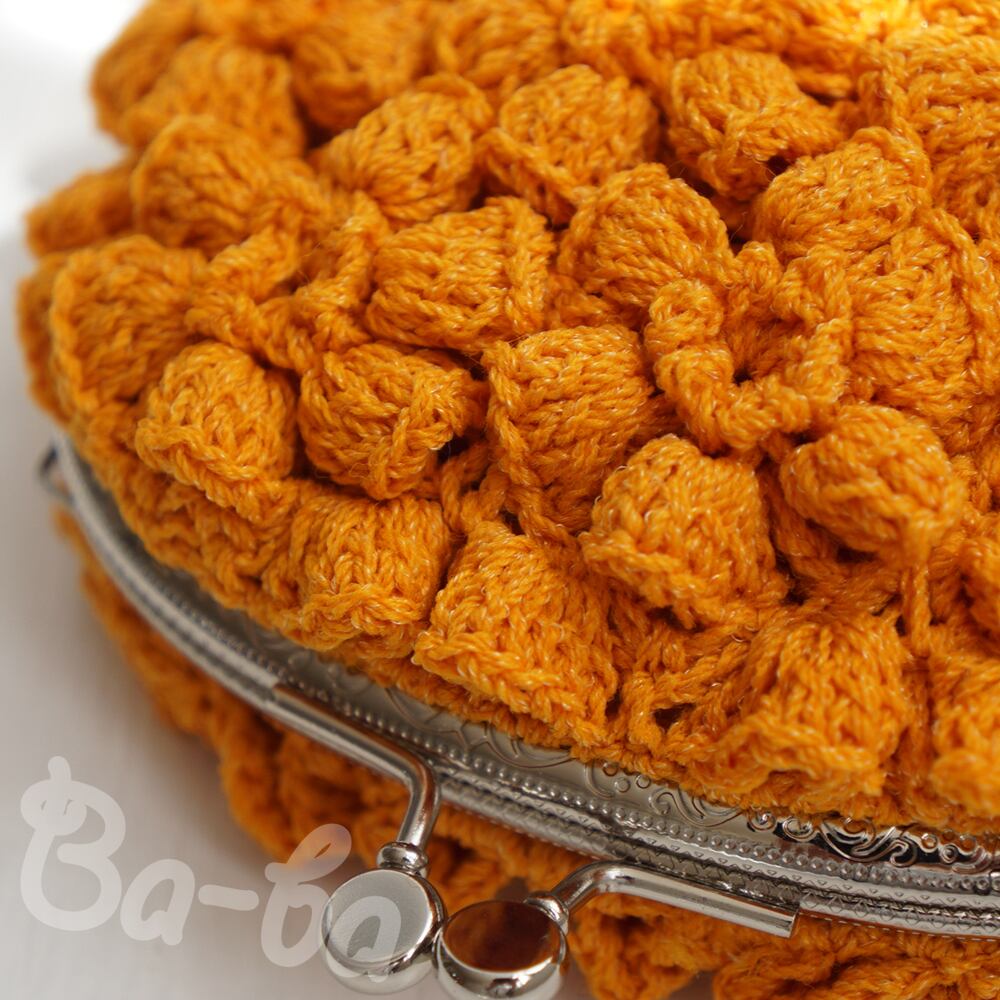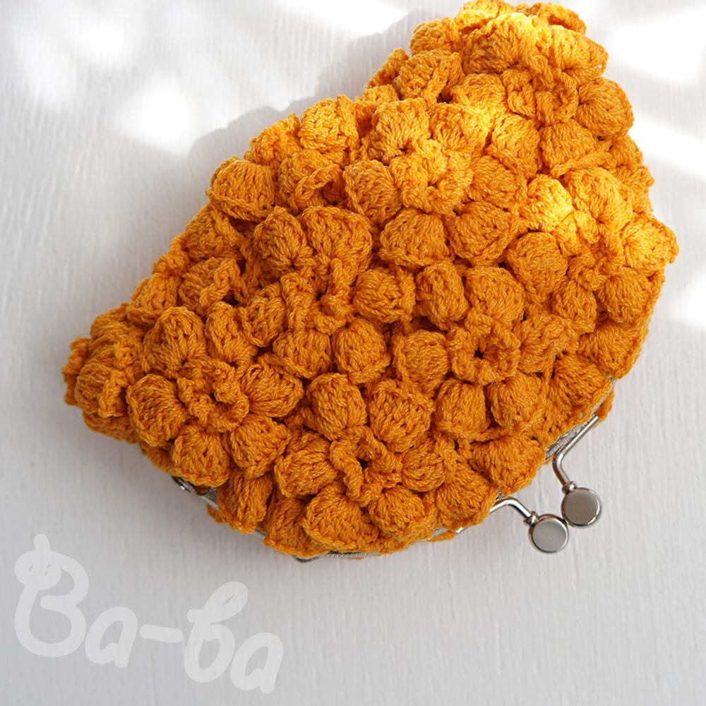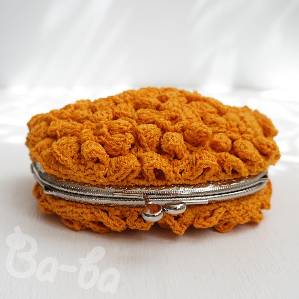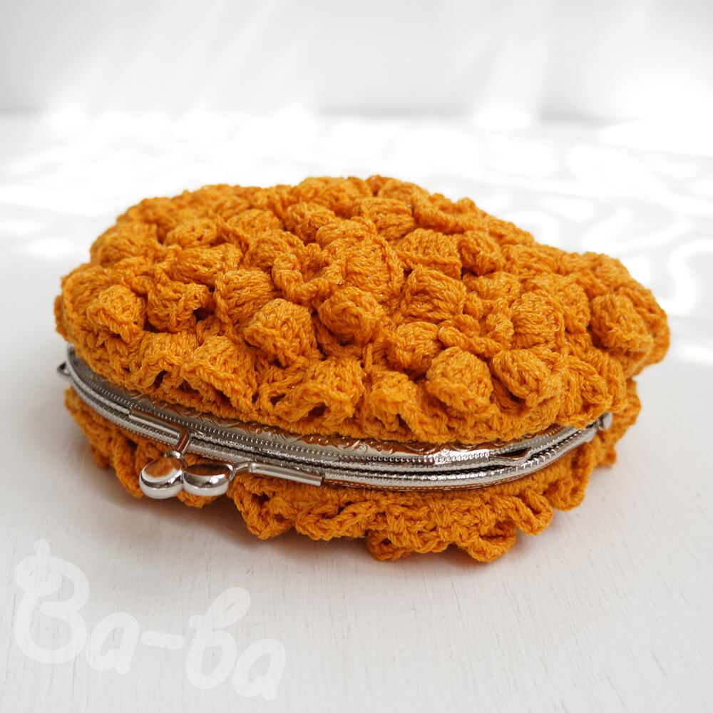 ばあば作、ポピーパフ編みのがま口(oranssi・C1682)