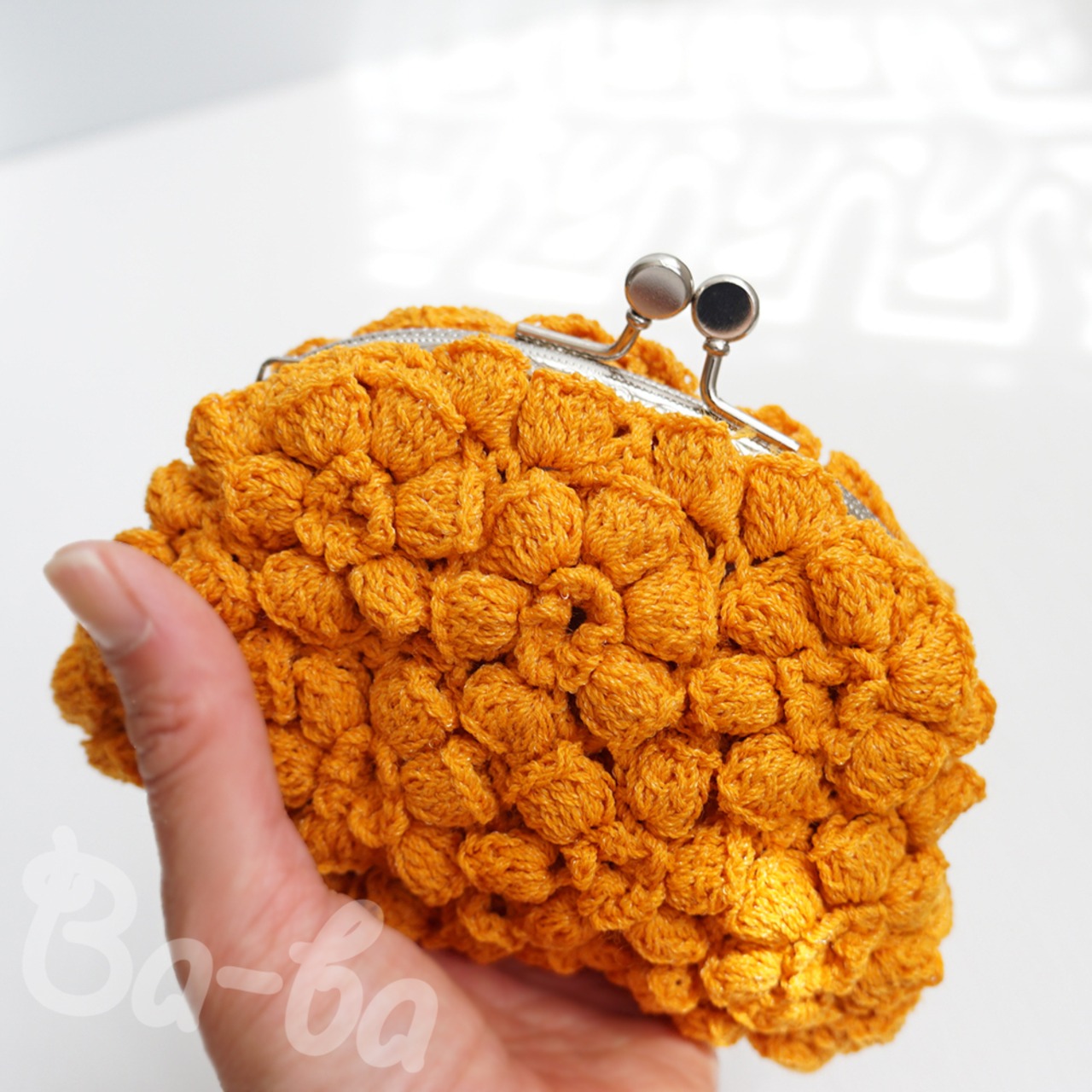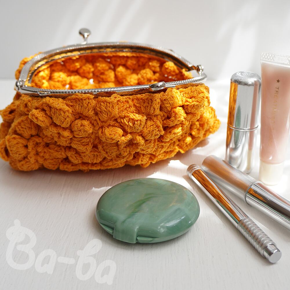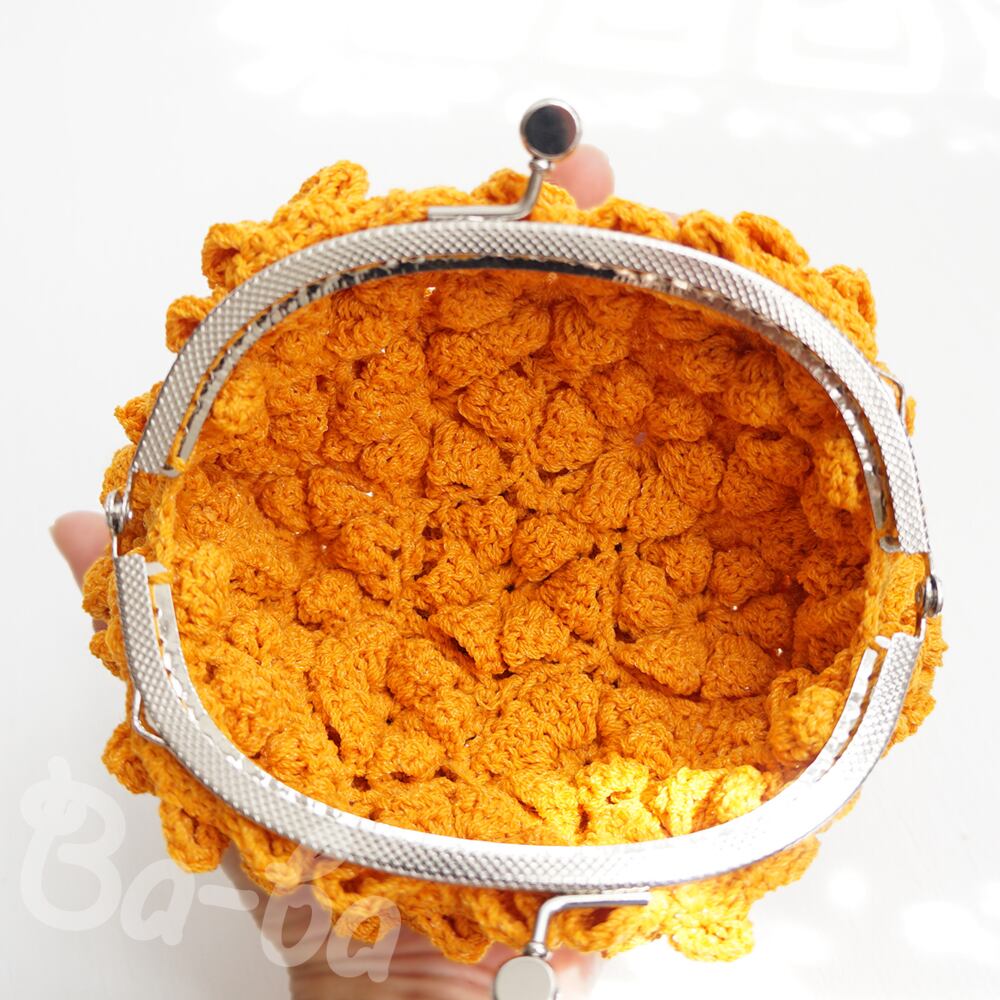 ばあば作、ポピーパフ編みのがま口(oranssi・C1682)