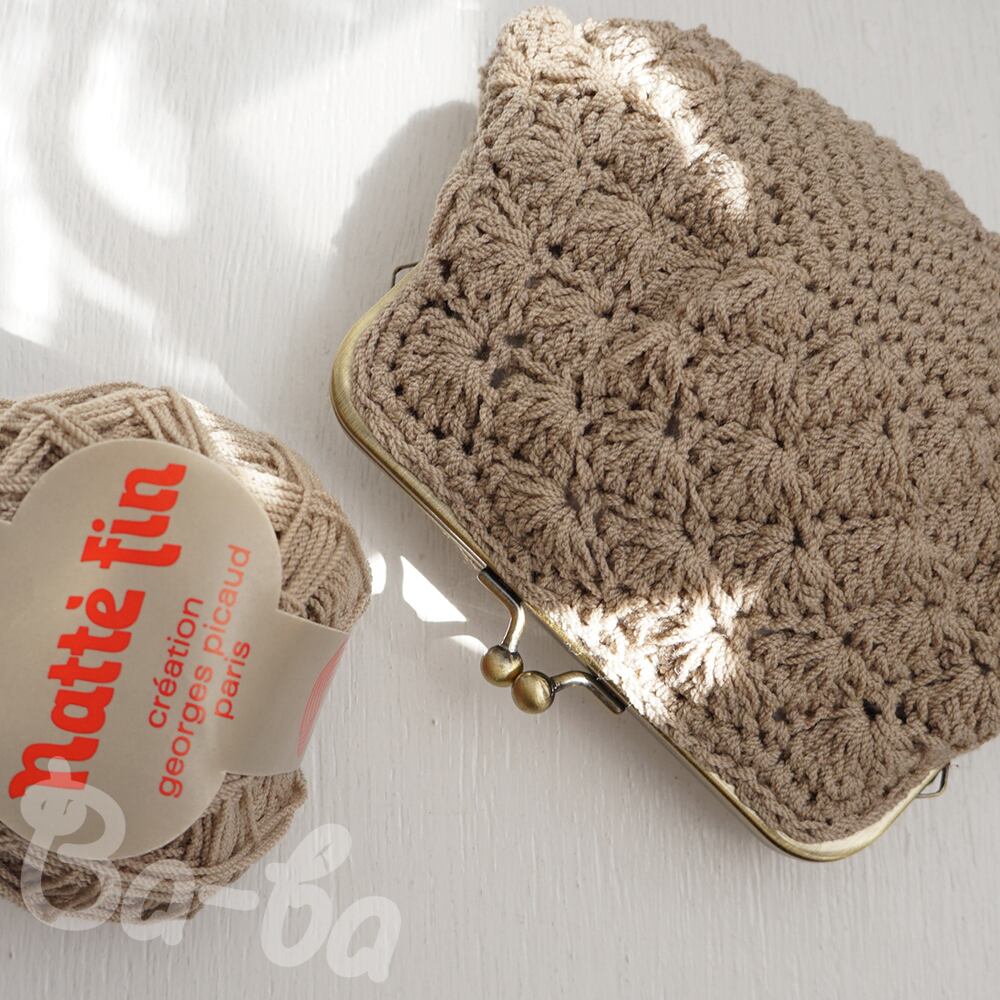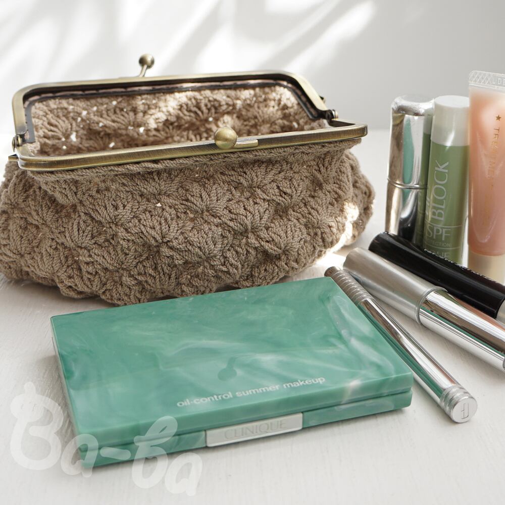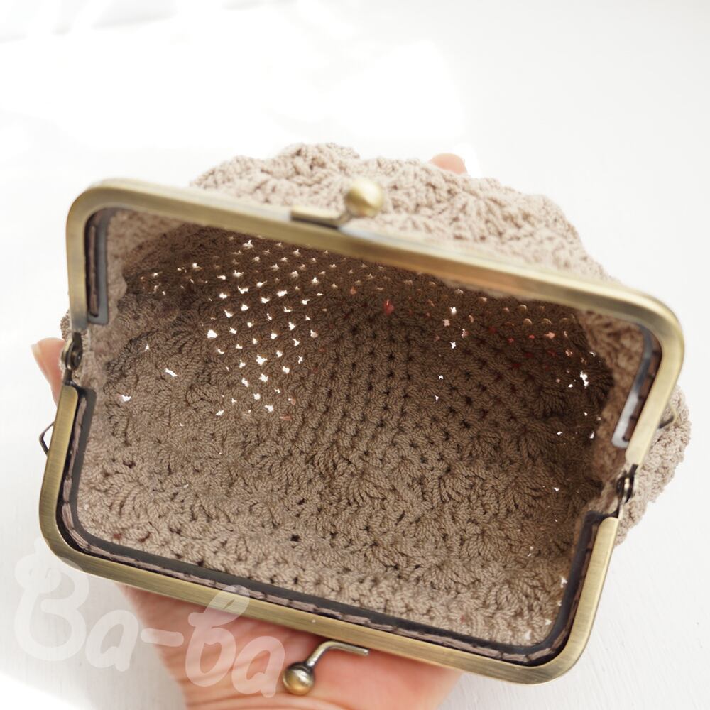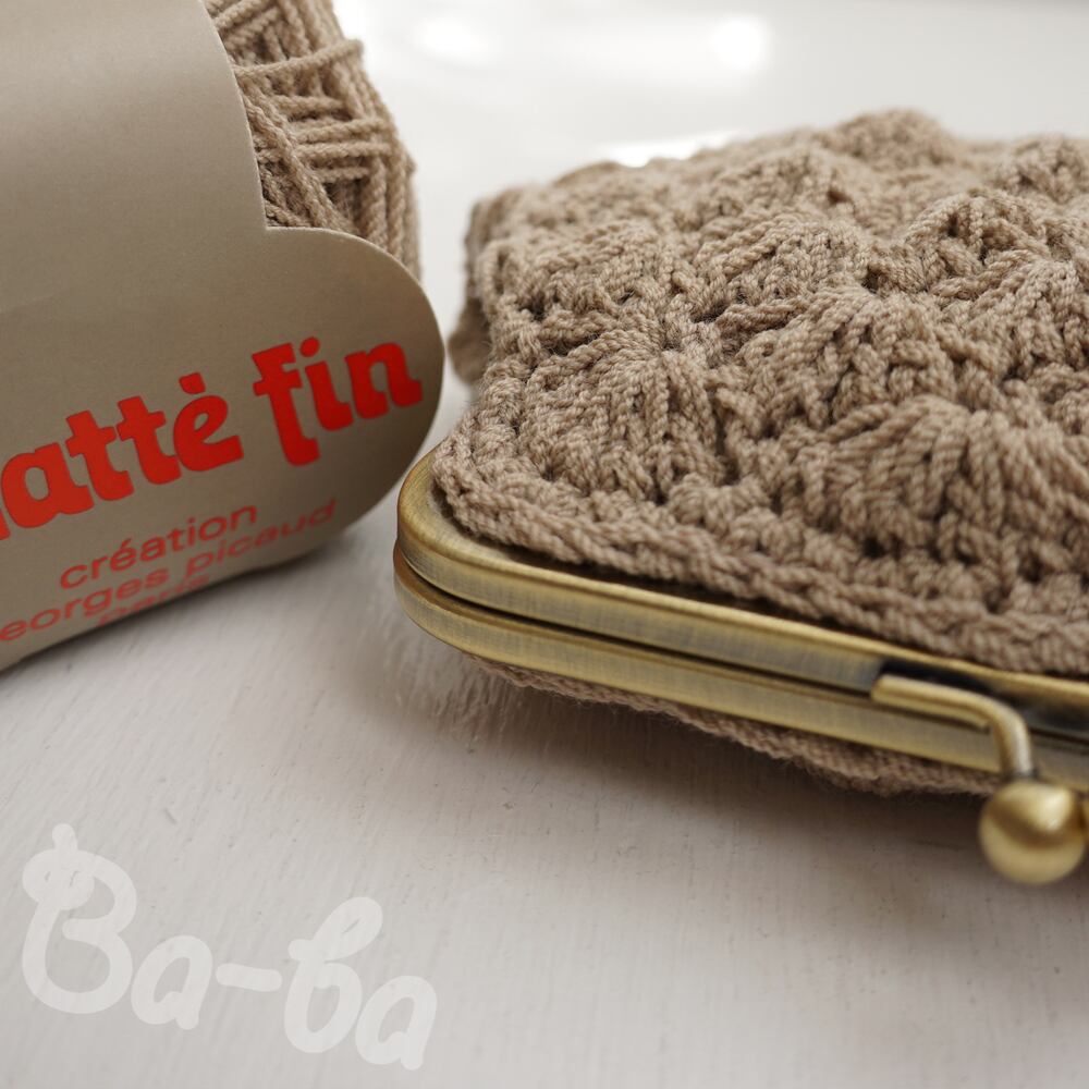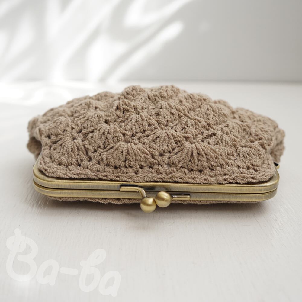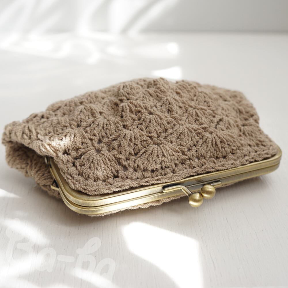 ばあば作♪松編みのさらに大きめがまぐちポーチ(pin sáble・C1666)