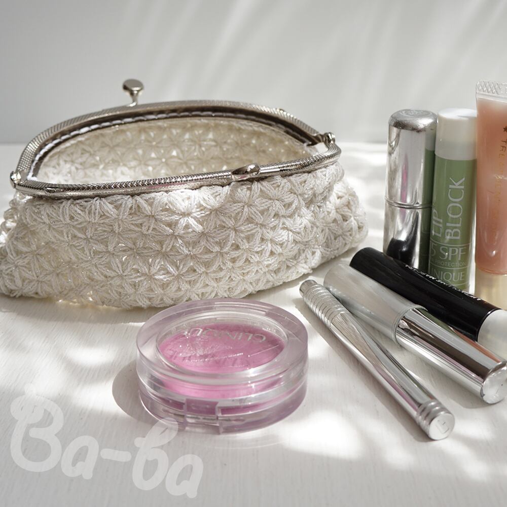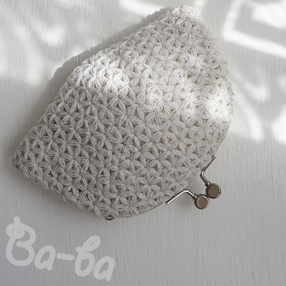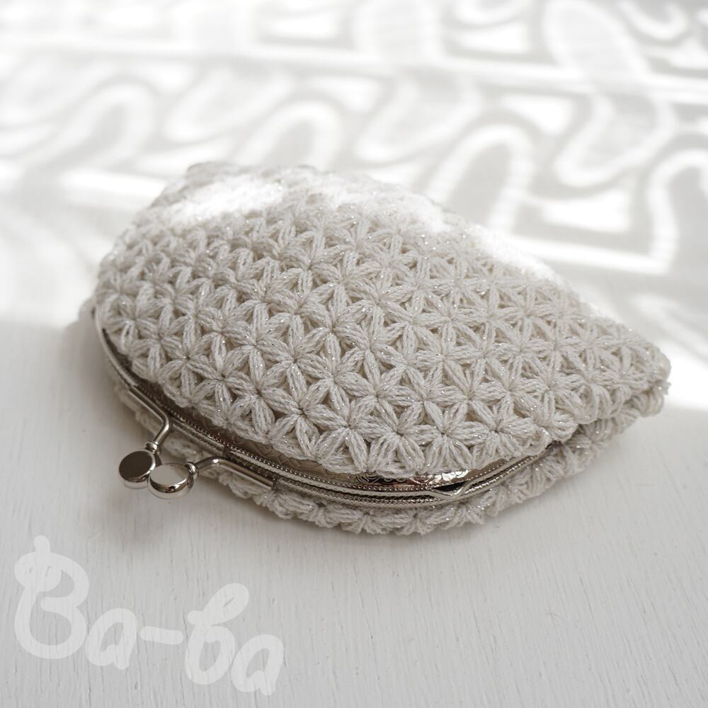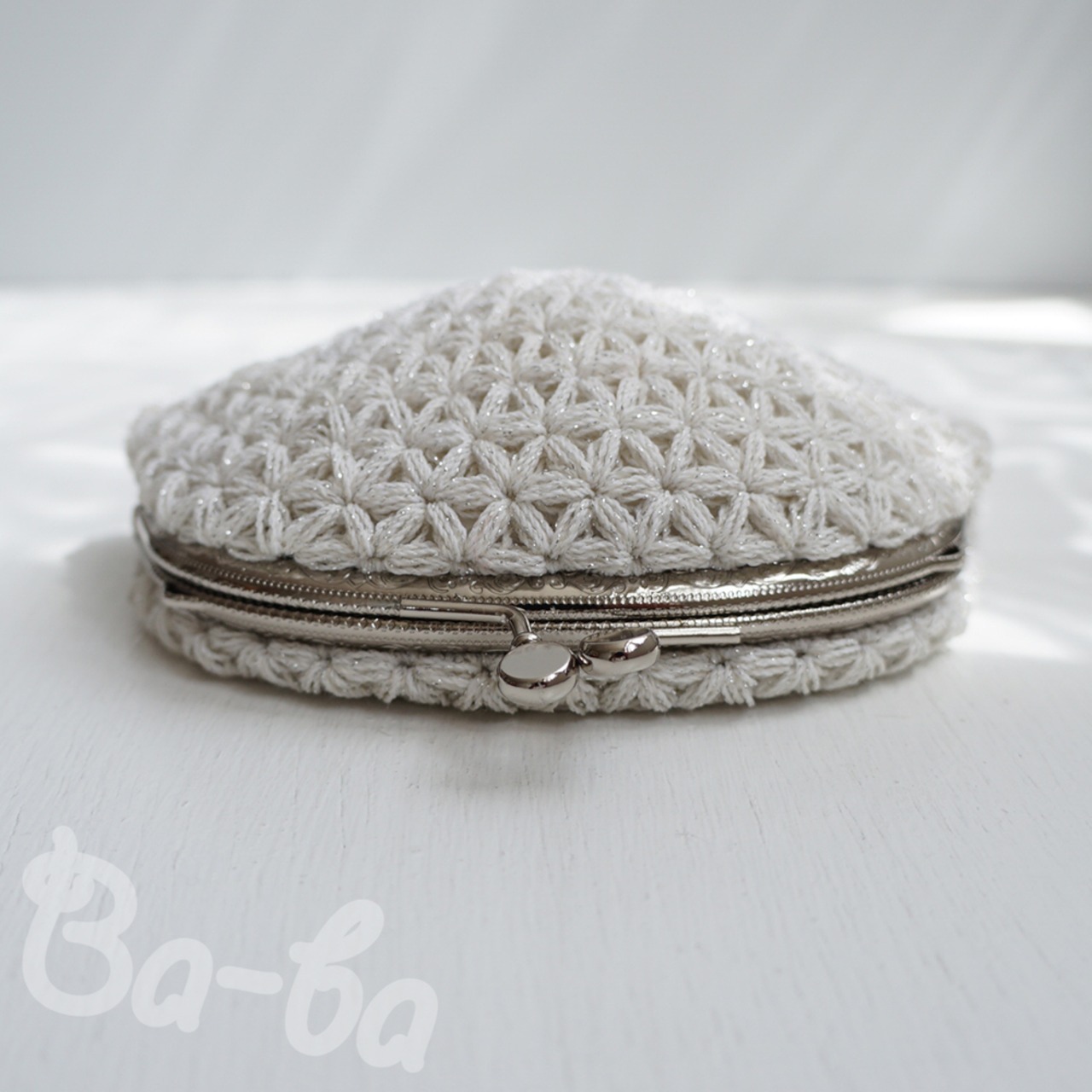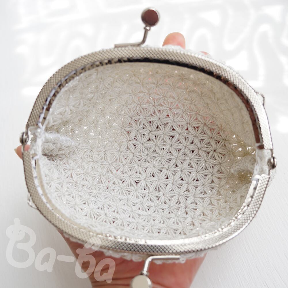 キラッと銀ラメ入り糸×シンブルなつまみのシルバー口金がキレイです。