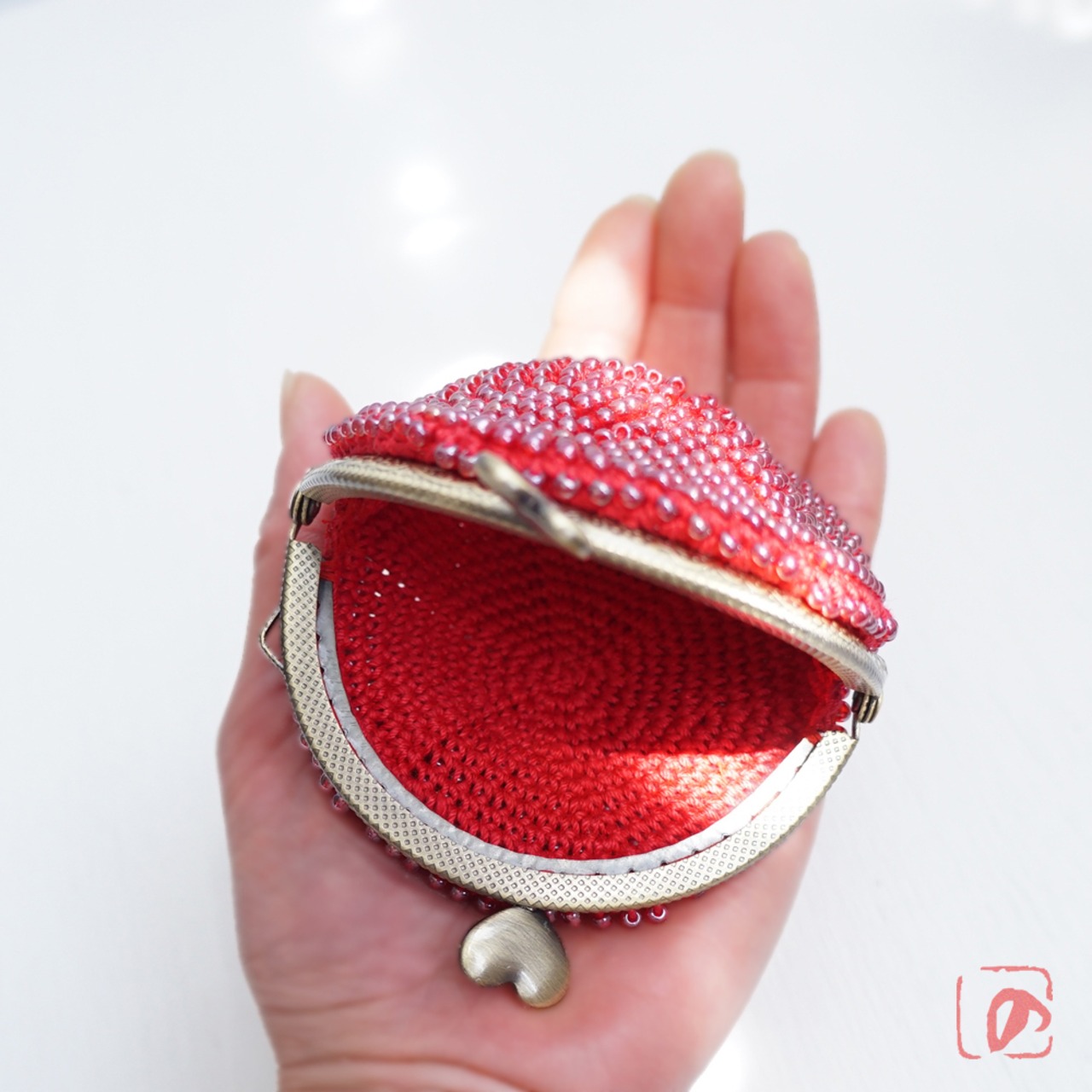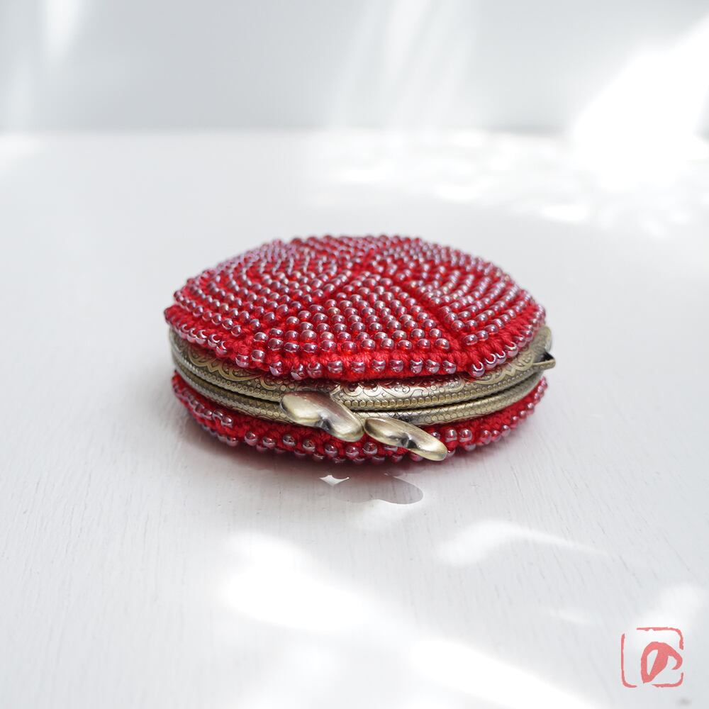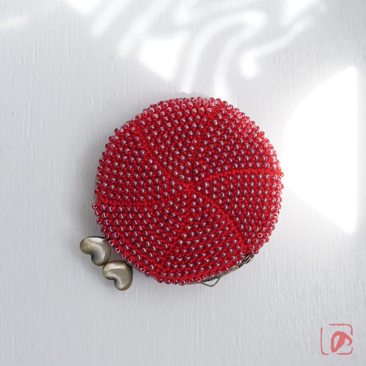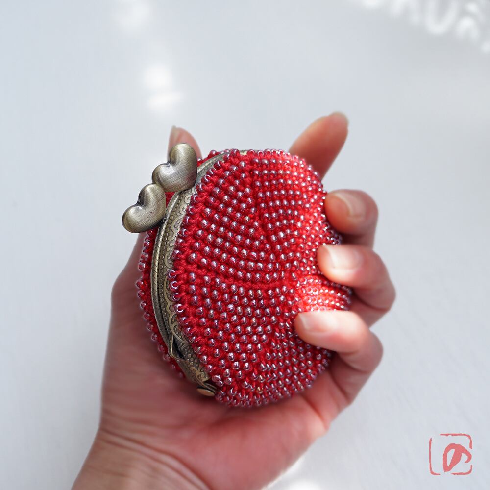 ばあば作 ♡ ガラスビーズのまんまるがま口(Fraise Herz・1917)