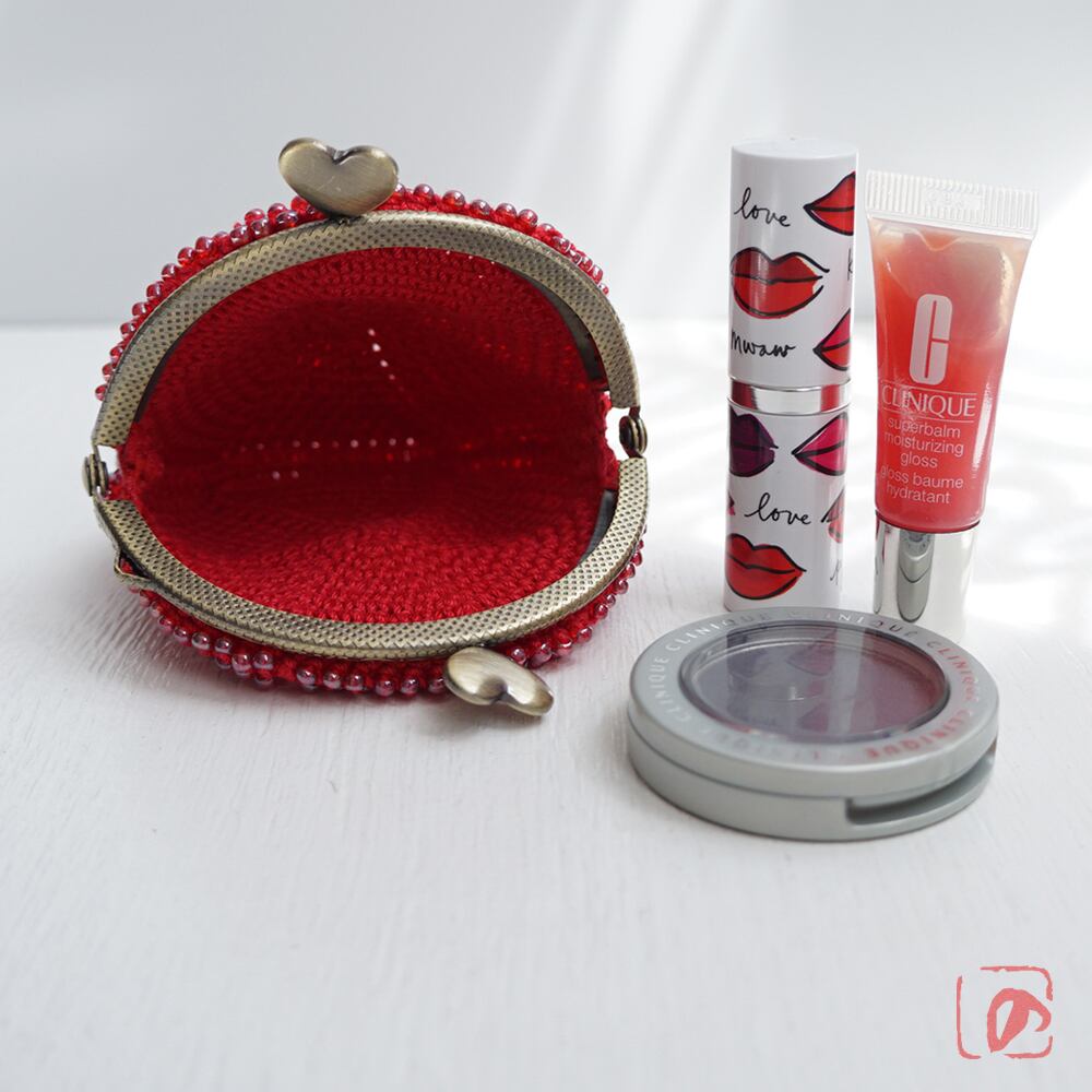 糸とビーズを赤で揃えて、可愛らしく仕上げました。