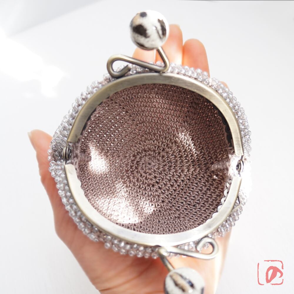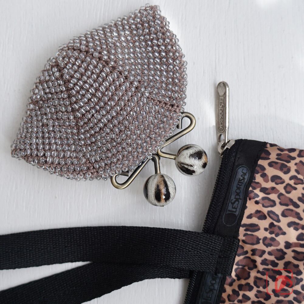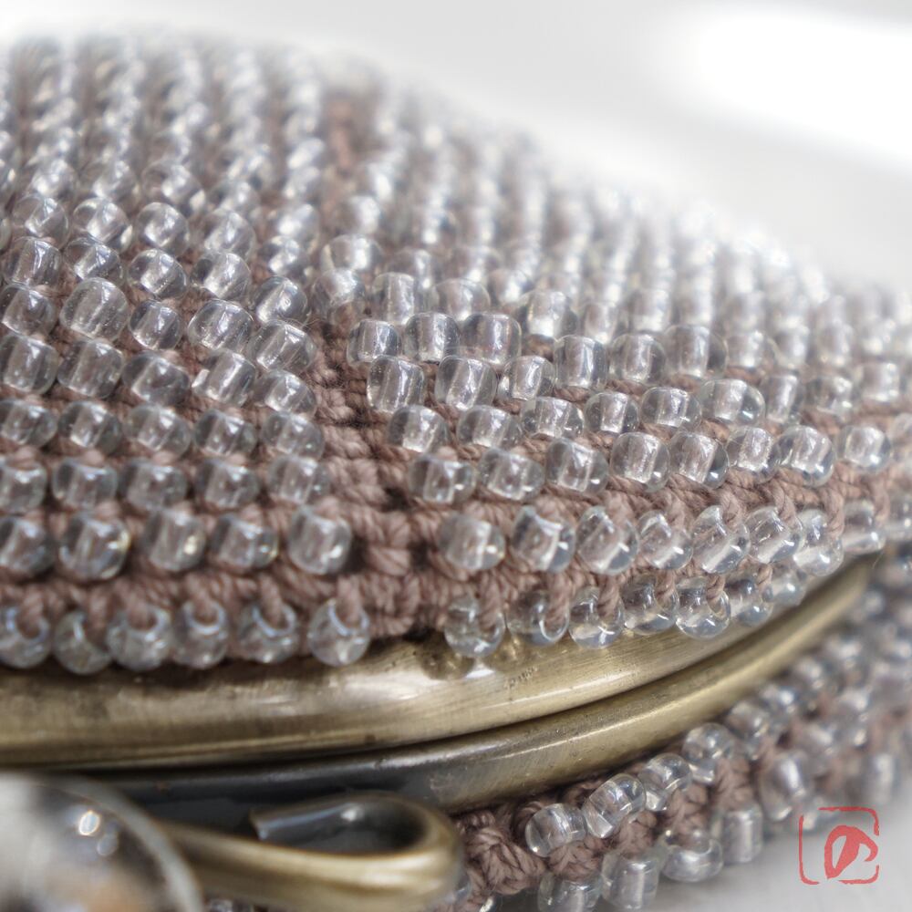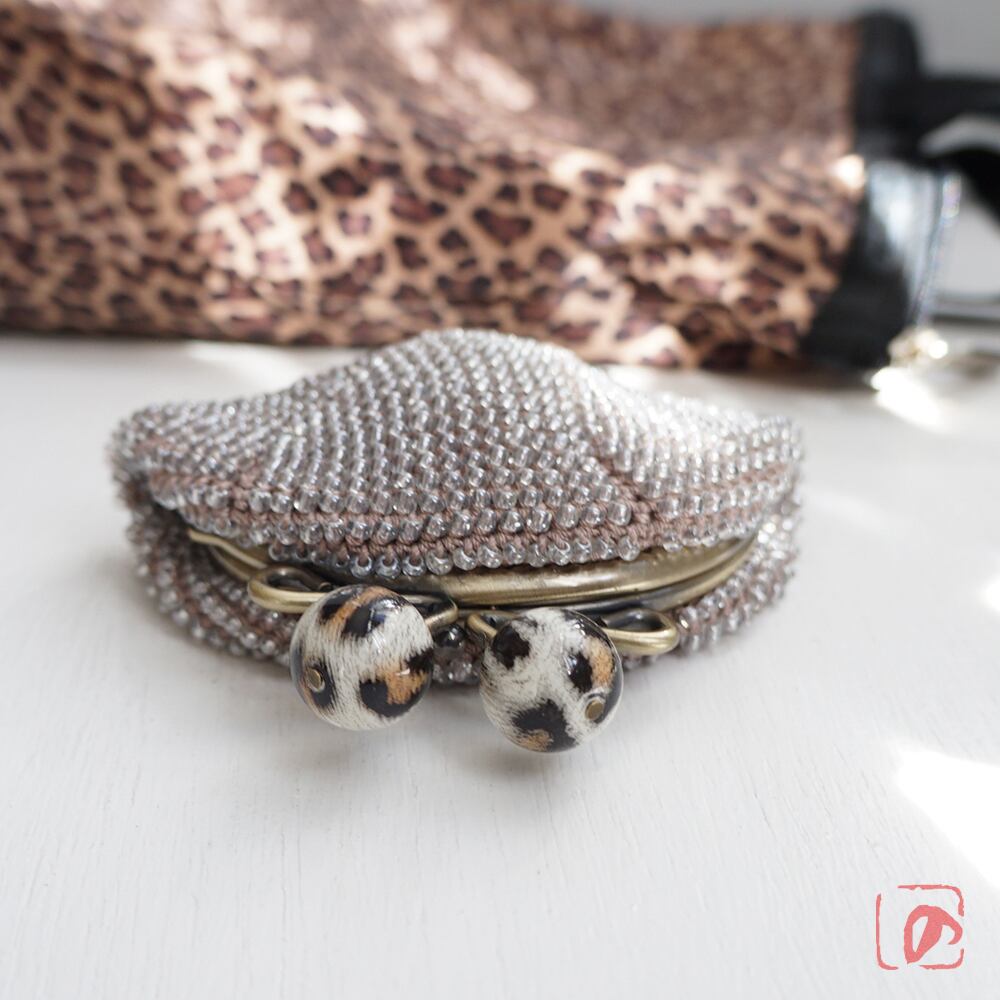 ばあば作☆☆総ガラスビーズのがま口(Gris tourterelle leo・1865)
