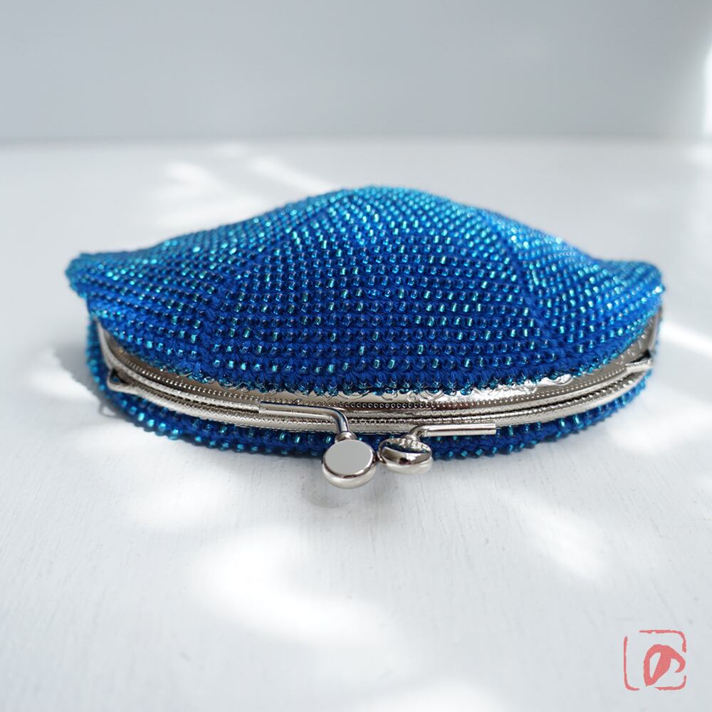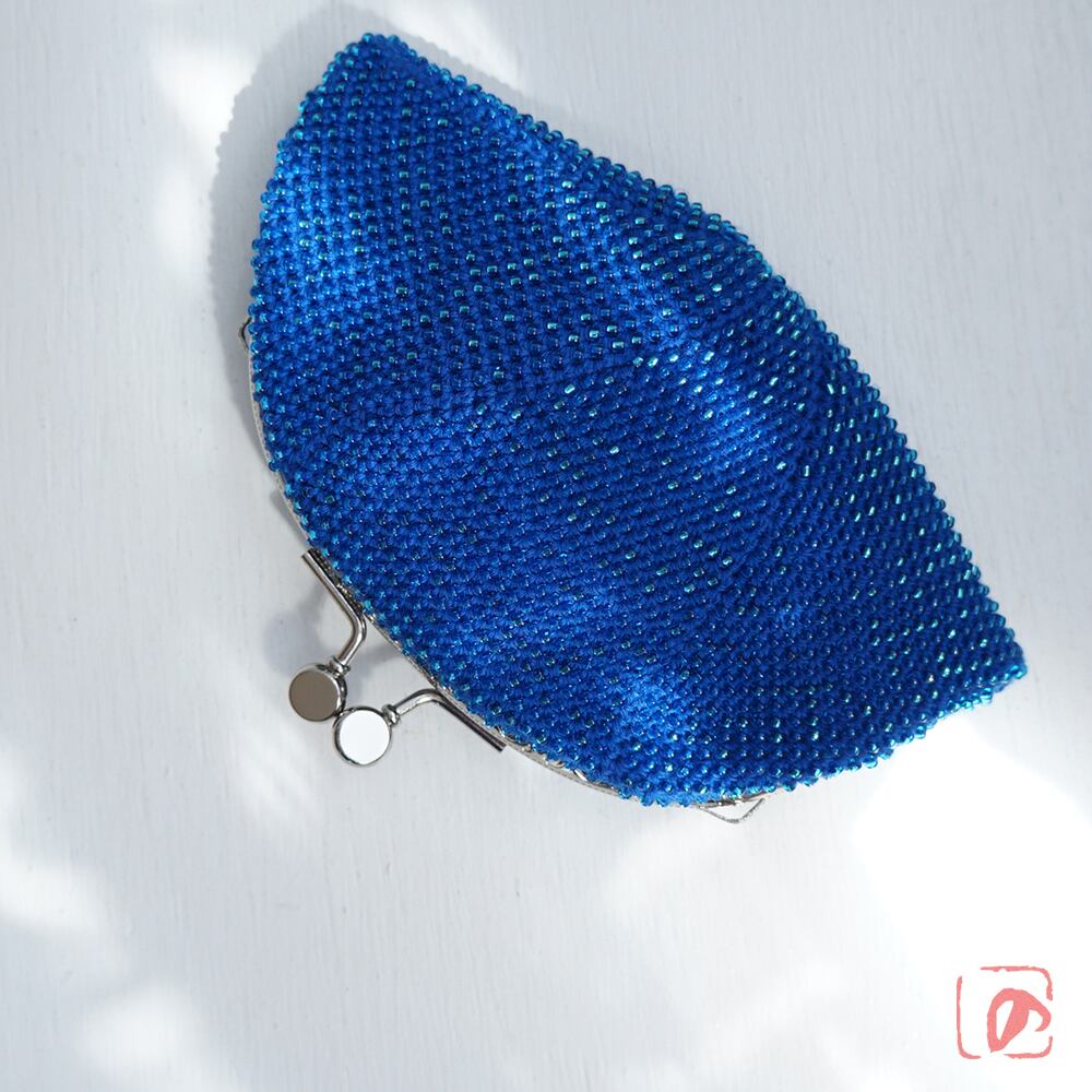 ばあば作☆シードビーズのさらに大きめがま口(blueblue・1777)