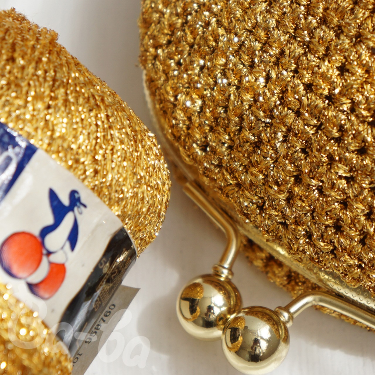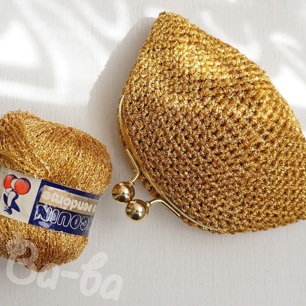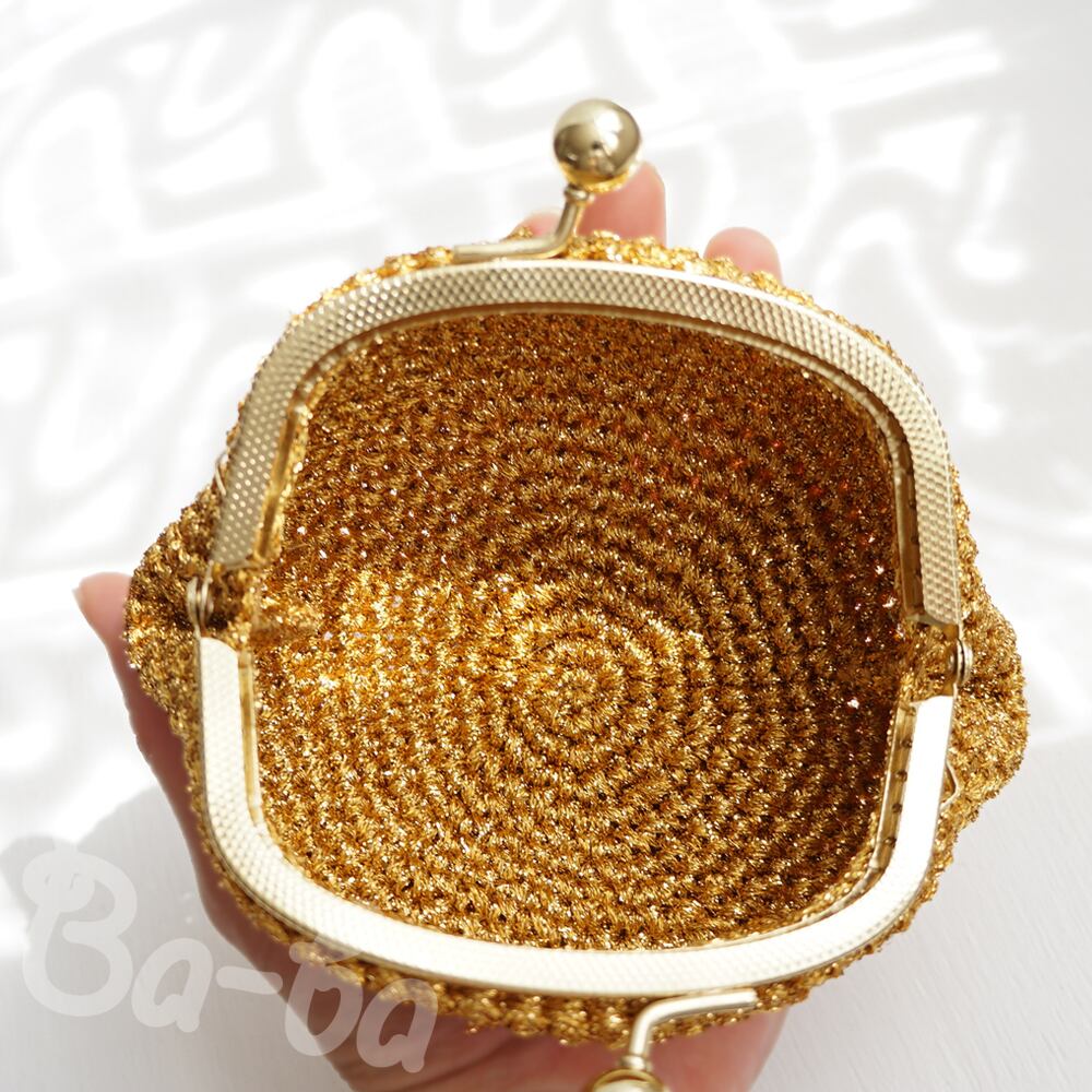 フランス製、ゴールドラメ糸のキラキラがま口です。