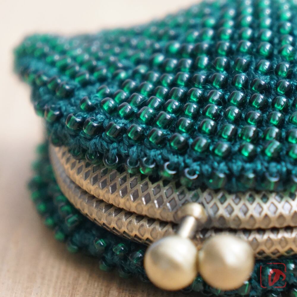 2mmのシードビーズをひとつぶづつ全面に編み込んだ、上質ながま口です。