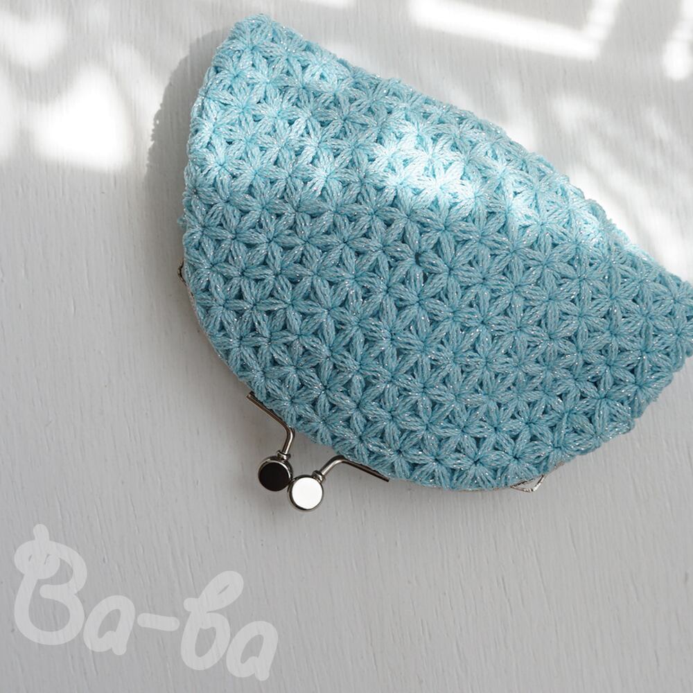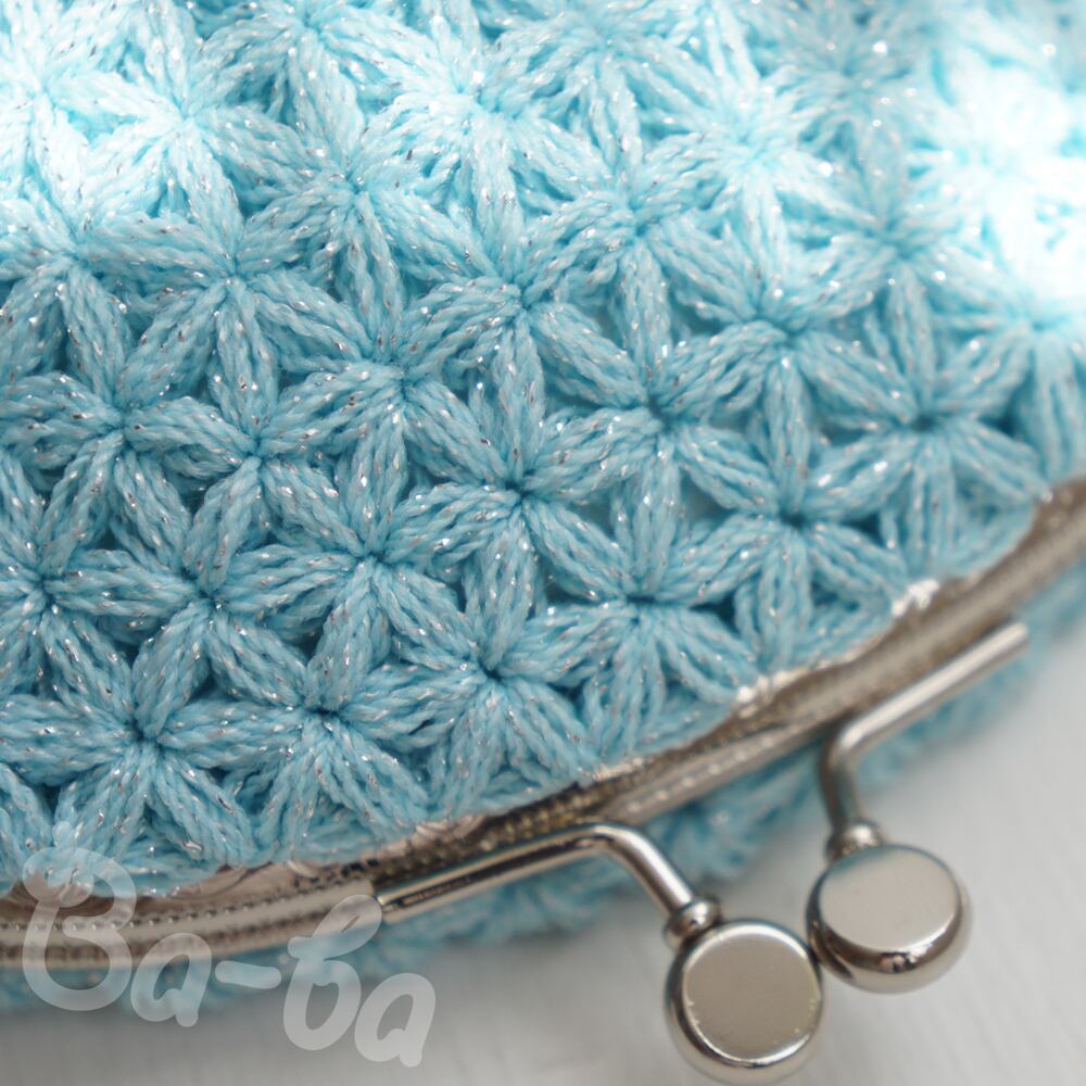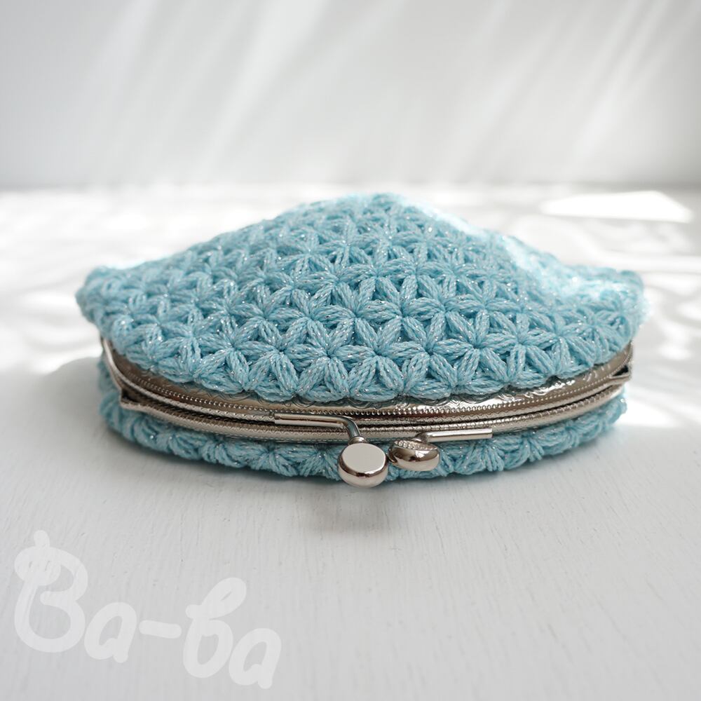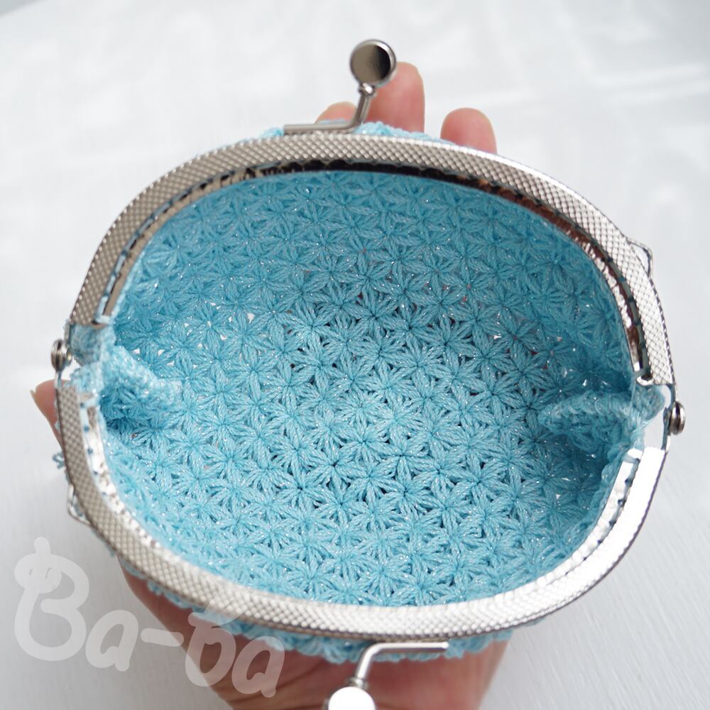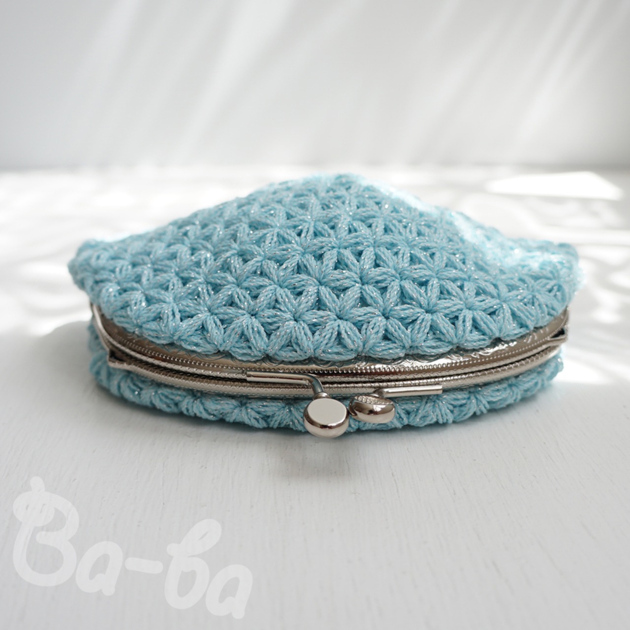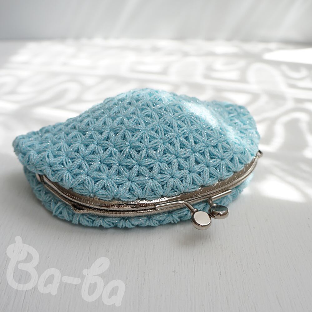 キラッと銀ラメ入り糸×シンブルなつまみのシルバー口金がキレイです。