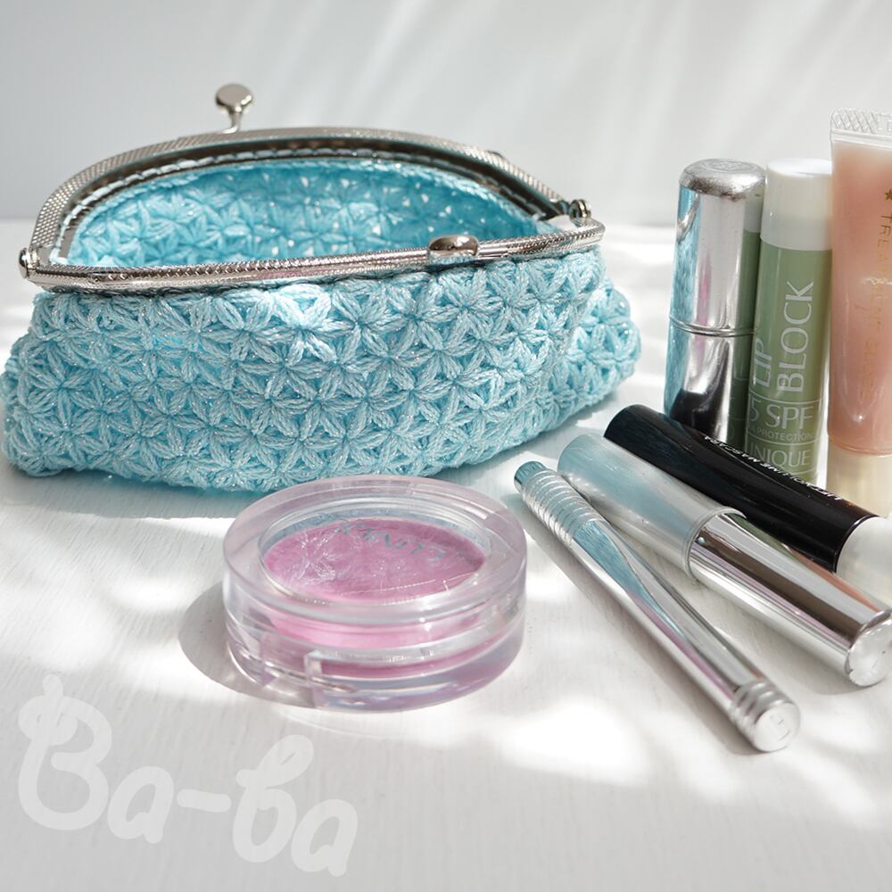 ばあば作♩さらに大きめリフ編みのがま口ポーチ(babillage・C1687)