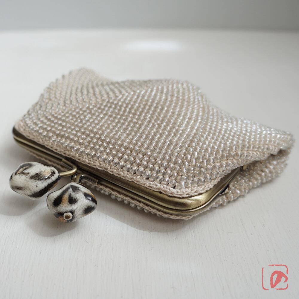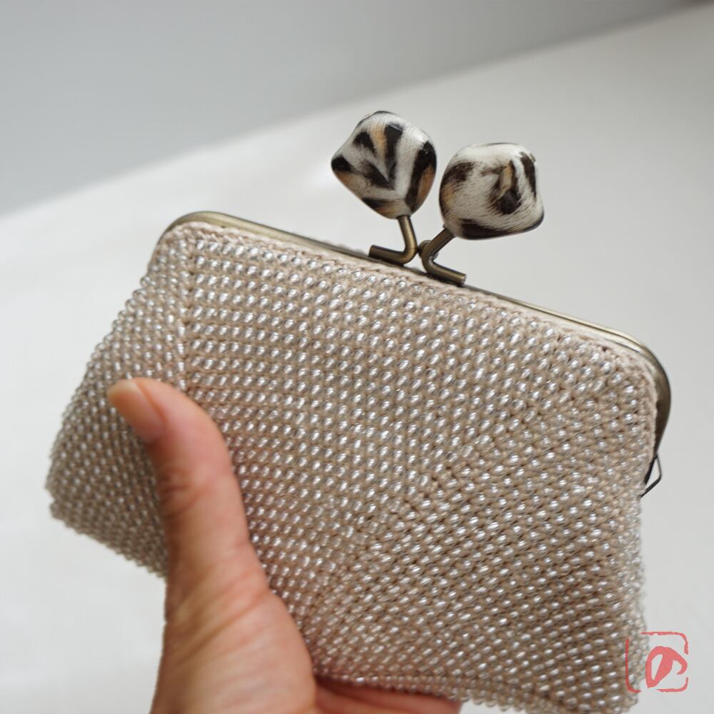 ばあば作☆☆さらに大きめ・ガラスビーズのスクエアがま口(Mlima・1947)
