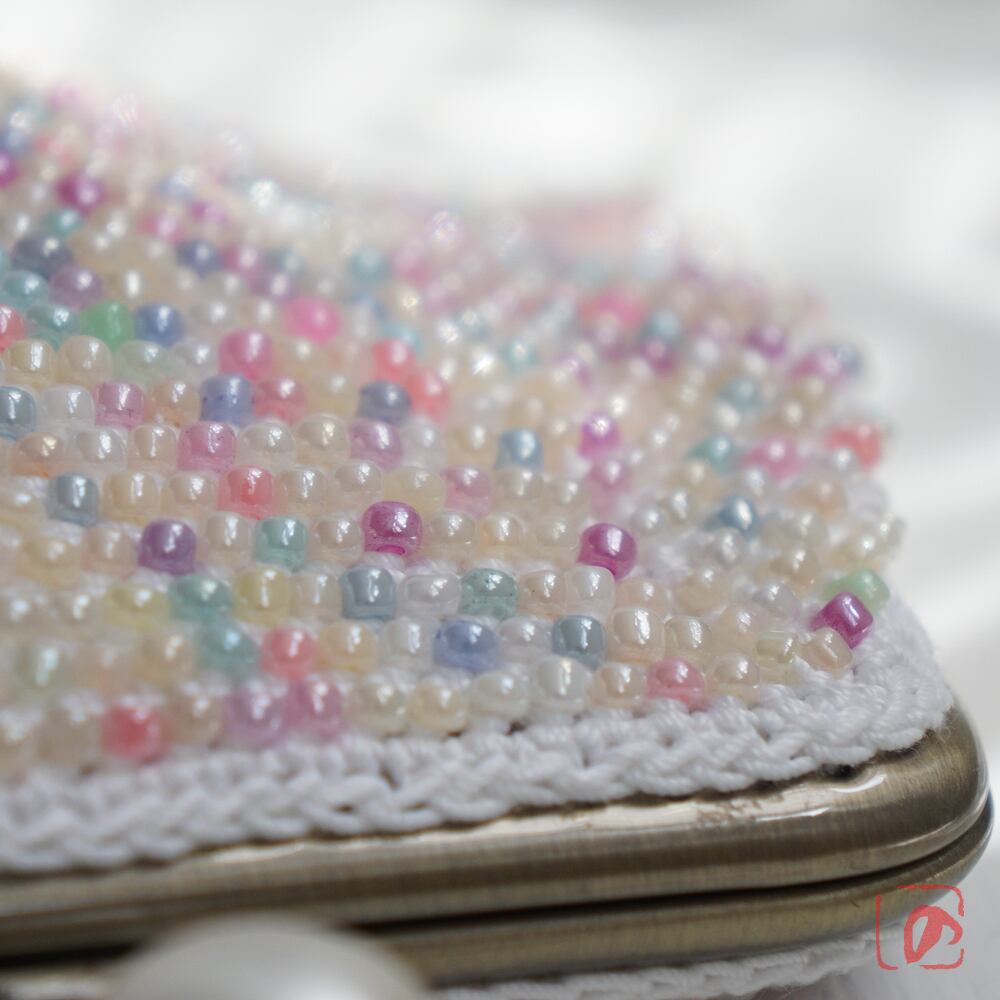 3mmのビーズをひとつぶづつ、全面に編み込みました。