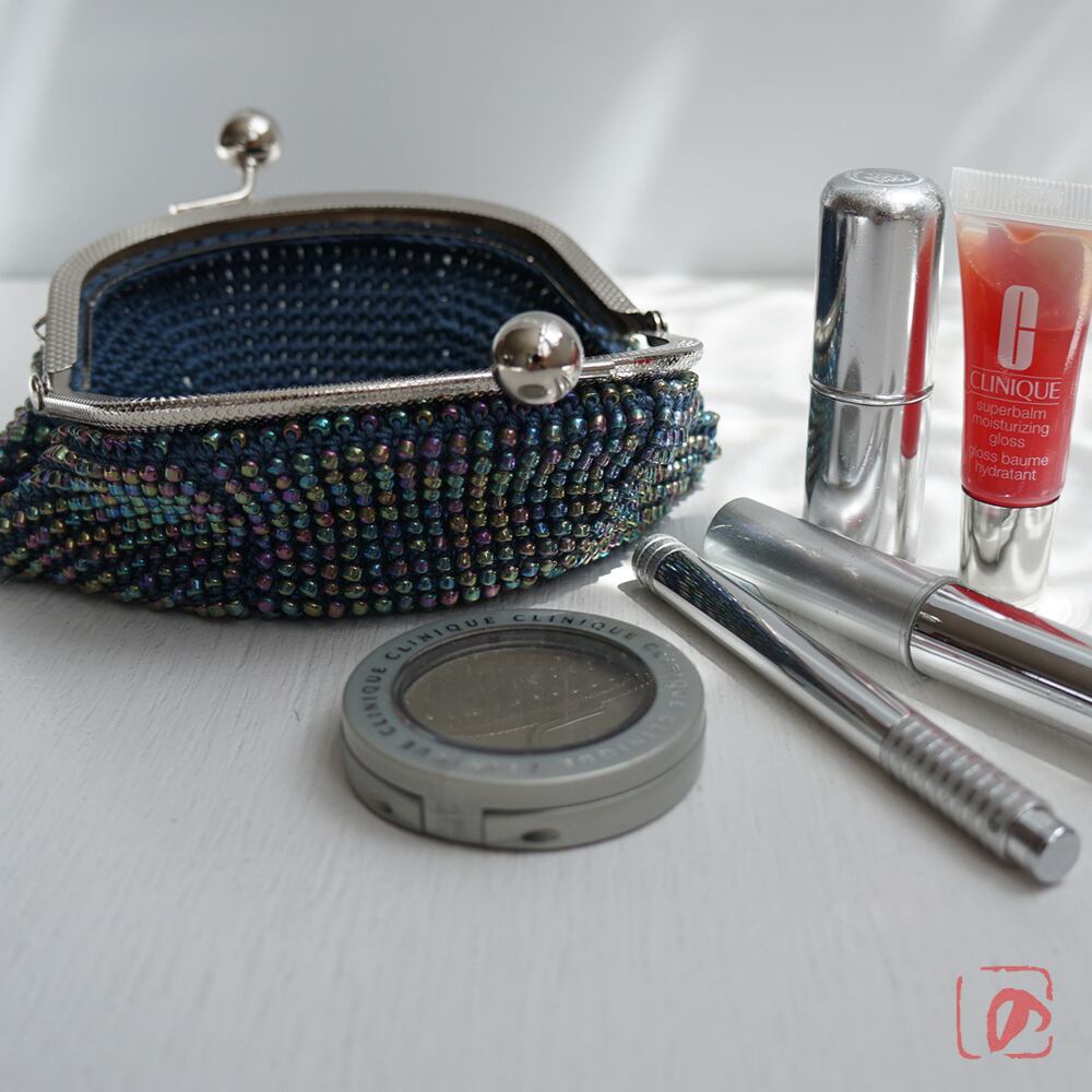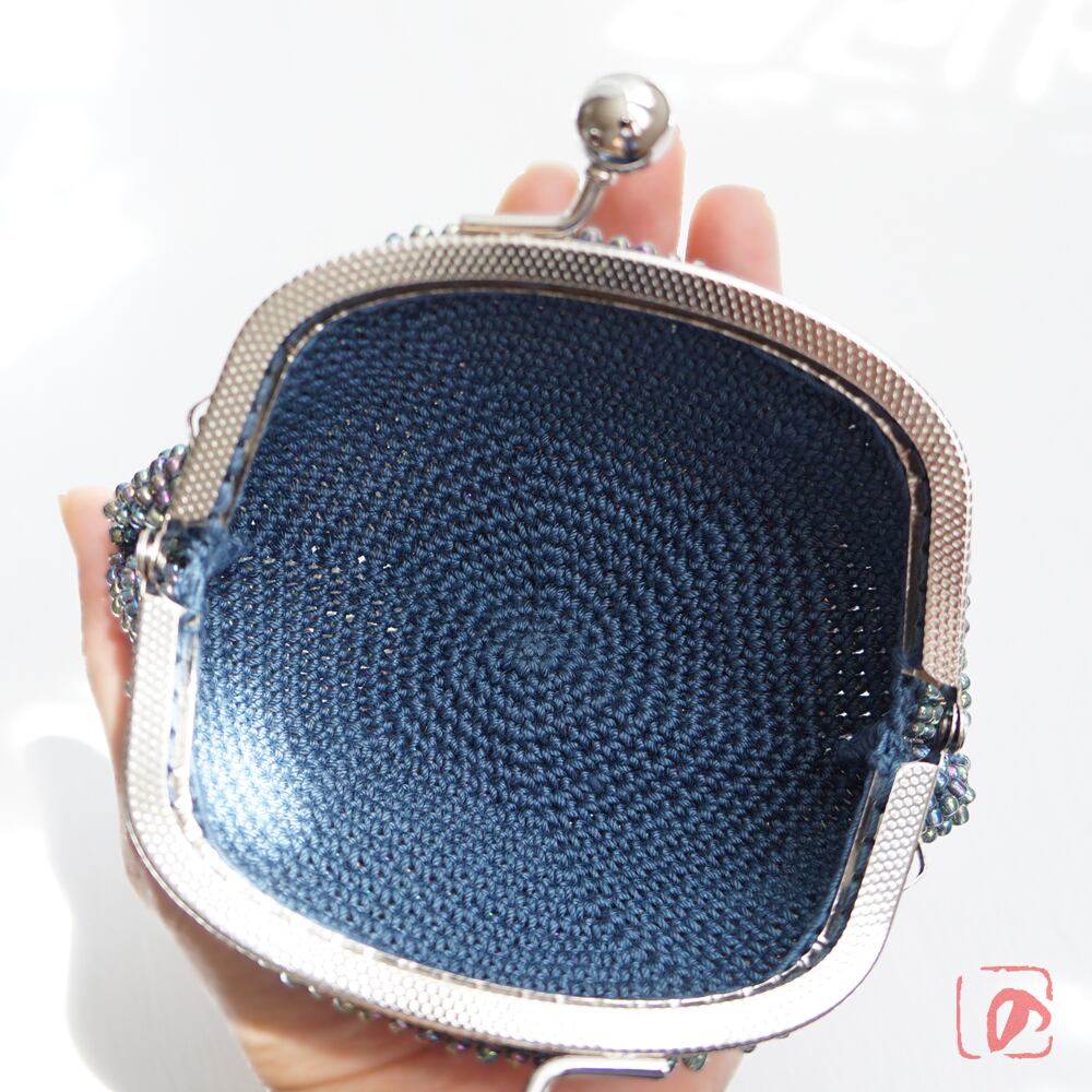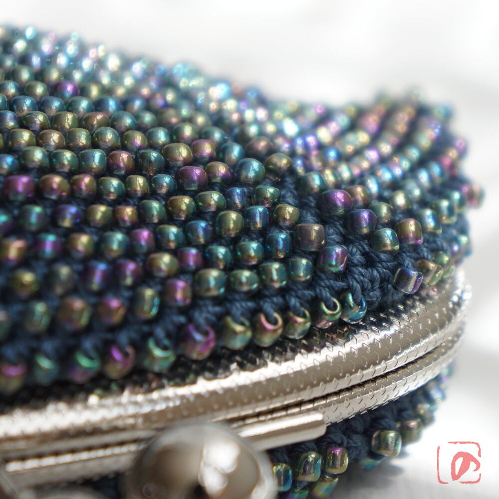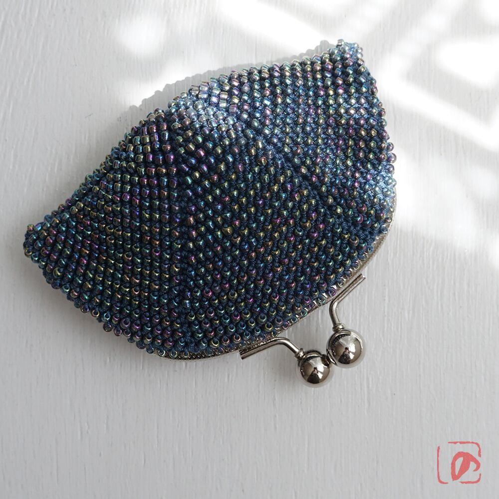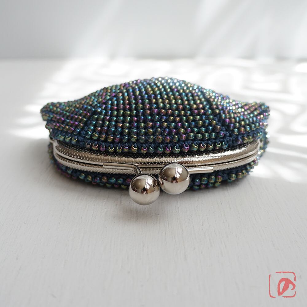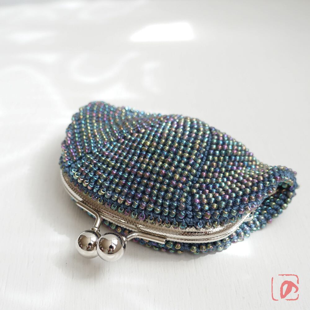 3mmのガラスビーズをひとつぶづつ全面に編み込んだ、上質ながま口です。