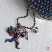 ブルーグリーンの糸×レインボーのビーズ、多色に輝きキレイです。