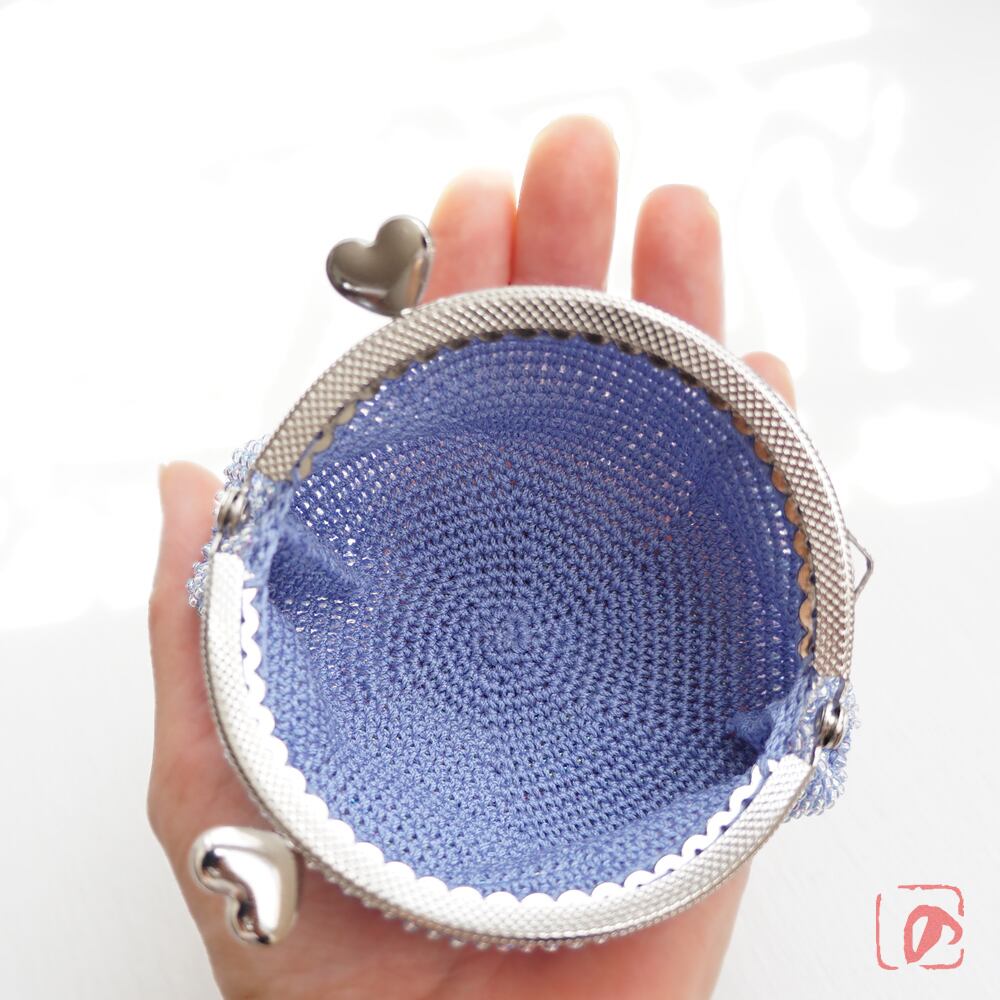 口金 : シルバー、ななめハートのつまみ、8.5cm、丸型、片カン