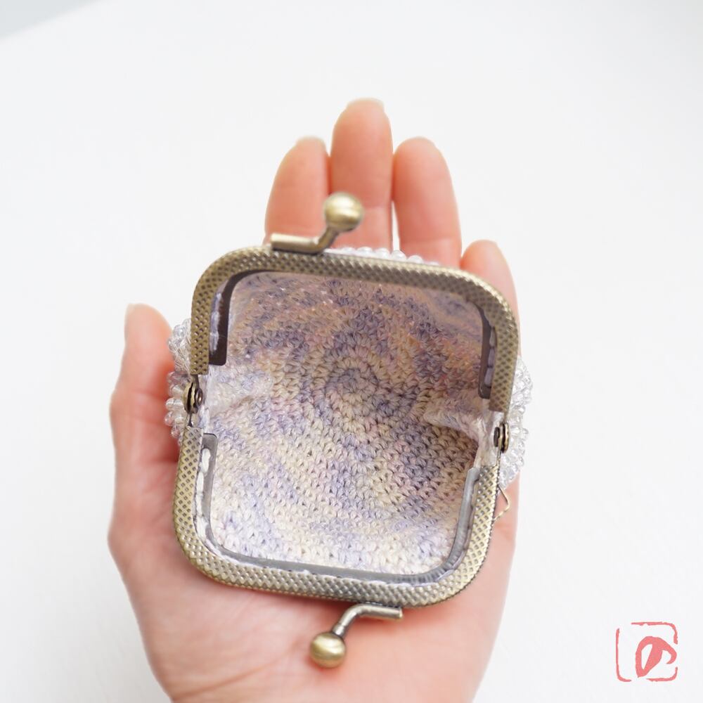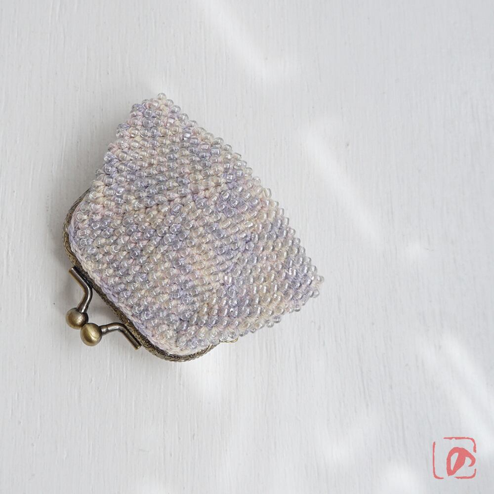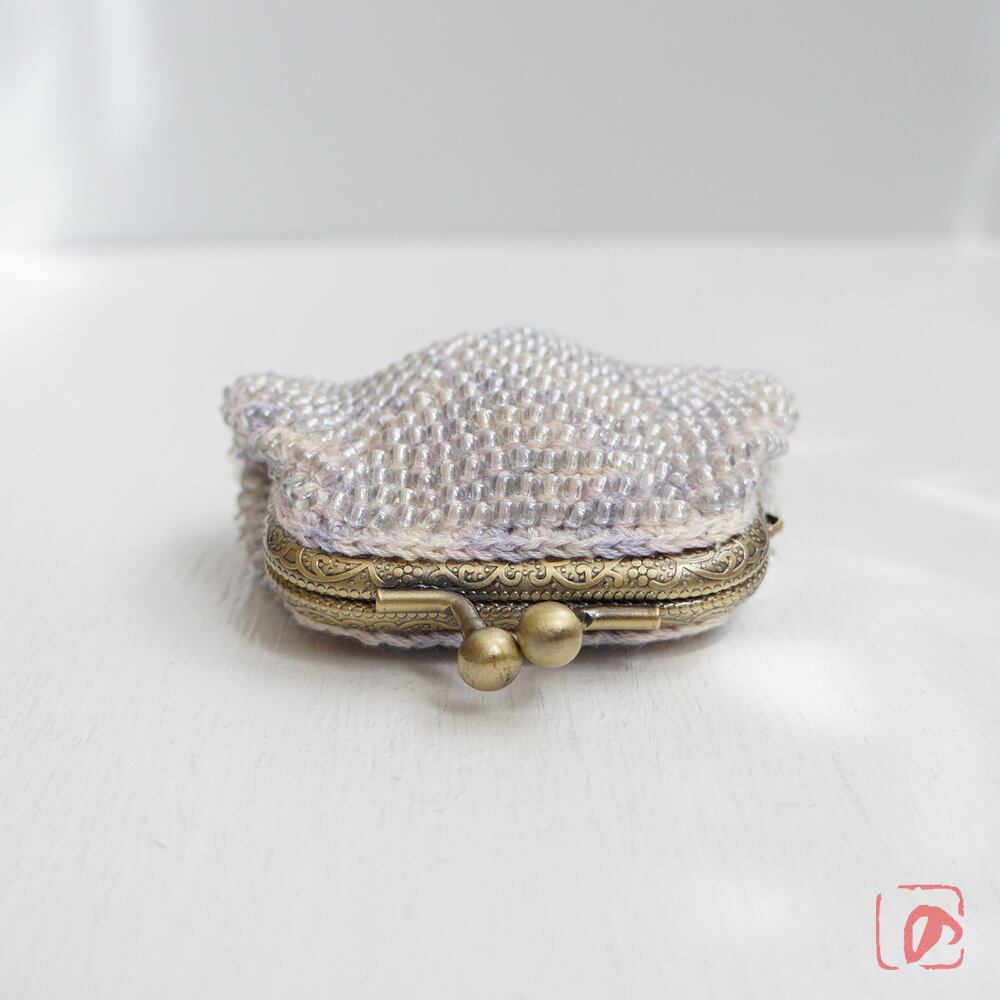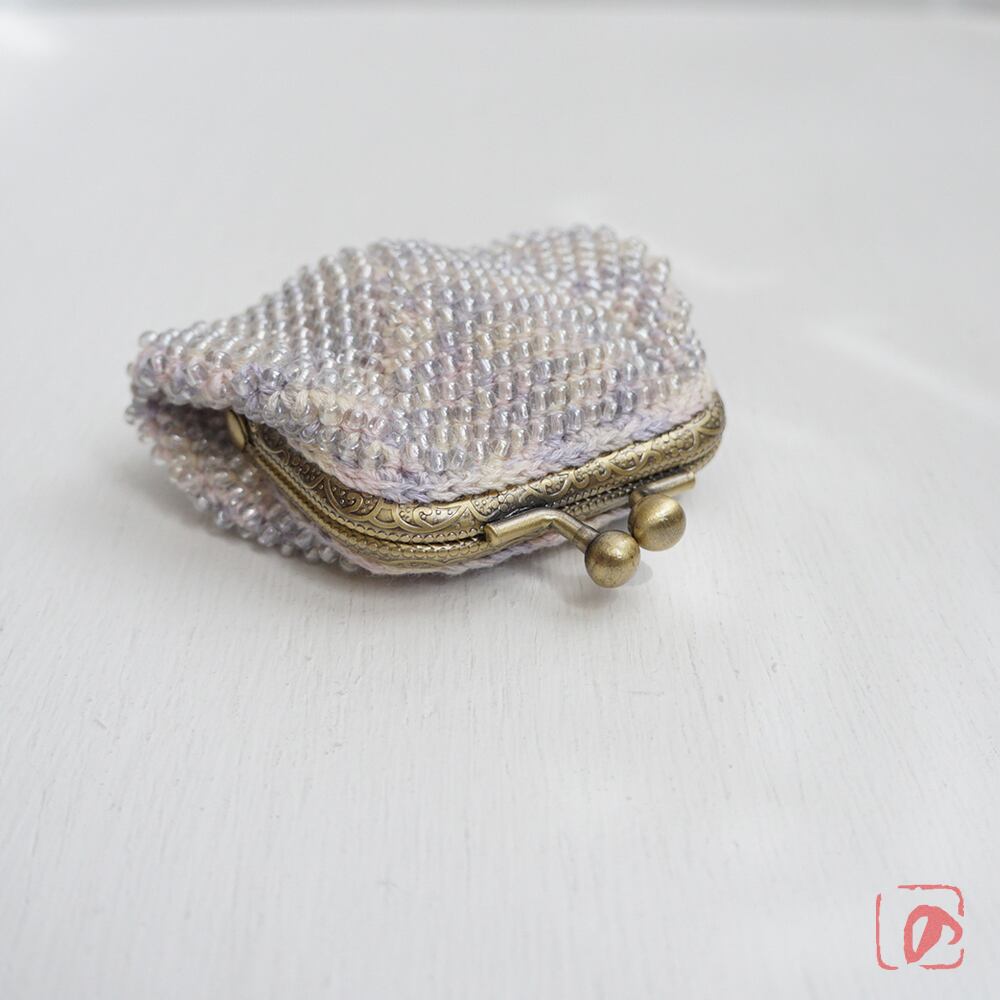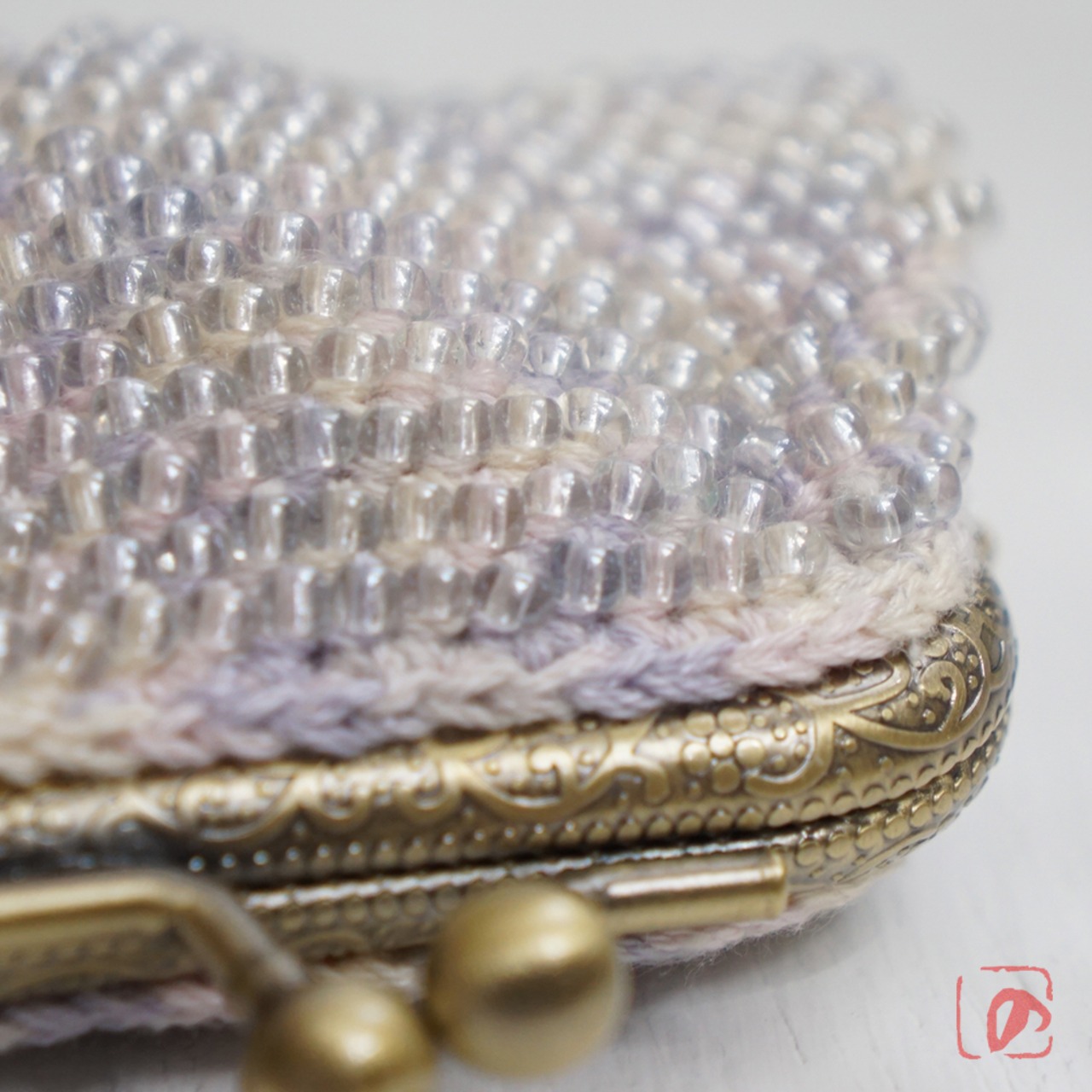 3mmのガラスビーズをひとつぶづつ編み込んだがま口です。