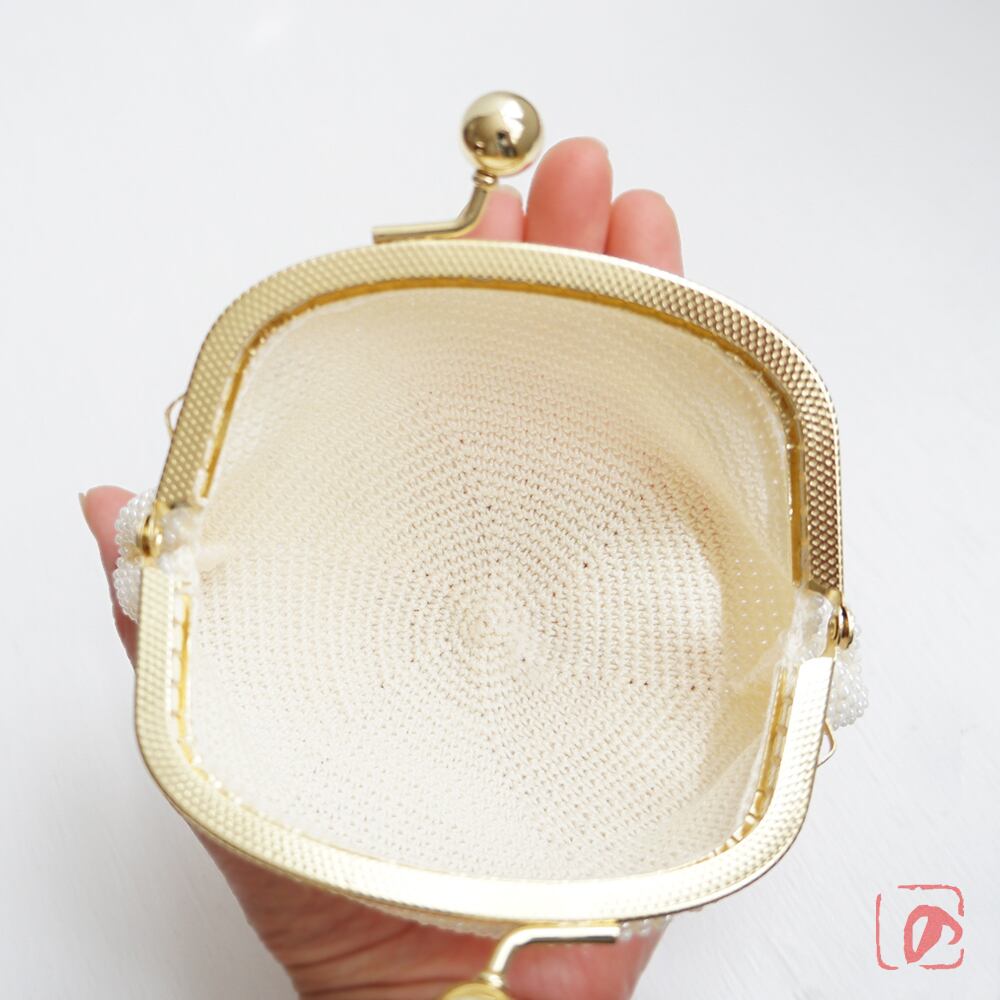 2mmの日本製シードビーズをひとつぶづつ全面に編み込んだ、上質ながま口です。