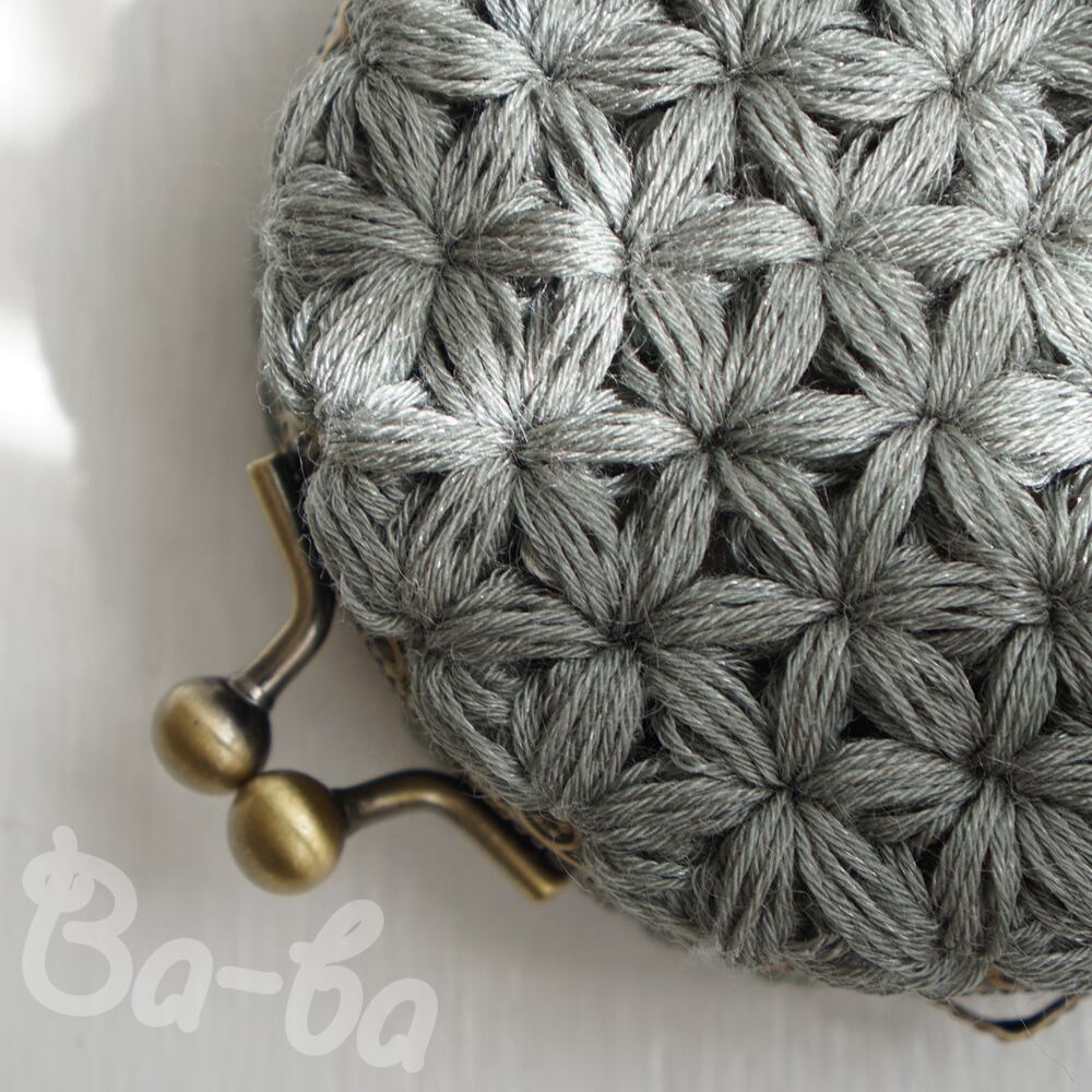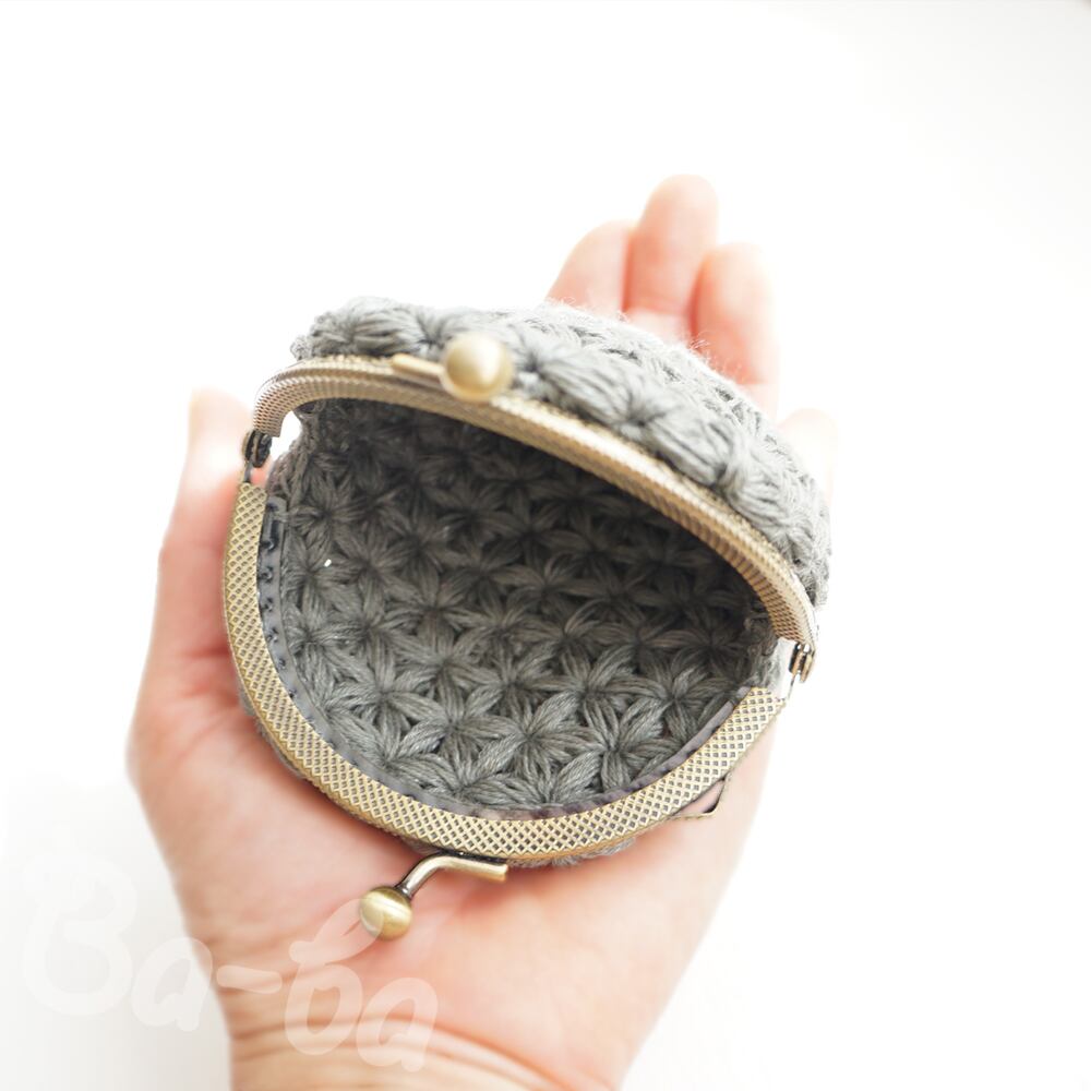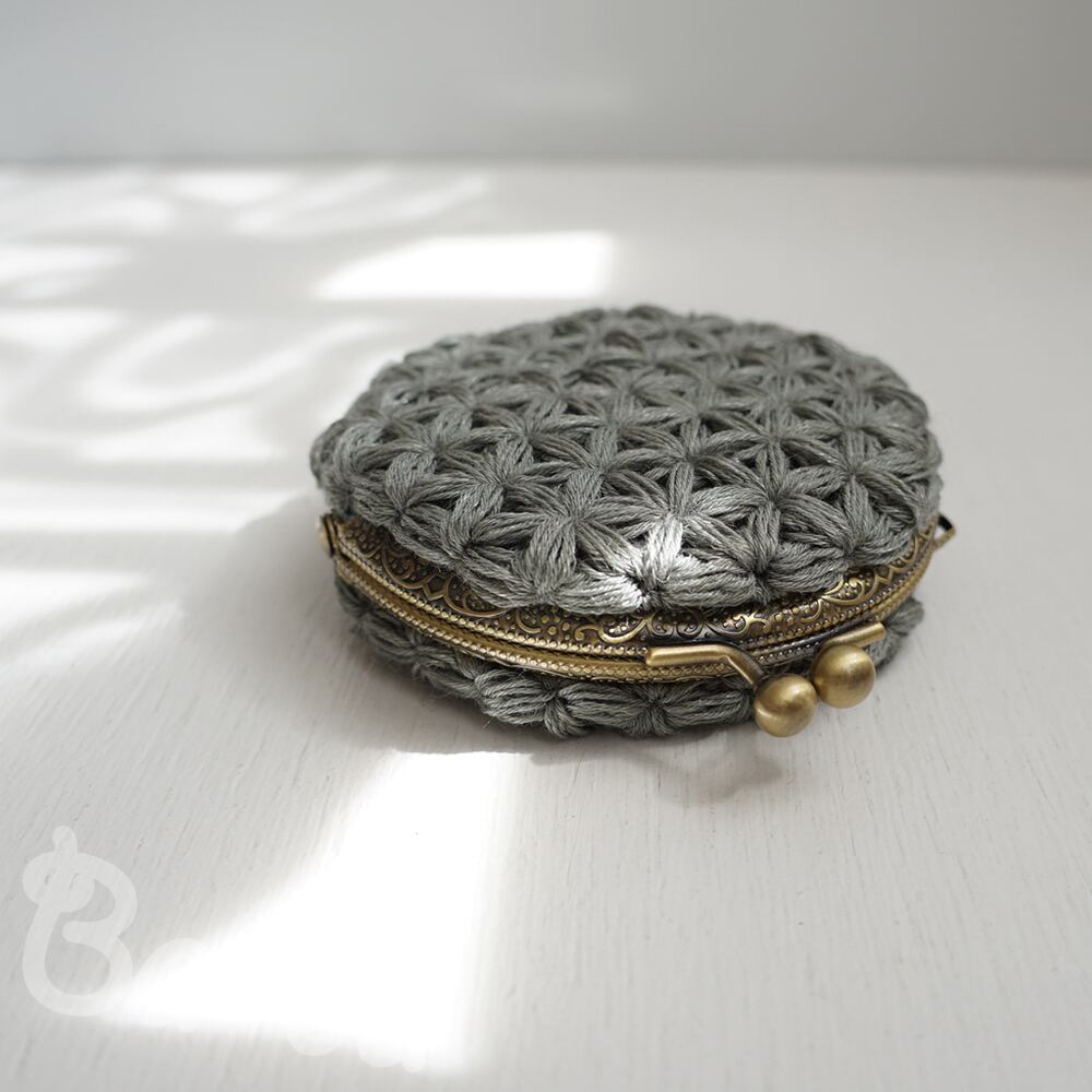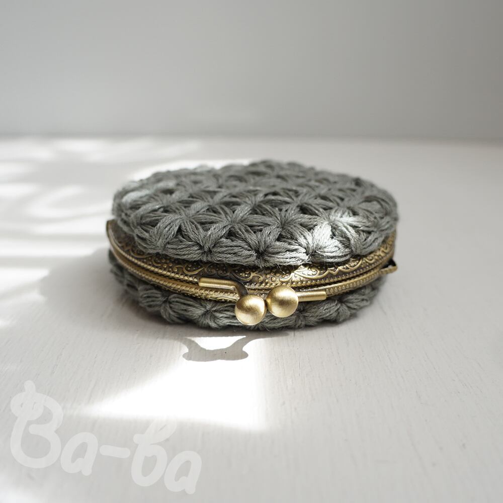 グレーの麻混紡糸をふんわりと編み上げ、シンプルな口金と組み合わせました。