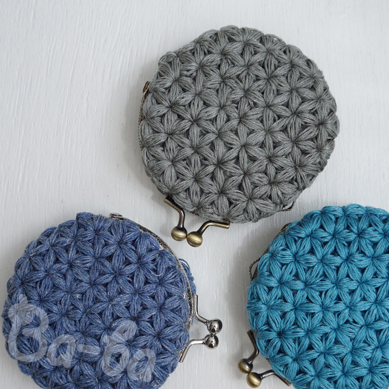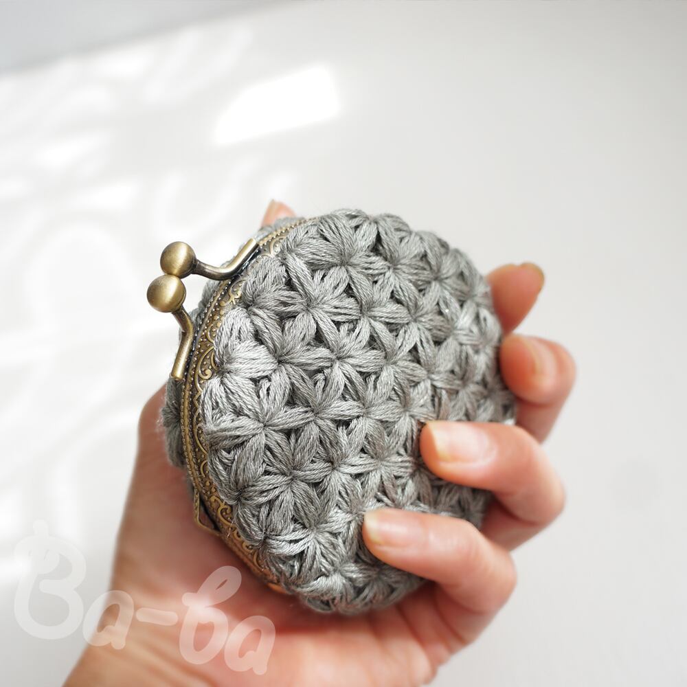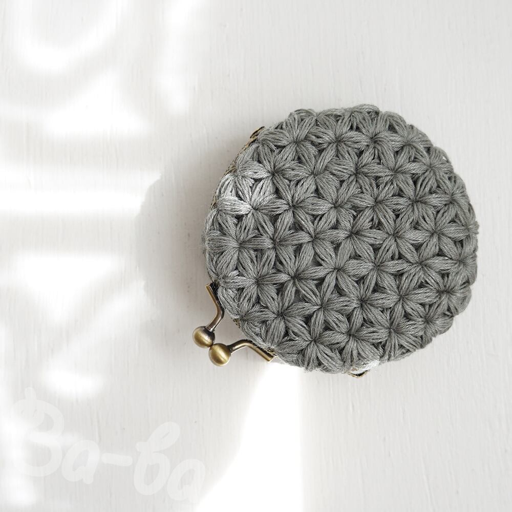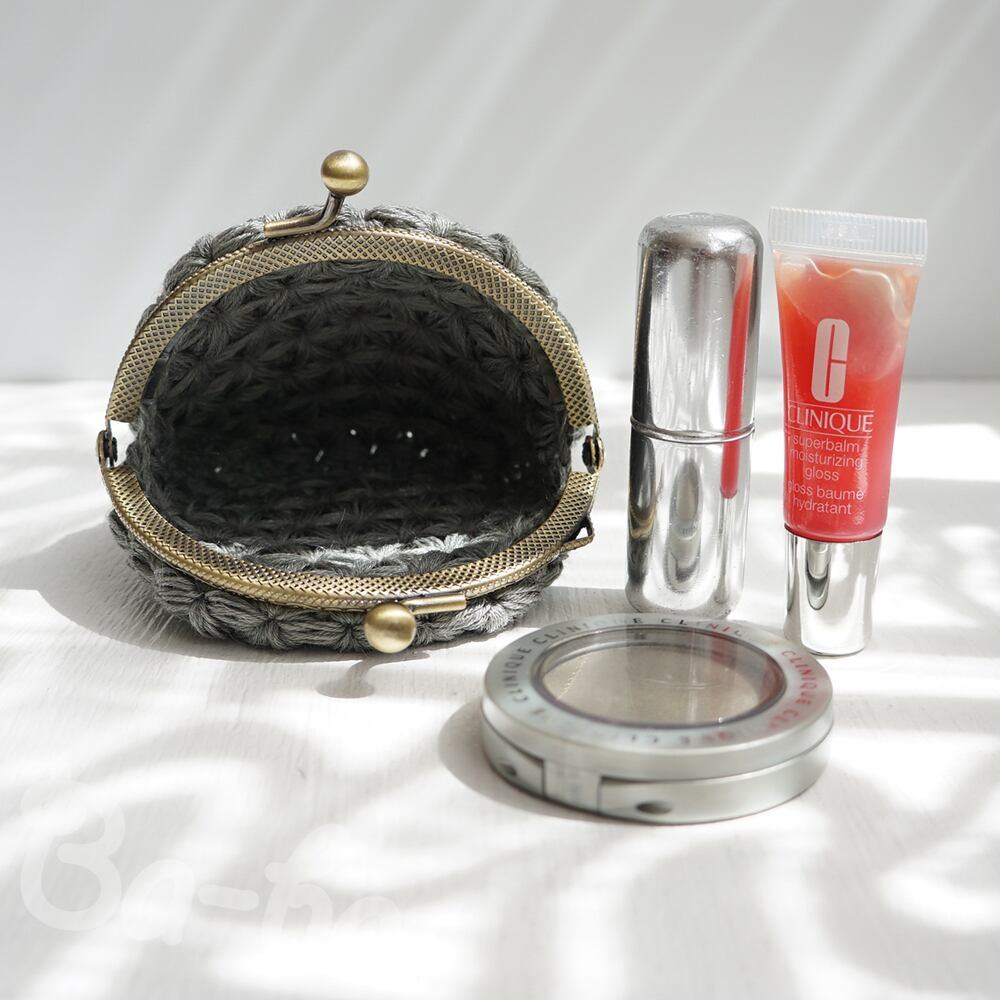 グレーの麻混紡糸をふんわりと編み上げ、シンプルな口金と組み合わせました。