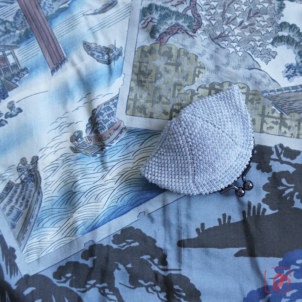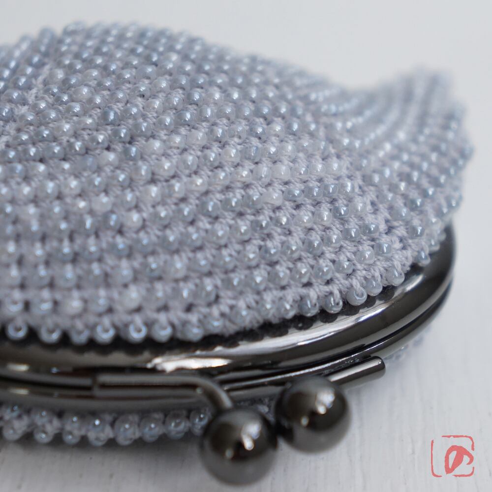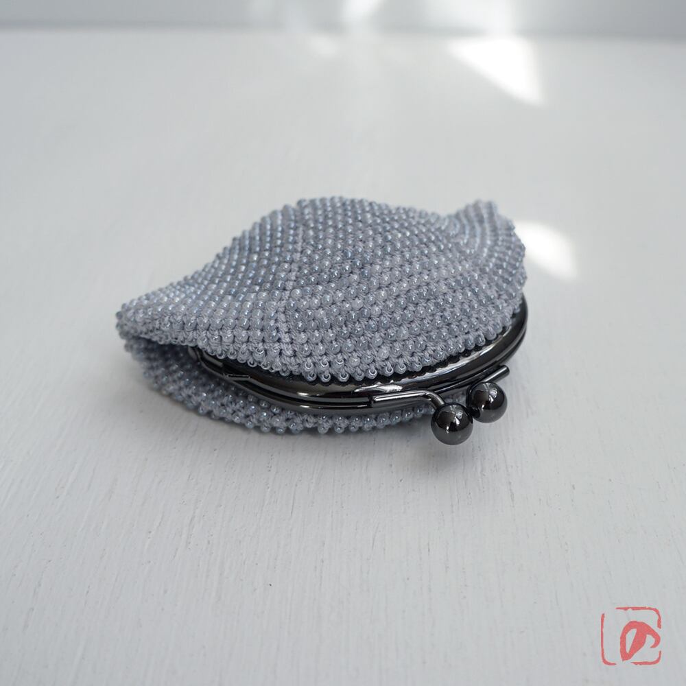 ばあば作 ❖ シードビーズの格別ながま口(灰蒼・1849)
