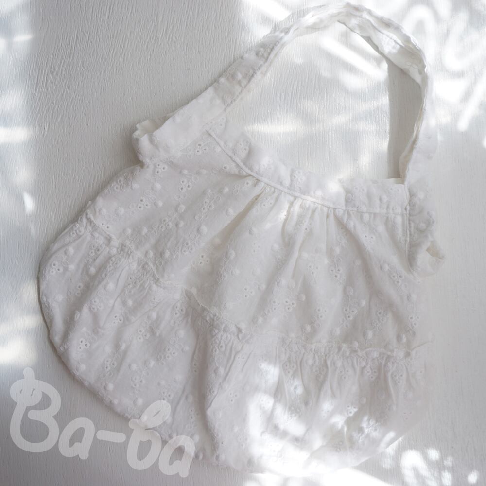 コットンのレース刺繍の生地でグラニーバッグに仕立てました。