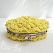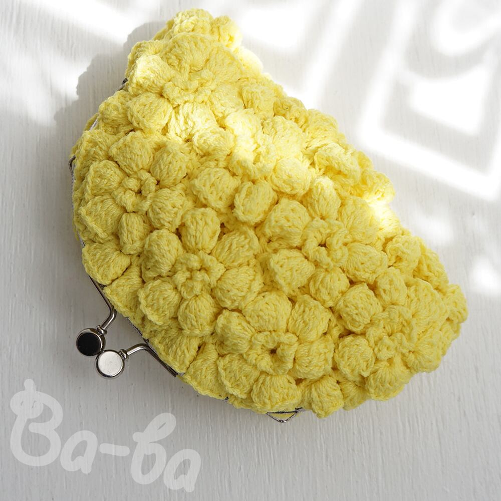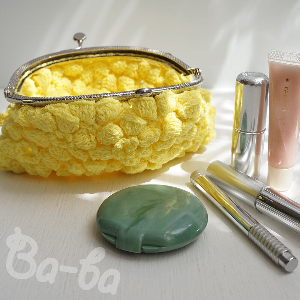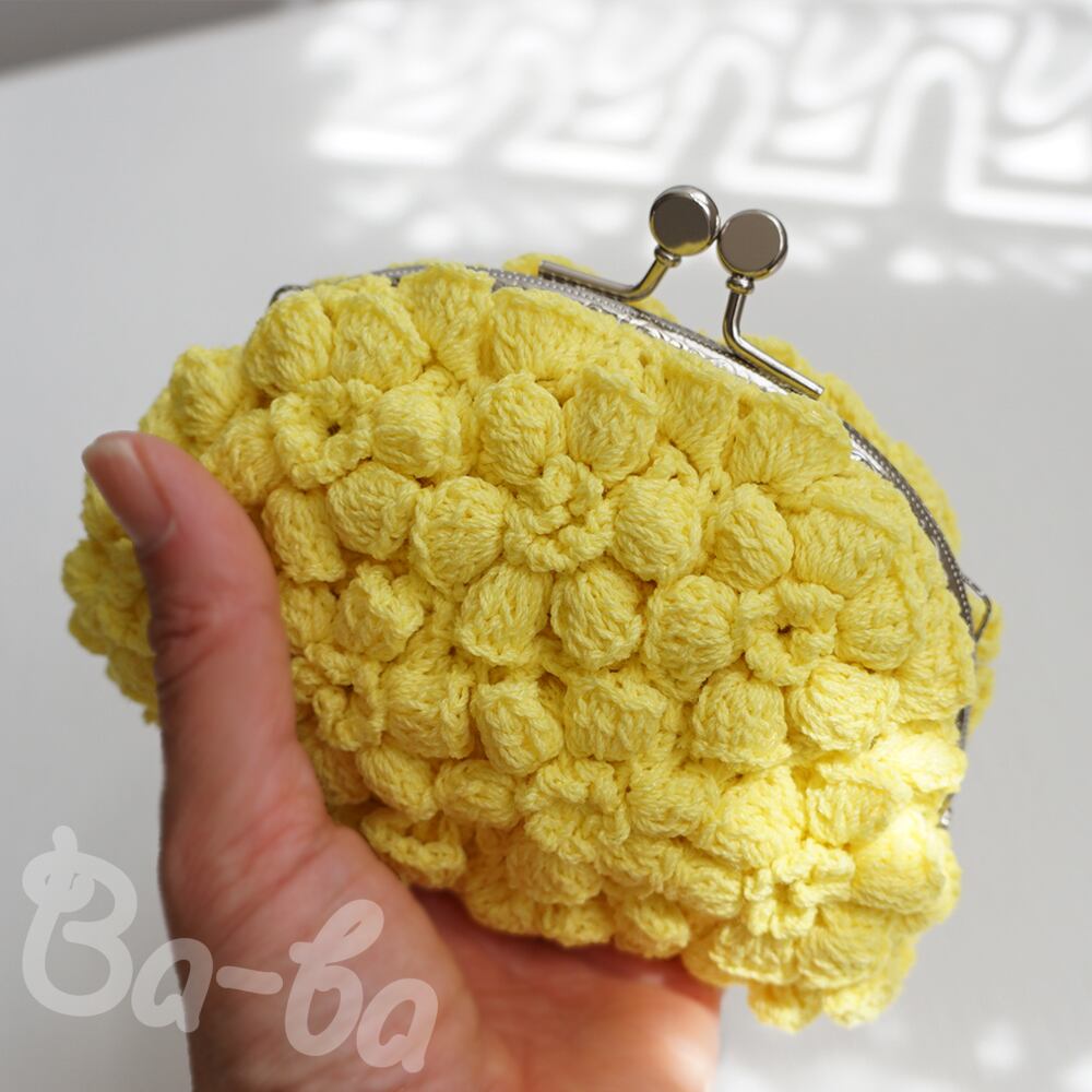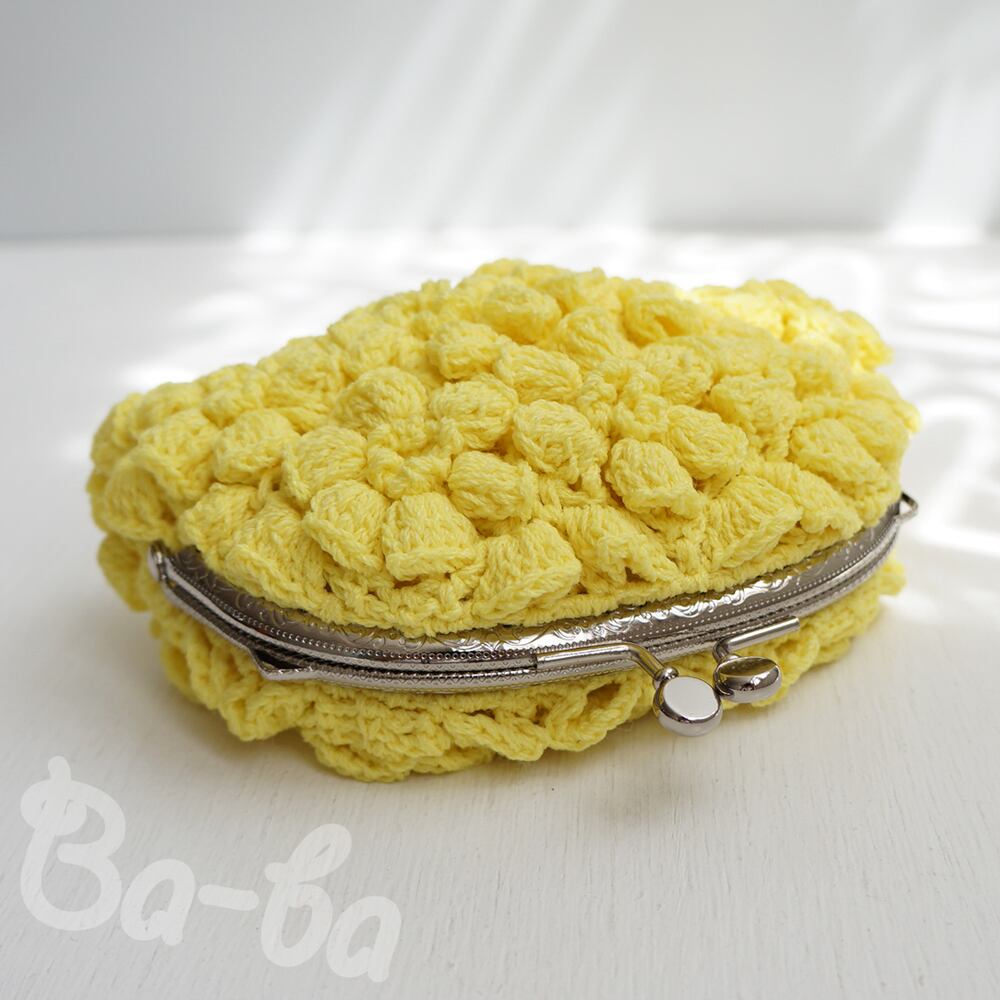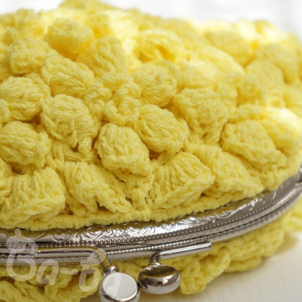 ばあば作、ポピーパフ編みのがま口(keltainen・C1683)