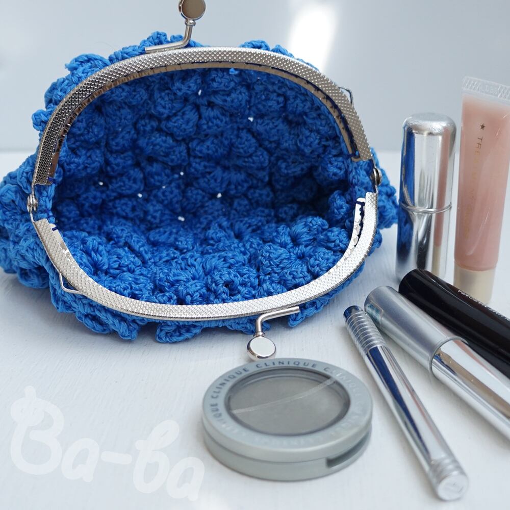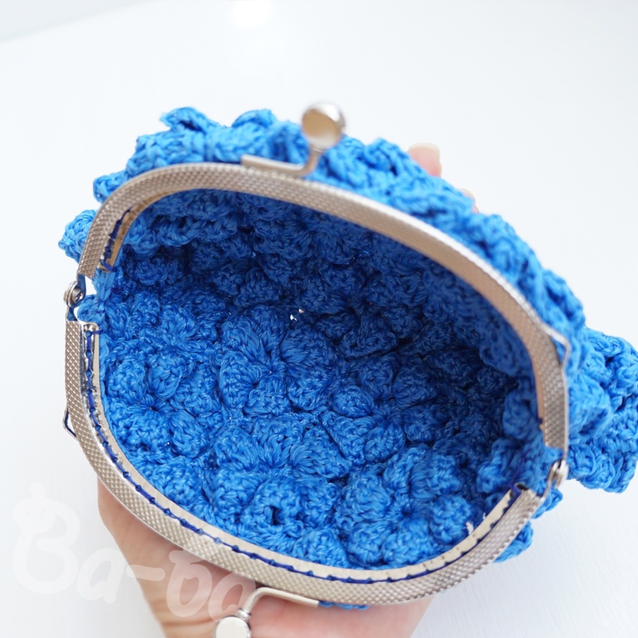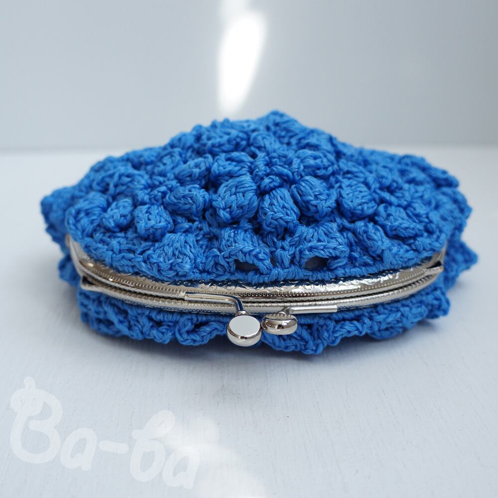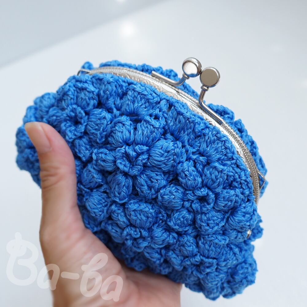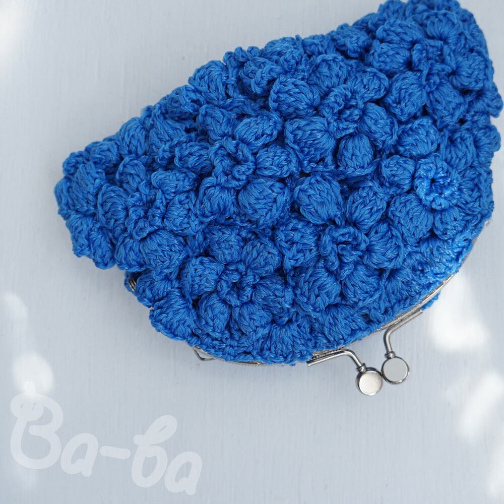 ばあば作、ポピーパフ編みのがま口(Sinitaivas・C1699)
