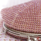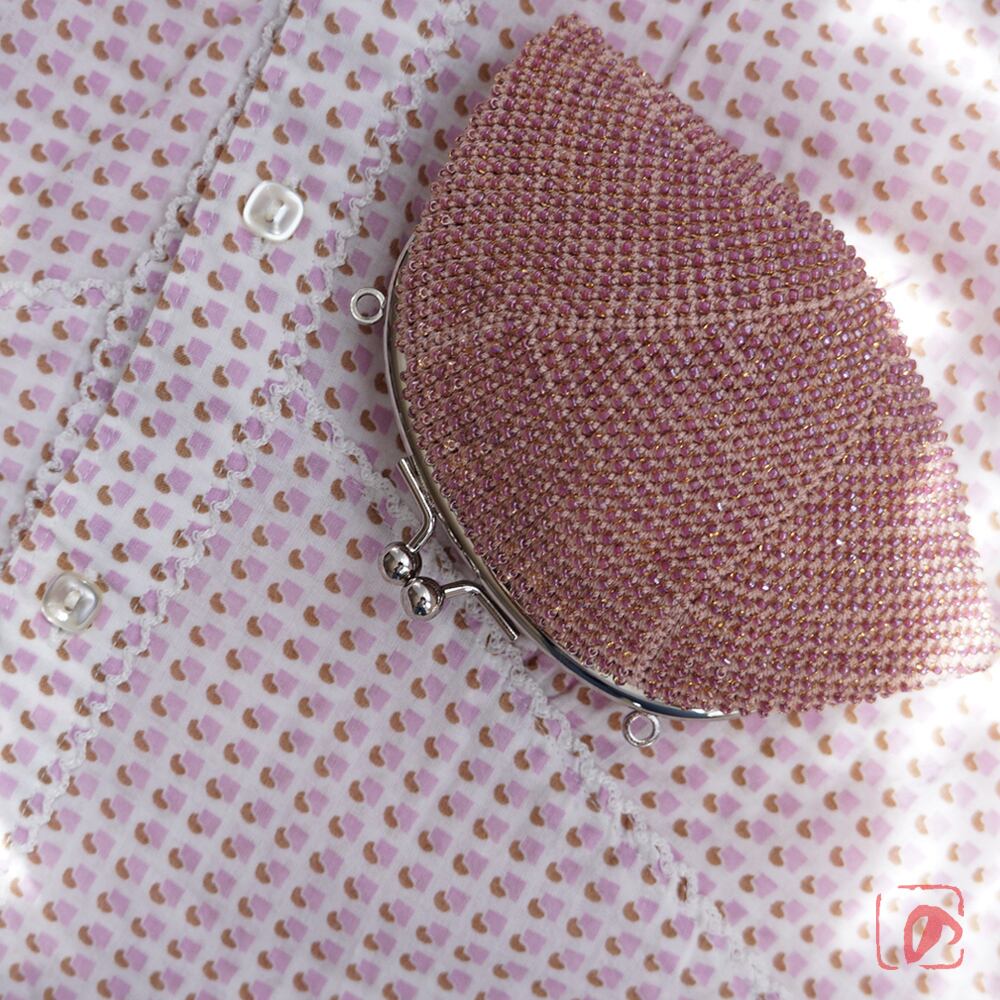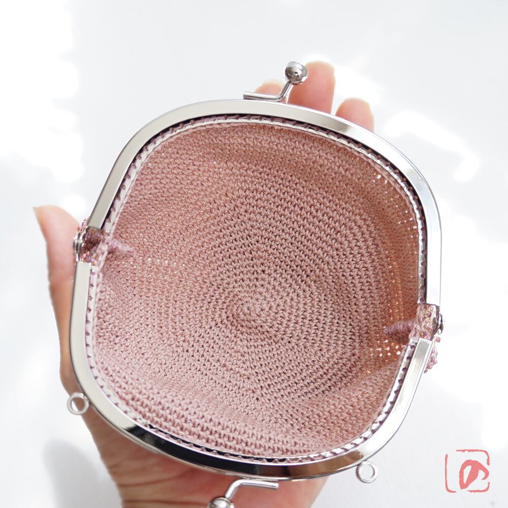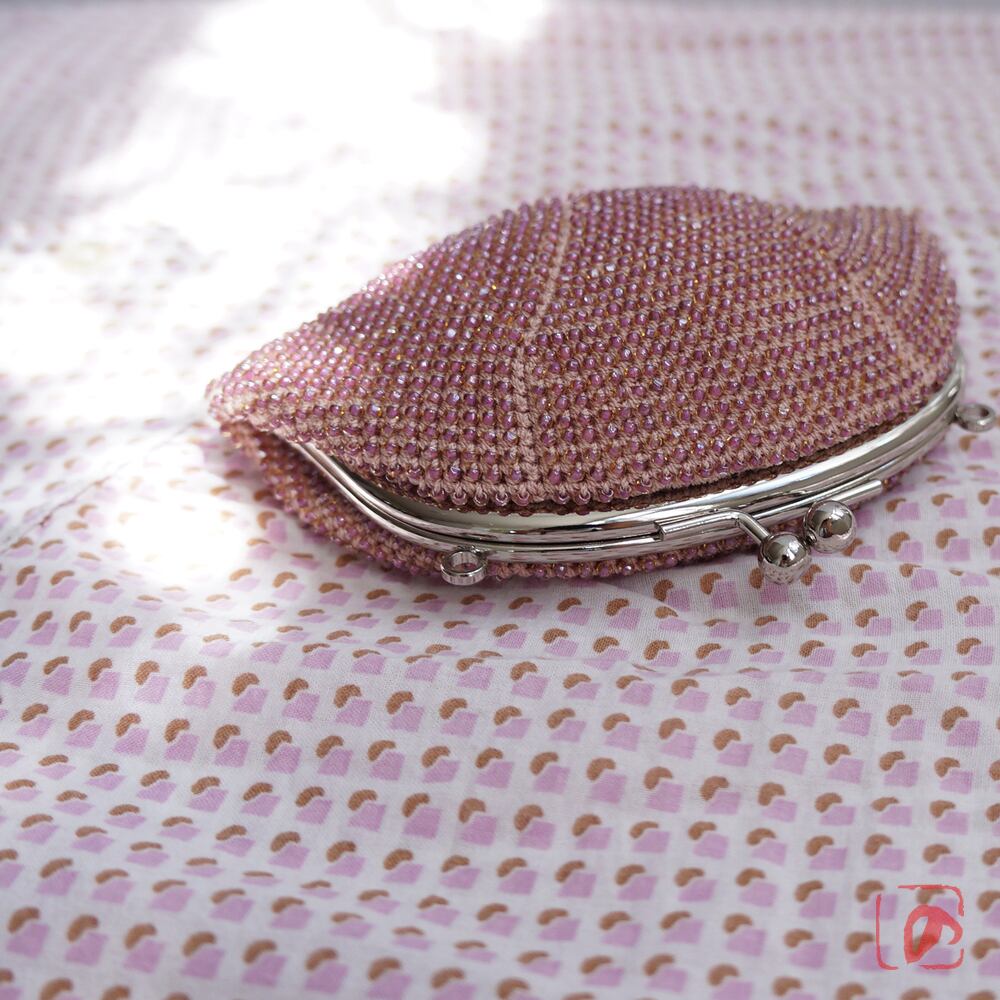ピンクベージュの糸に同色ピンクのビーズ、角度によって金色に輝きます。