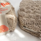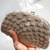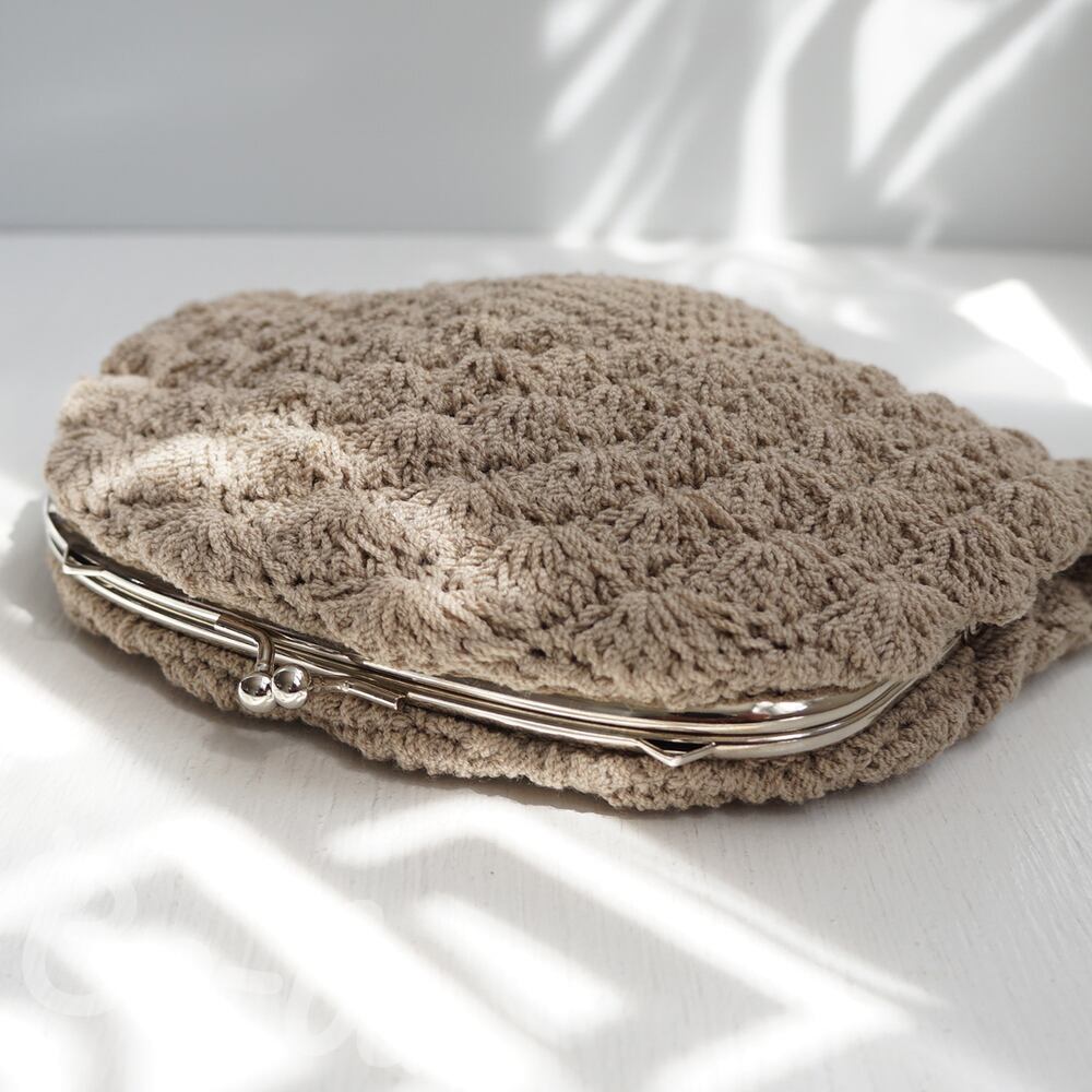 ばあば作♪松編みのがまぐちポーチ(désert・C1665)