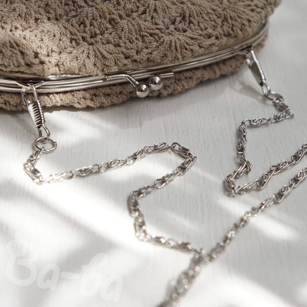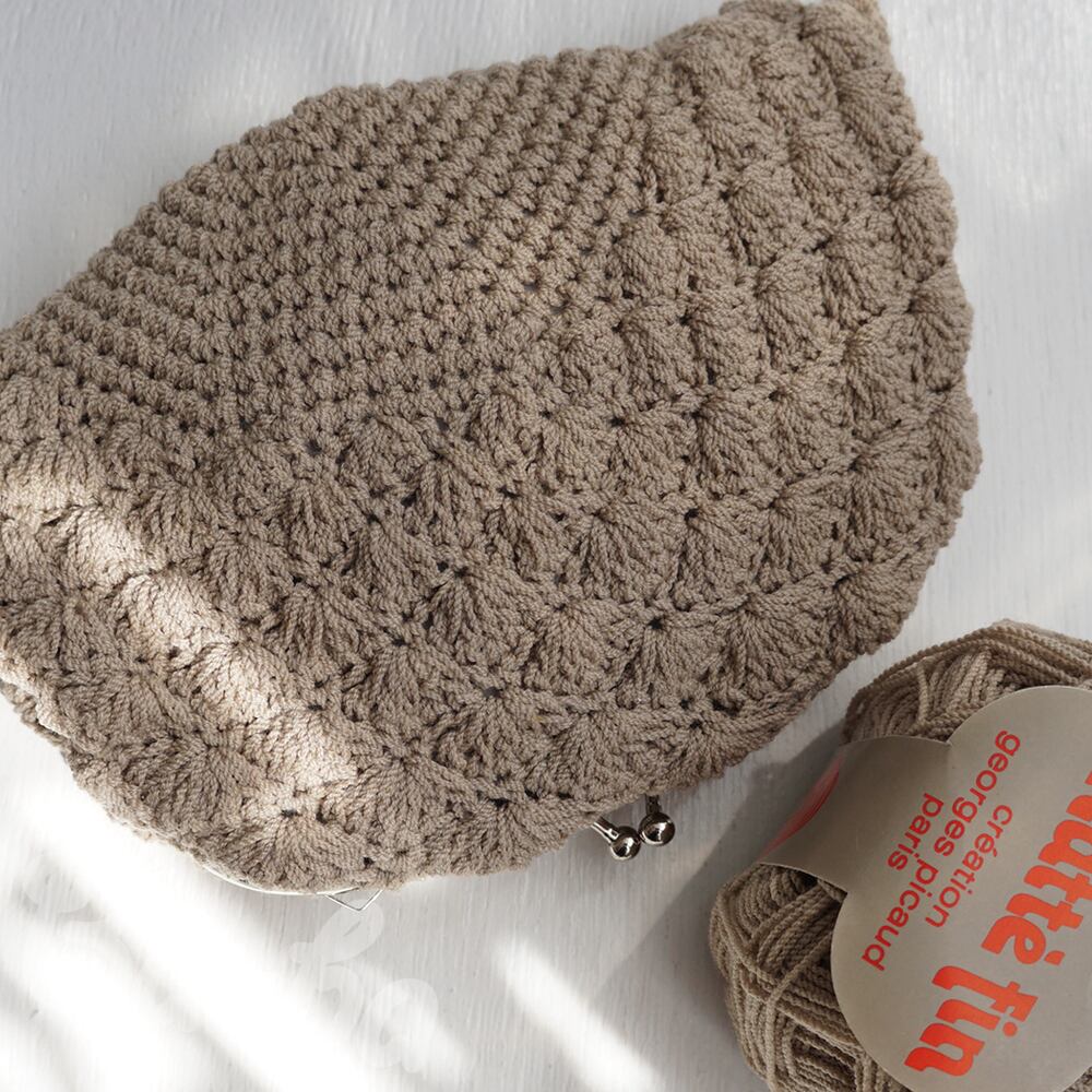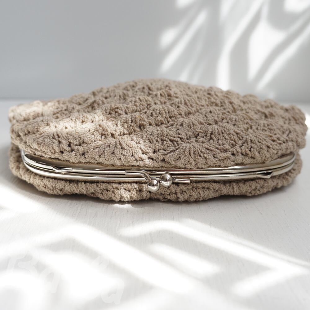 フランス製のサマーウールを松編みで編み上げ、シンプルな口金を合わせました。